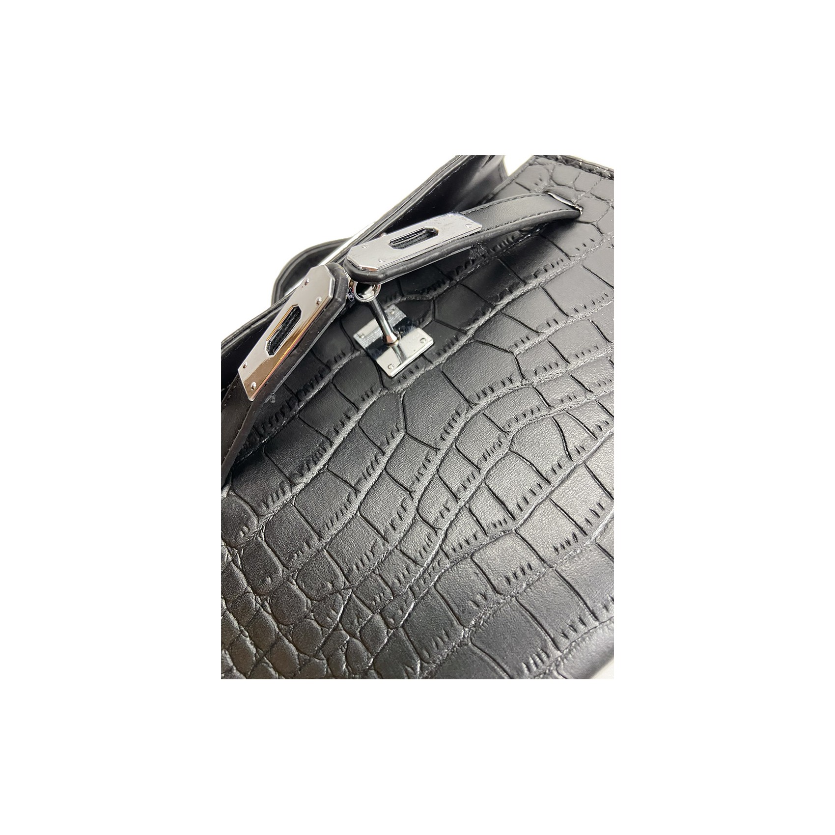 Сумка Cristal у чорному кольорі — це втілення елегантності та мінімалізму. Її центральний замок не лише забезпечує надійність, але й додає аксесуару стильного акценту. Внутрішнє відділення ідеально підходить для зберігання найнеобхідніших речей, а знімний регульований ремінець дозволить вам носити сумку так, як вам зручно — через плече або в руках, використовуючи витончену верхню ручку. Чорний колір додає універсальності, роблячи сумку Cristal ідеальним вибором як для повсякденного образу, так і для вечірнього виходу.