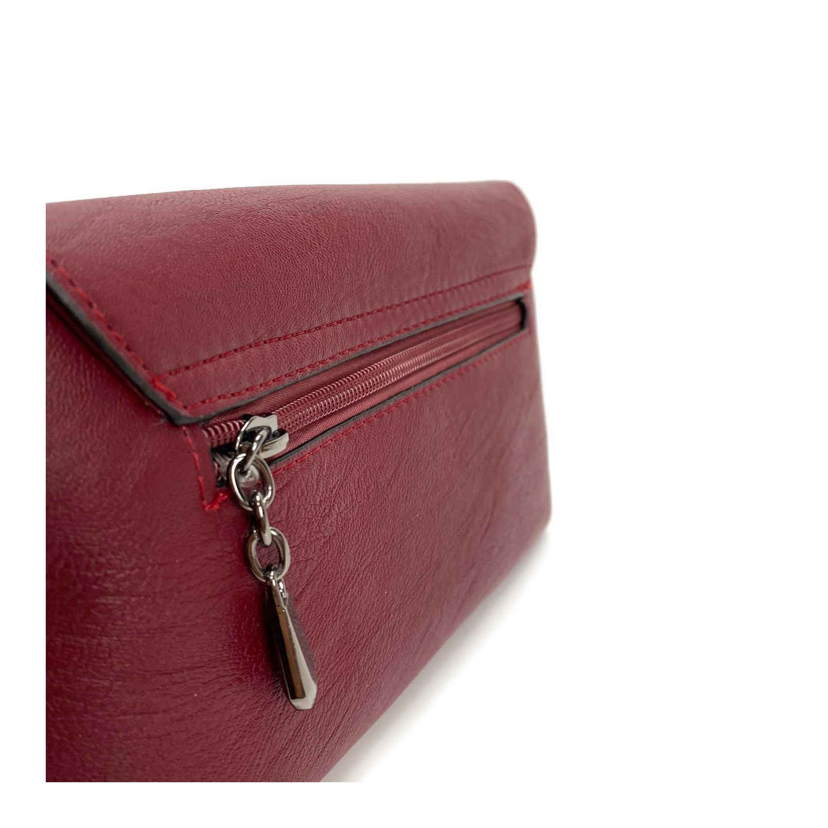Регульований та знімний плечовий ремінь дозволяє вибрати зручний спосіб носити клатч. Без ремінця він перетворюється на стильну та компактну маленьку сумочку, ідеальну для зберігання телефону.Підкресліть свою індивідуальність із клатчем Emma у бордовому кольорі.