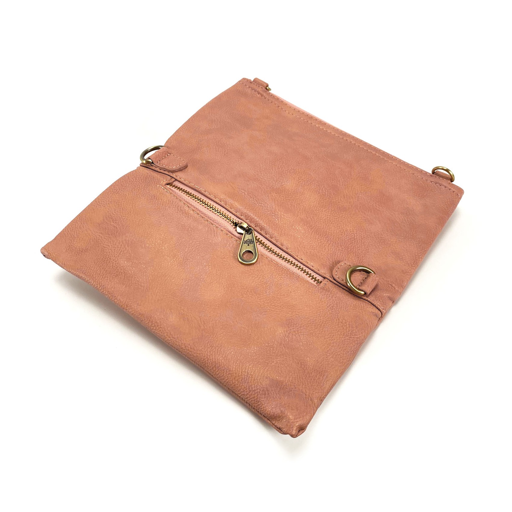 Цей клатч має відкидний верх на кнопках-магнітах, що легко розвертається, розкриваючи просторий внутрішній простір. У центрі клатчу розташована зручна кишеня на блискавці для безпечного зберігання ваших цінних речей. Основний відділ також захищений блискавкою, забезпечуючи додаткову безпеку. Усередині ви знайдете ще одну кишеню на блискавці та дві кишені для дрібниць, де можна організувати свої дрібні предмети.