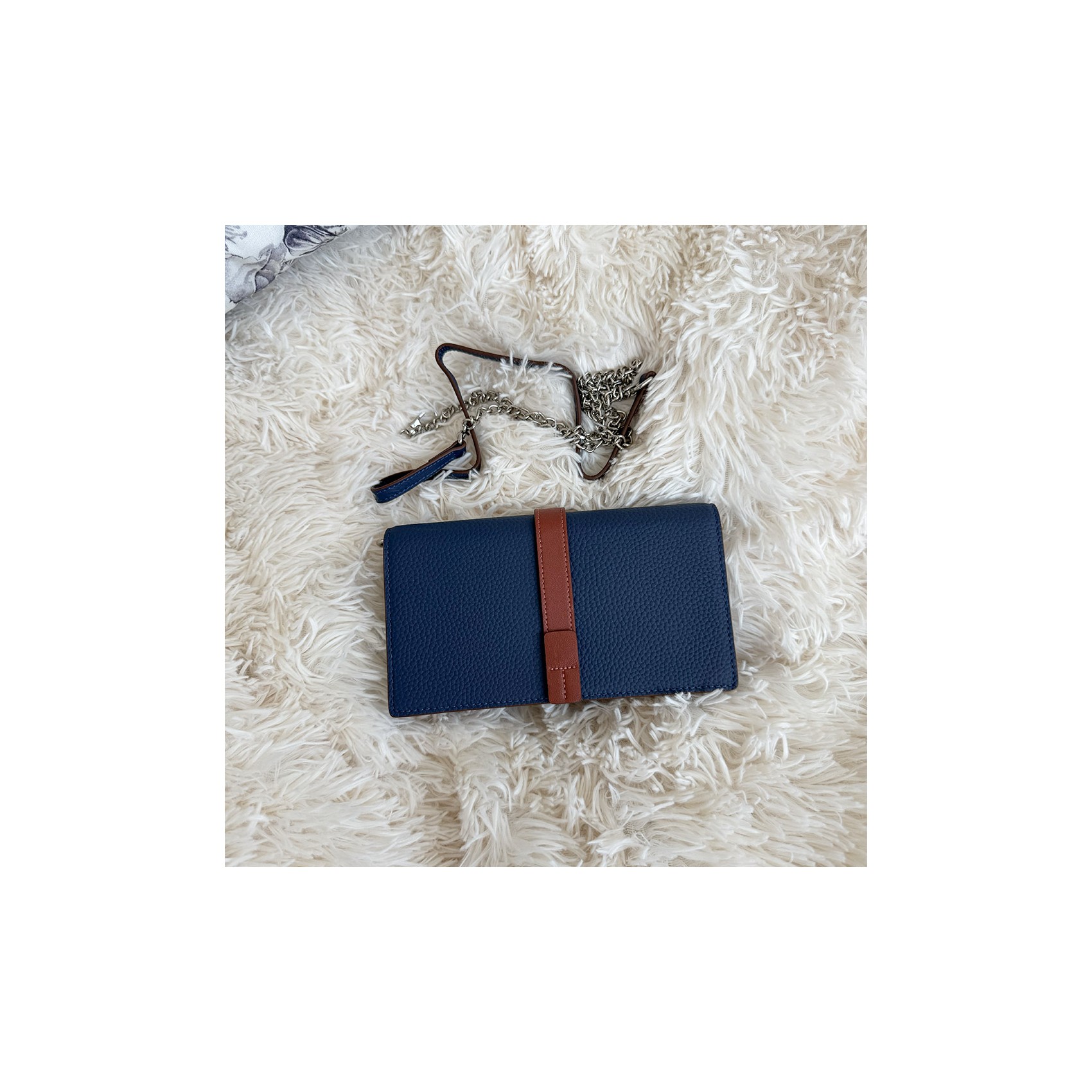 Сумка закривається на надійну кнопку, забезпечуючи швидкий доступ до вмісту. Не регульований знімний плечовий ремінь довжиною 125 см виконаний у вигляді стильного ланцюжка, що додає сумці витонченості та шику.