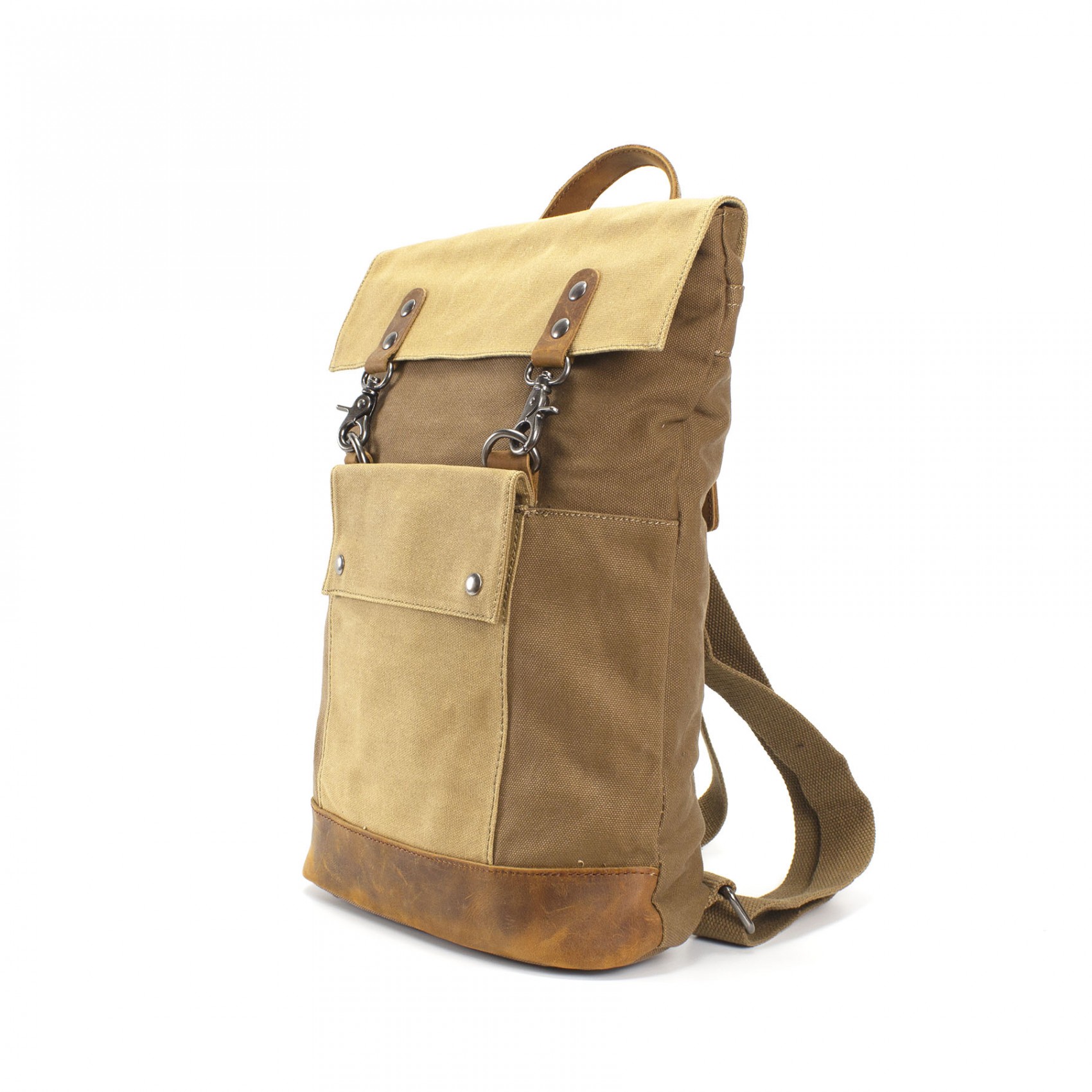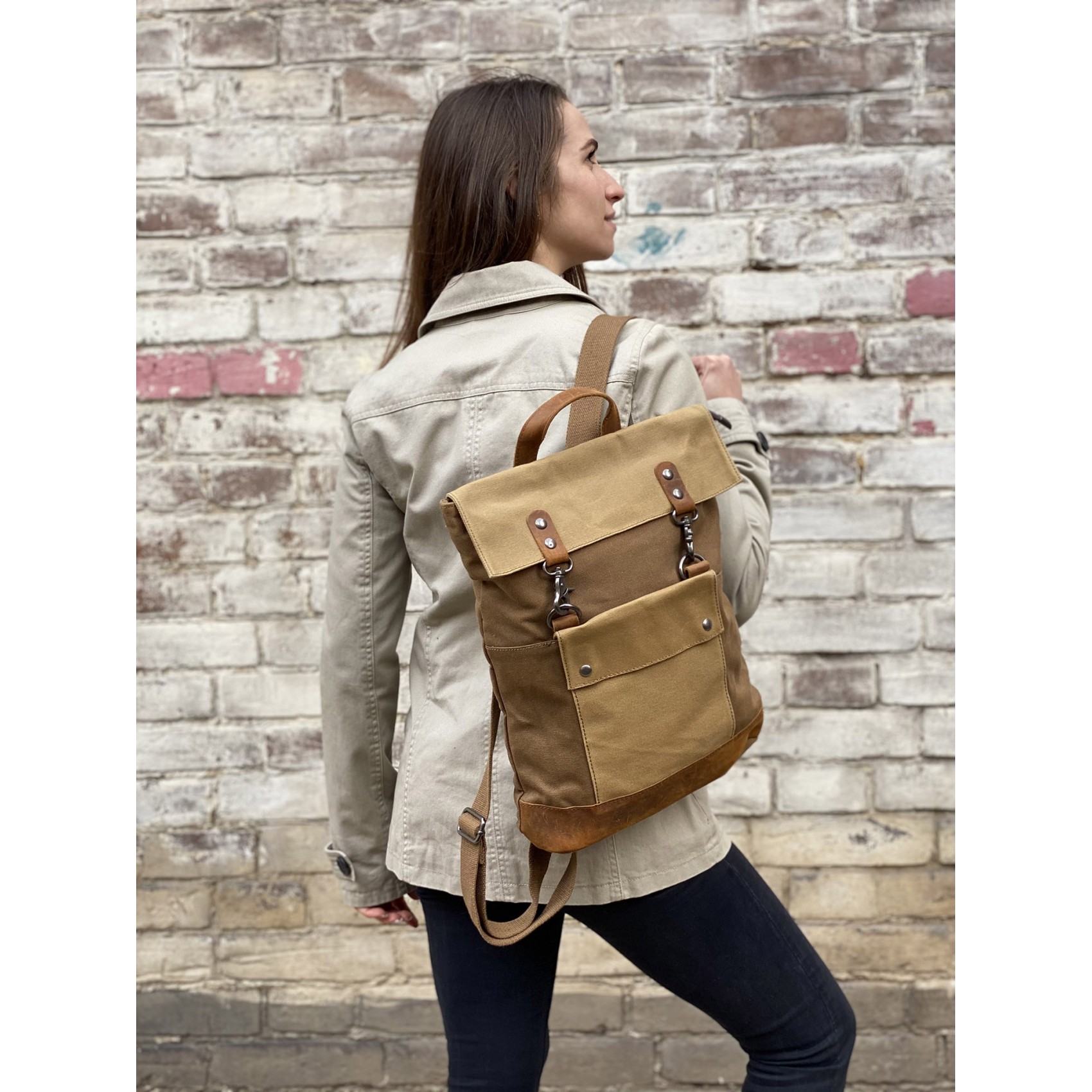 Виготовлений із міцного канвасу із вставками із натуральної вінтажної шкіри, цей рюкзак обіцяє довгу службу та унікальний зовнішній вигляд. Він має основне відділення на блискавці, яке також можна зафіксувати на карабінах для додаткової безпеки. Усередині рюкзака ви знайдете зручні кишені на блискавці, кишеню-перегородку на блискавці та дві кишені для дрібниць, щоб організувати свої речі. Попереду рюкзака є кишеня на магнітних кнопках, а на спинці – кишеня на блискавці для зручного зберігання необхідних предметів. Якісна фурнітура, металеві змійки та міцні ручки гарантують довговічність та надійність рюкзака.