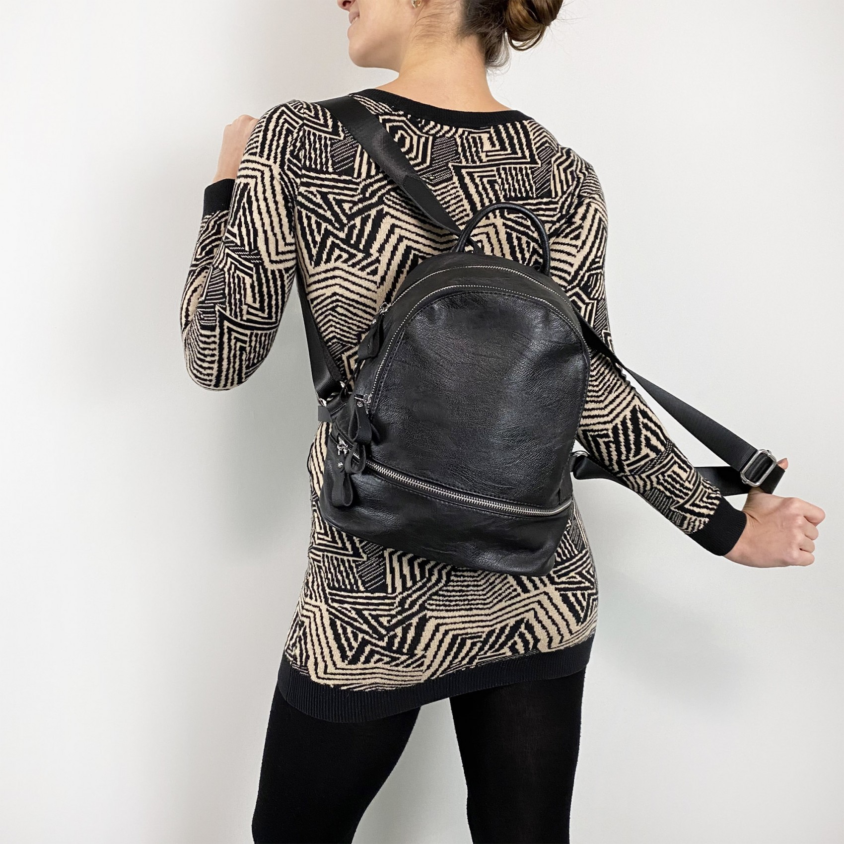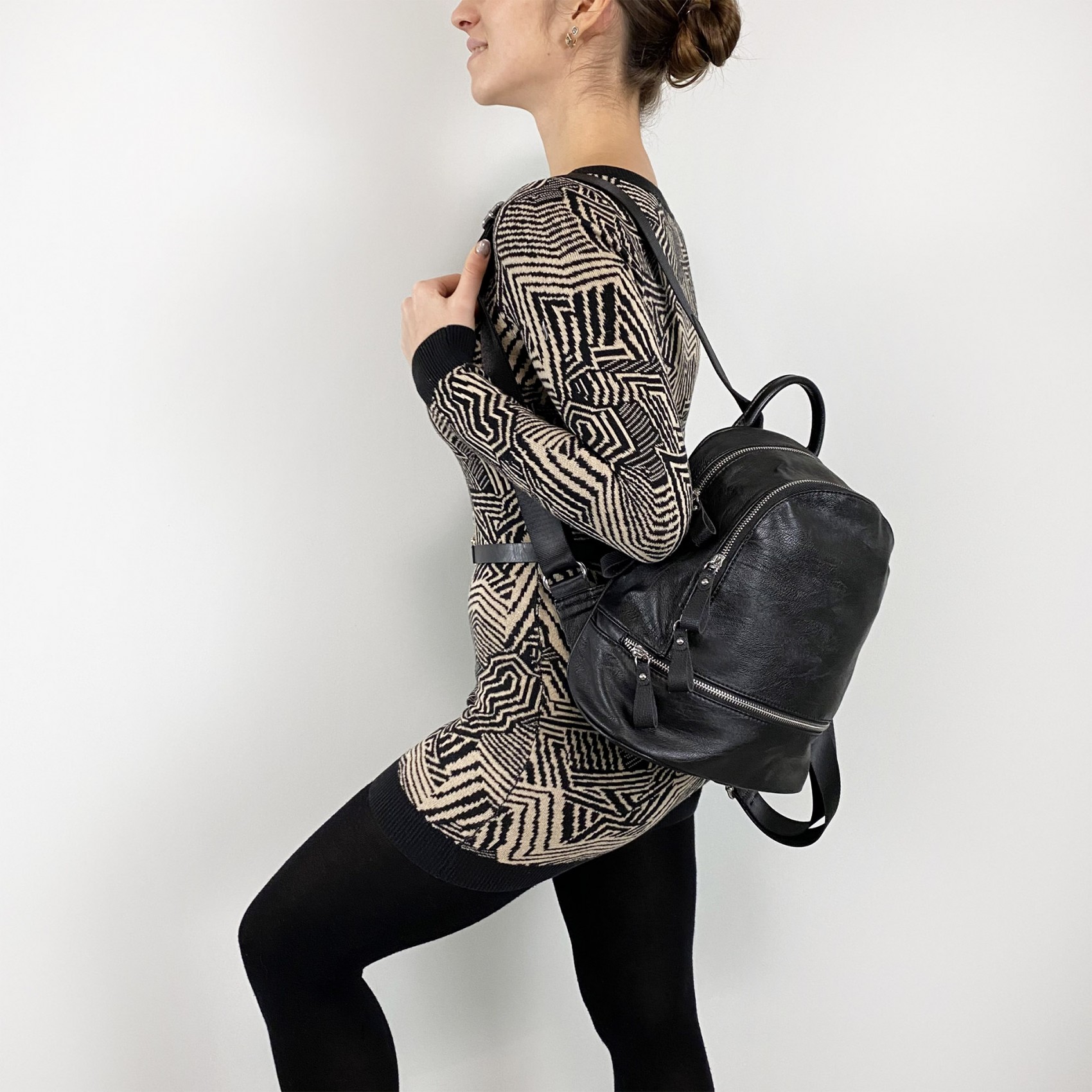 Жіночий рюкзак Sandy у чорному кольорі – ваш незамінний супутник у повсякденних пригодах. Він виготовлений з високоякісної екошкіри і має коттоновий підклад.