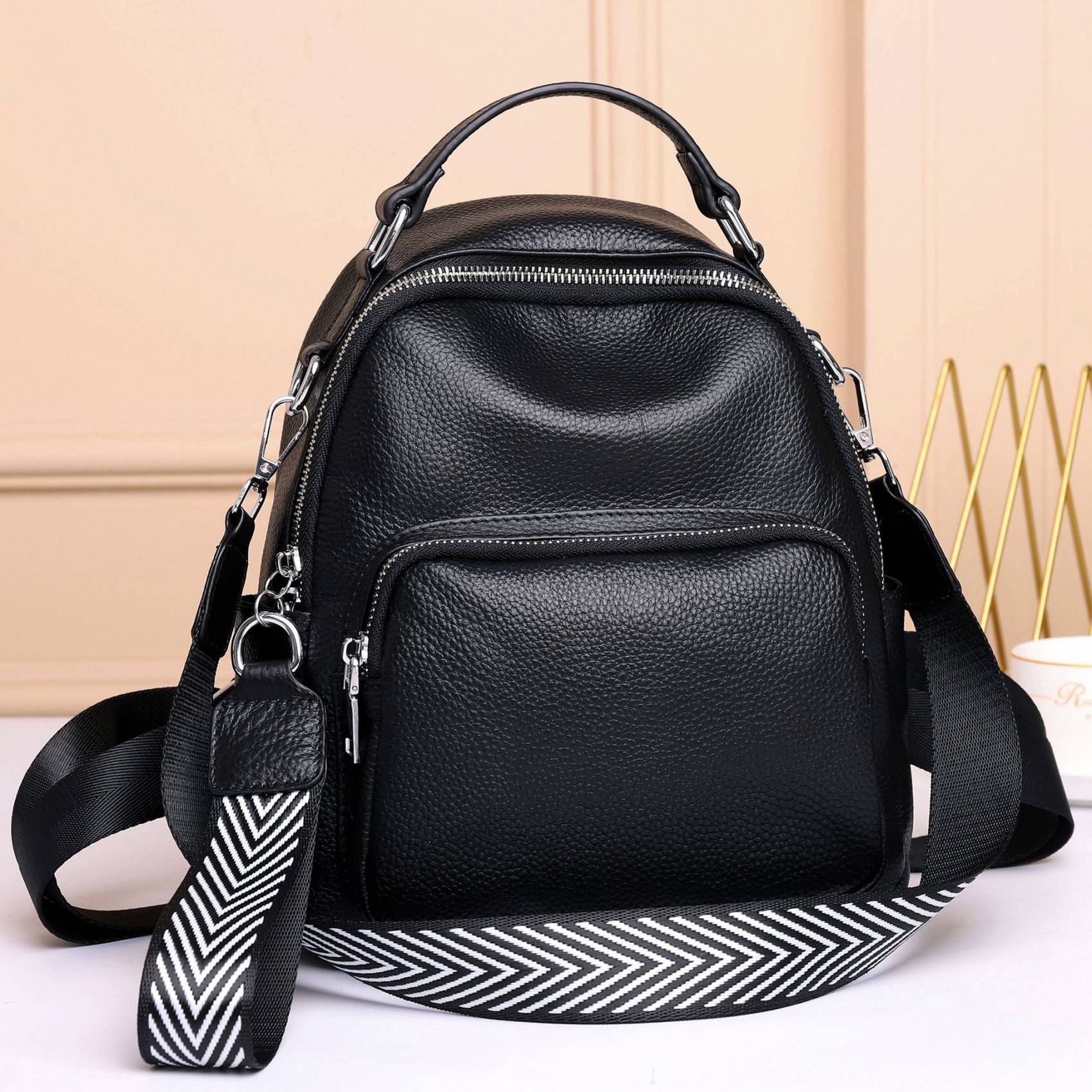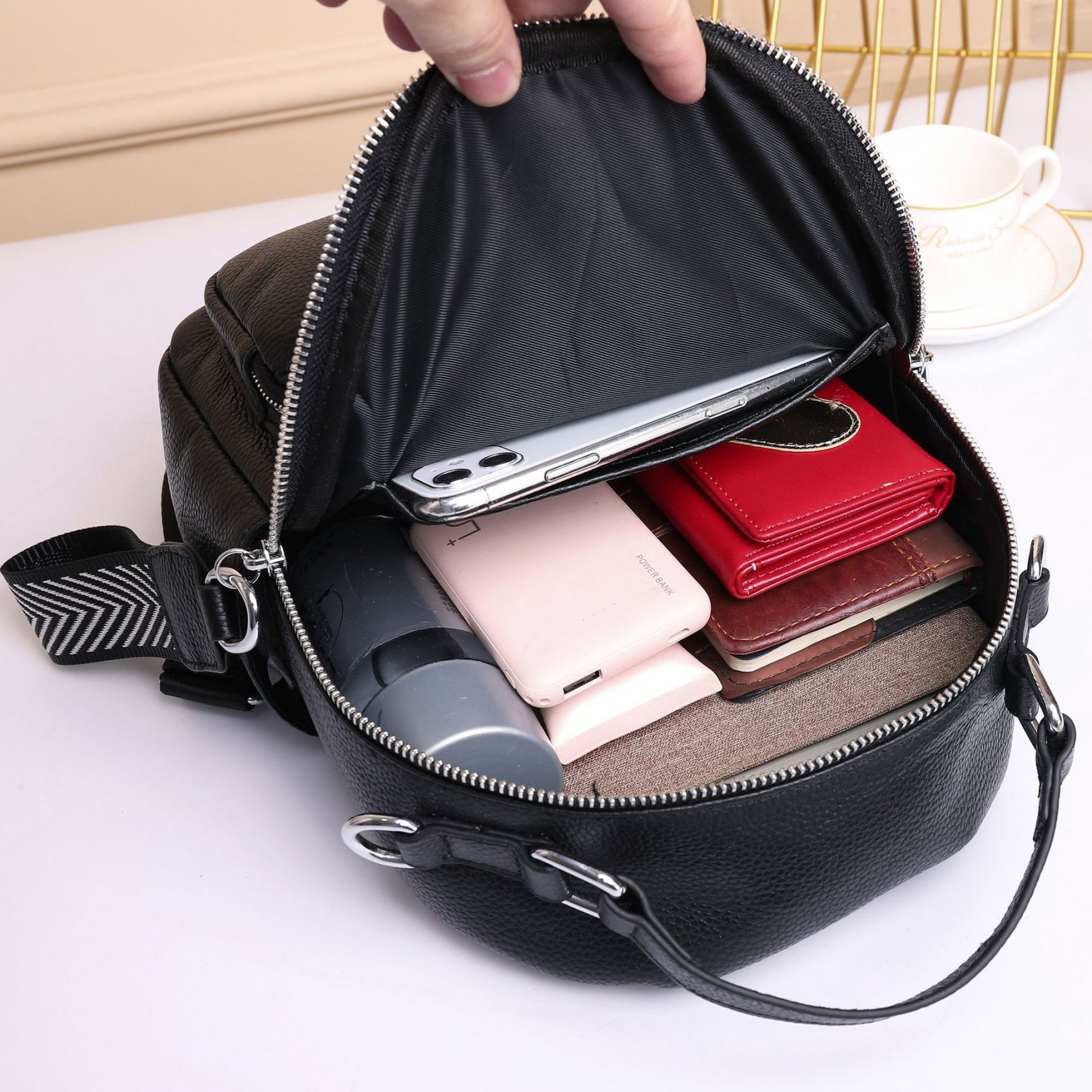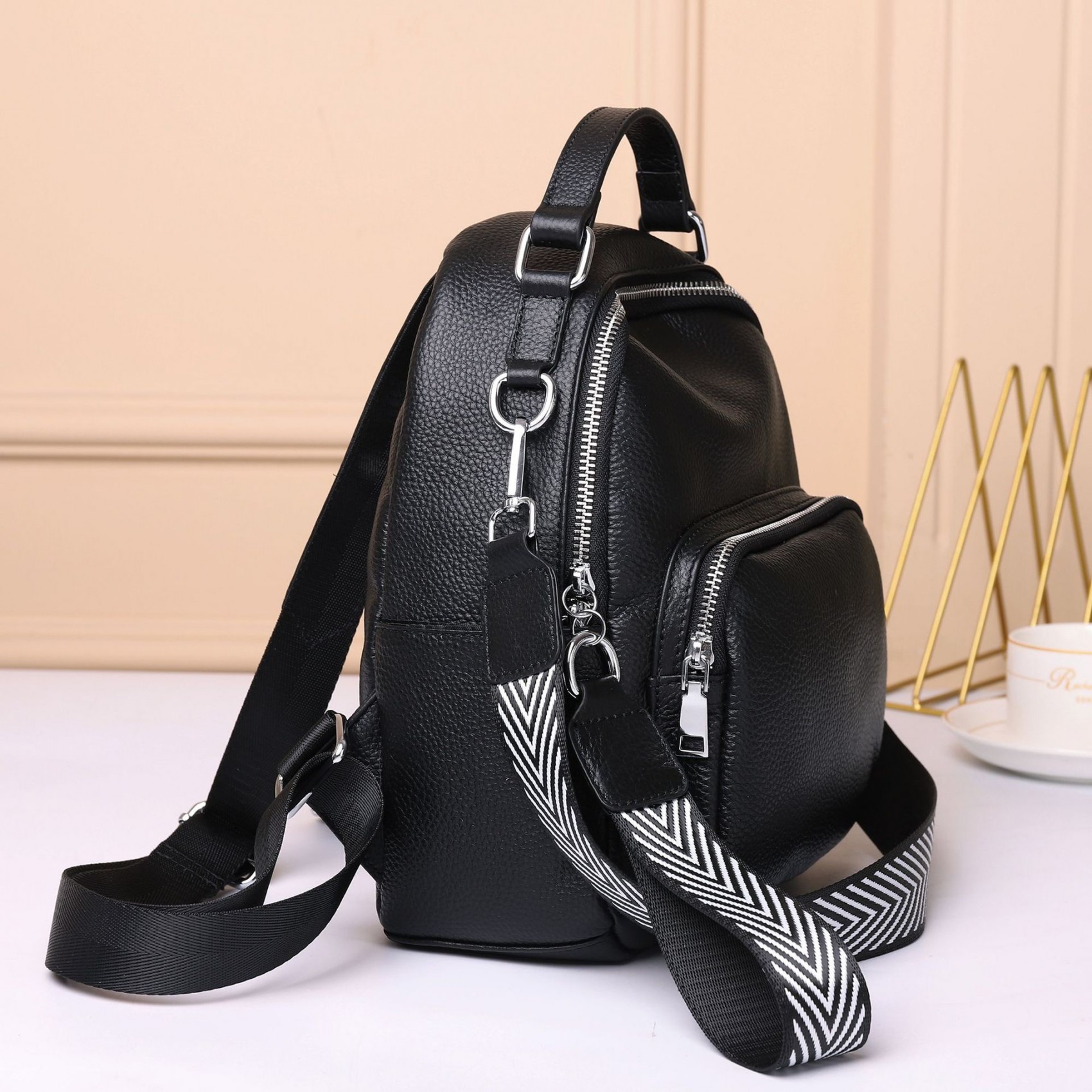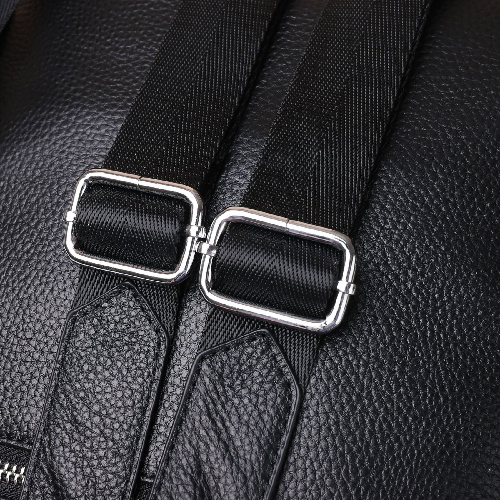 Рюкзак Adeline виготовлений із натуральної шкіри глибокого чорного кольору, яка поєднує в собі м’якість і міцність. Його дизайн продуманий до дрібниць: спереду розташована містка кишеня на блискавці — зручно для речей, до яких потрібен швидкий доступ. Основне відділення закривається на блискавку з двома бігунками, що забезпечує зручне відкривання з будь-якого боку.