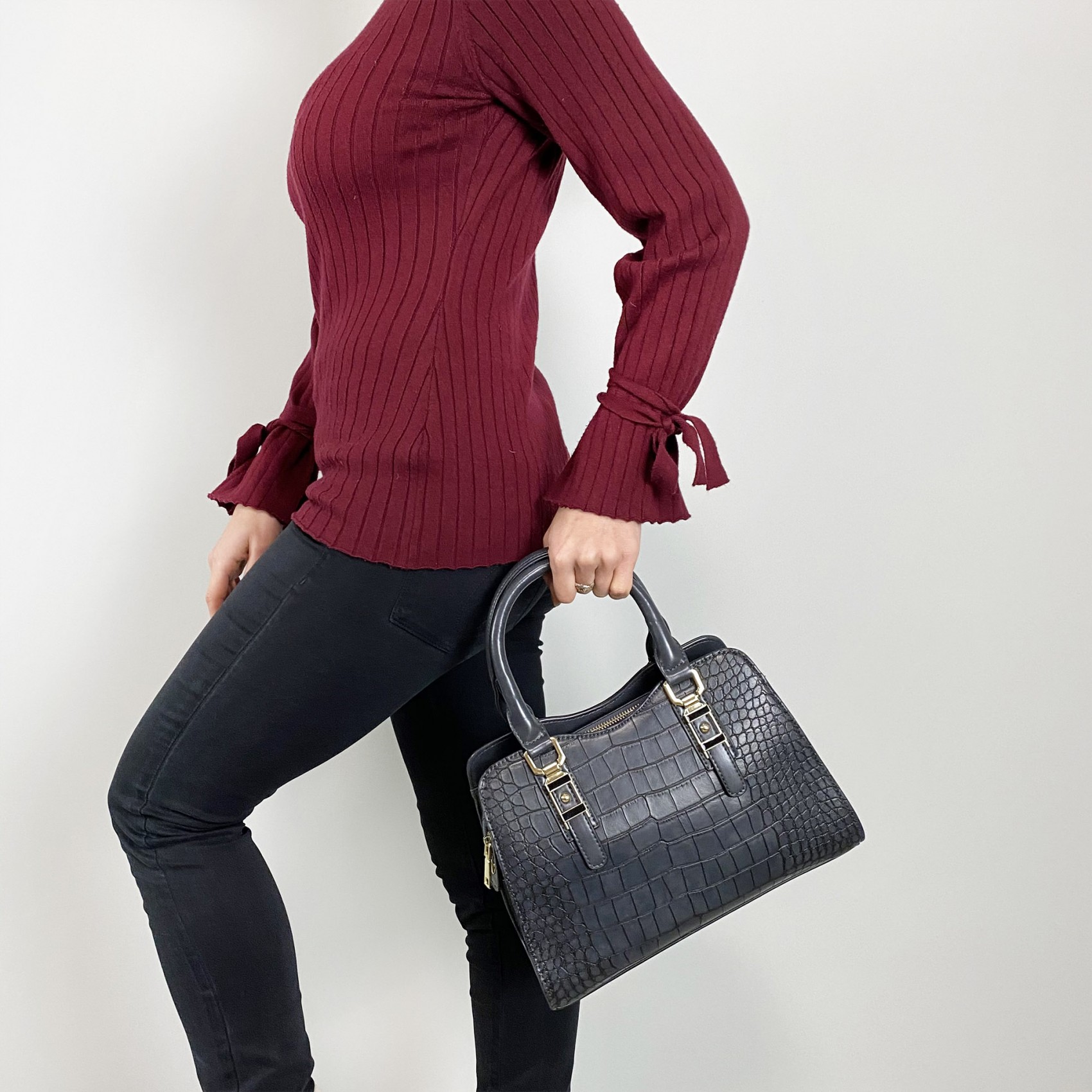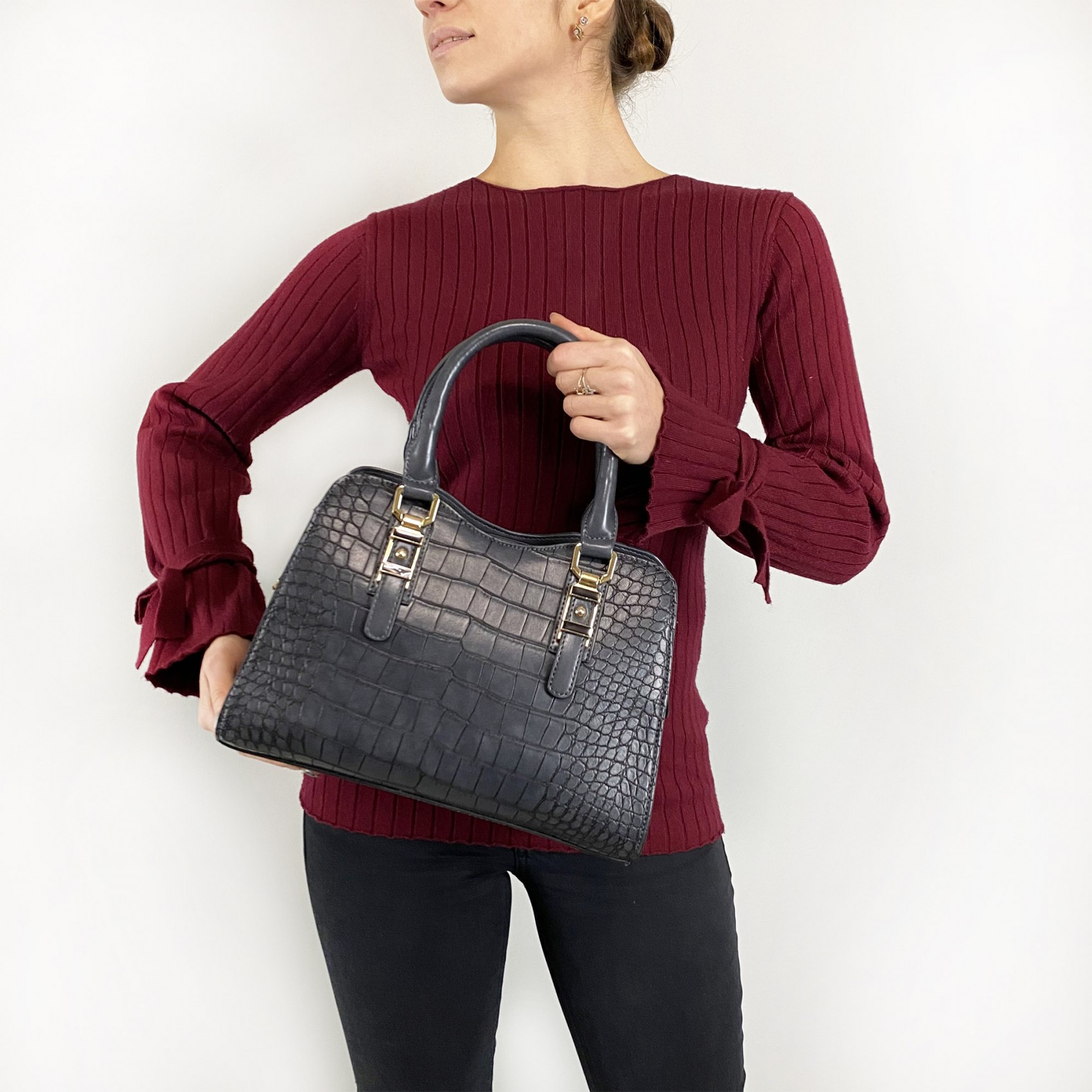Чарівна сумка Elly в сіро-синьому відтінку - сучасна класика, що відображає вашу стильність і елегантність. Увага до деталей і прекрасна якість матеріалів роблять цю сумку незамінною в повсякденному використанні.