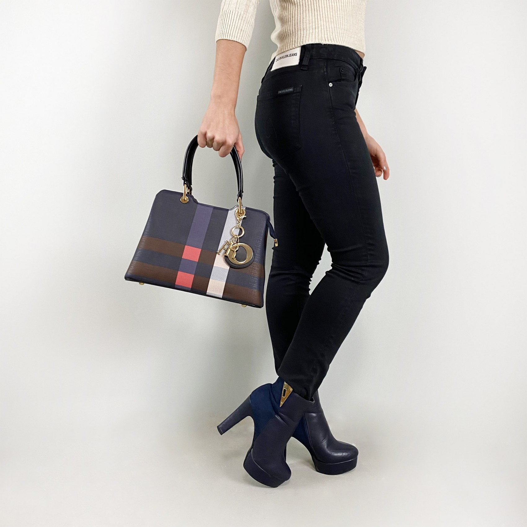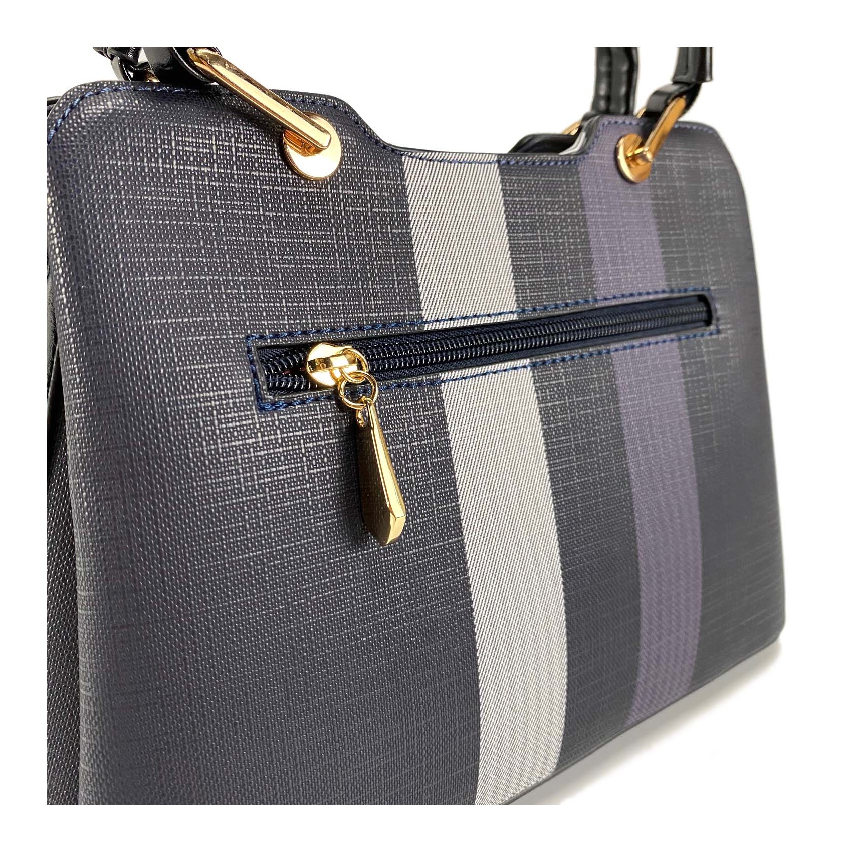 Сумка Grace у синьому кольорі з чорними ручками - це ідеальний вибір для любительок класичного стилю. Середнього розміру, вона забезпечує достатньо місця для ваших речей без втрати елегантності.