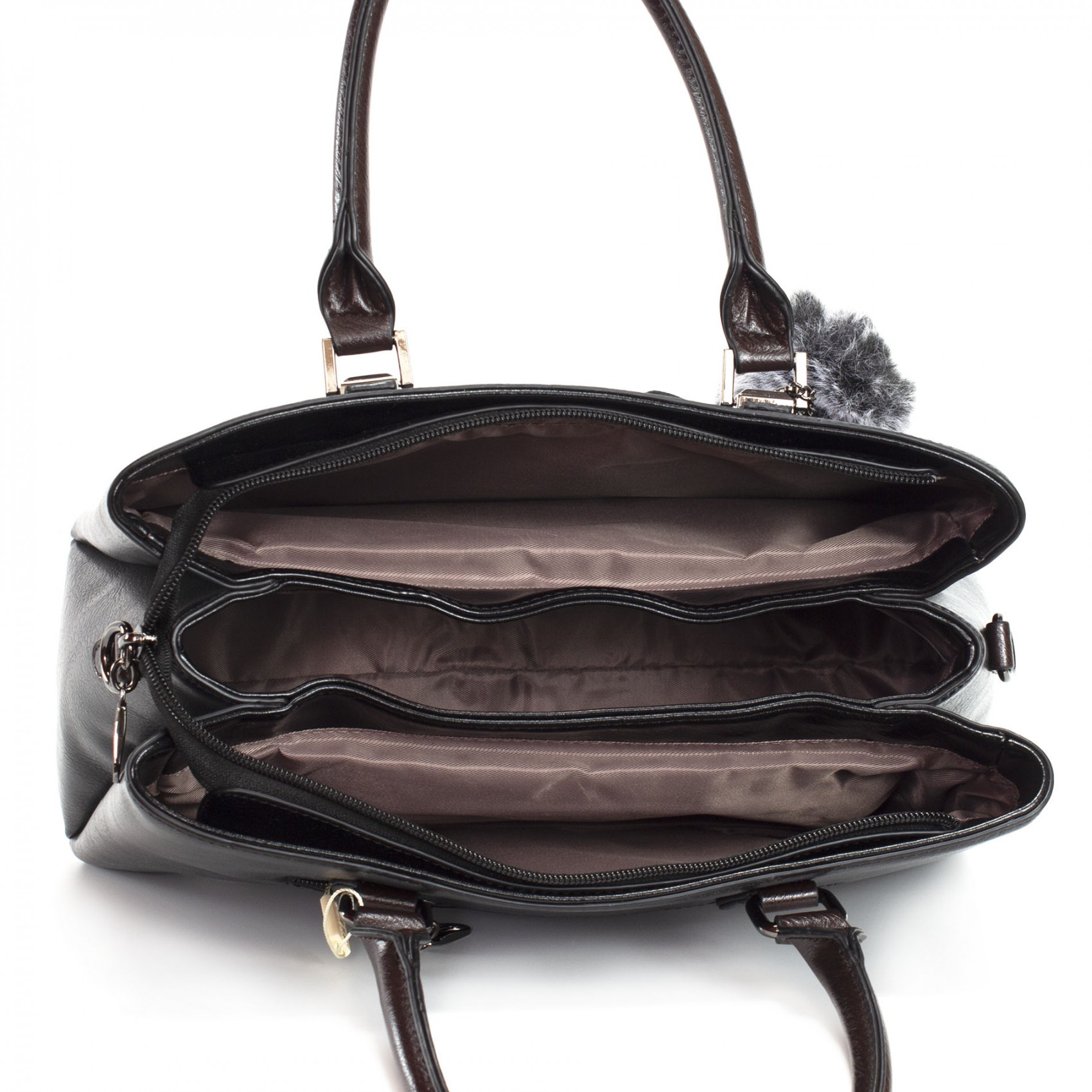 Сумка має 3 основні великі відділення, які закриваються на блискавці, надаючи вам багато місця для зберігання та організації речей. Усередині ви знайдете 3 невеликі кишені, у тому числі одна на змійці, що ідеально підходять для зберігання дрібниць. На звороті сумки знаходиться додаткова кишеня на блискавці, призначена для зручного зберігання важливих предметів. У комплекті поставляється довга ручка, яка дозволяє носити сумку через плече, забезпечуючи комфорт та стиль. Також вас порадує наявність брелка-прикраси, що знімає, що додає шарму і індивідуальності вашому образу. Освіжіть свій стиль із сумкою Isa Paulina SE у чорному кольорі.