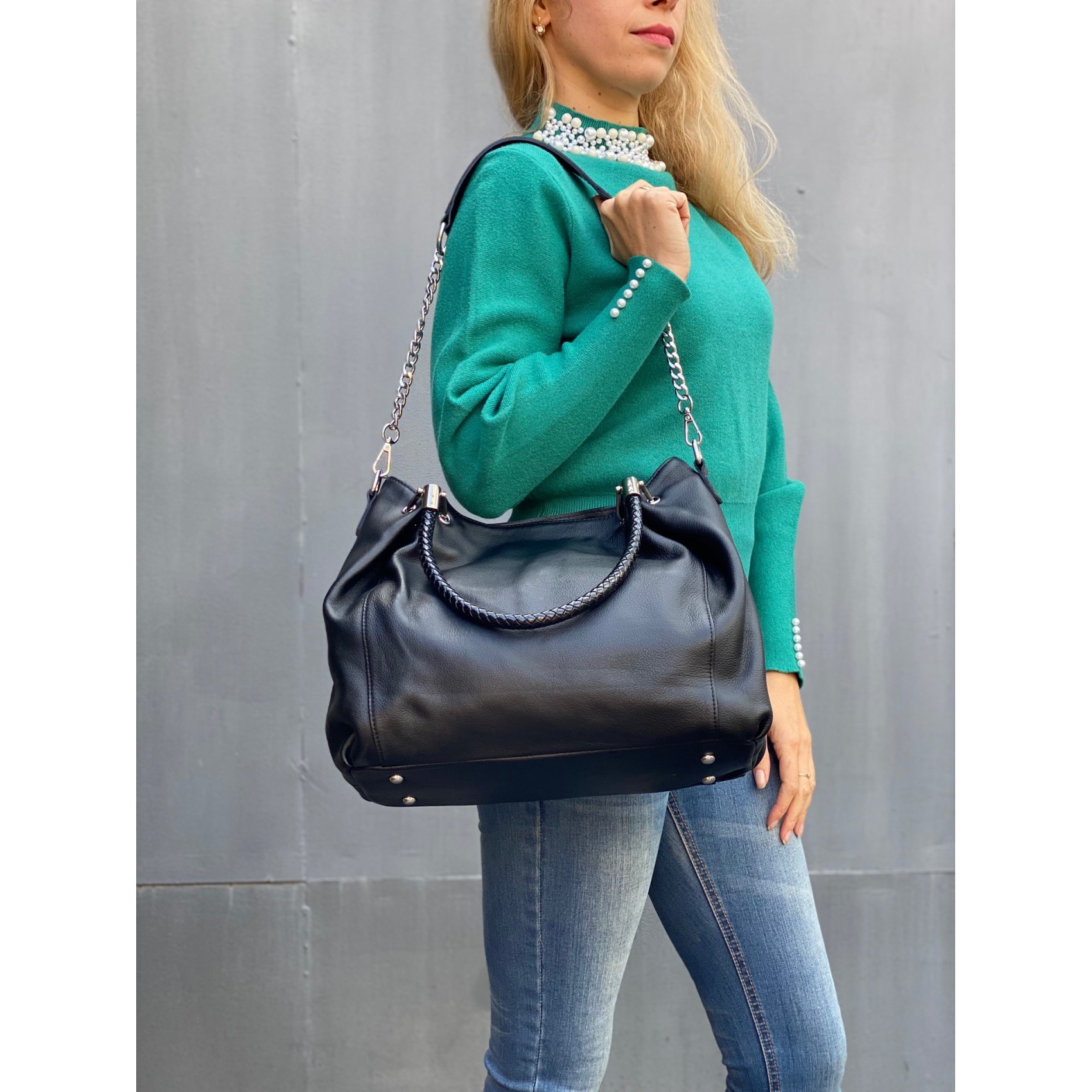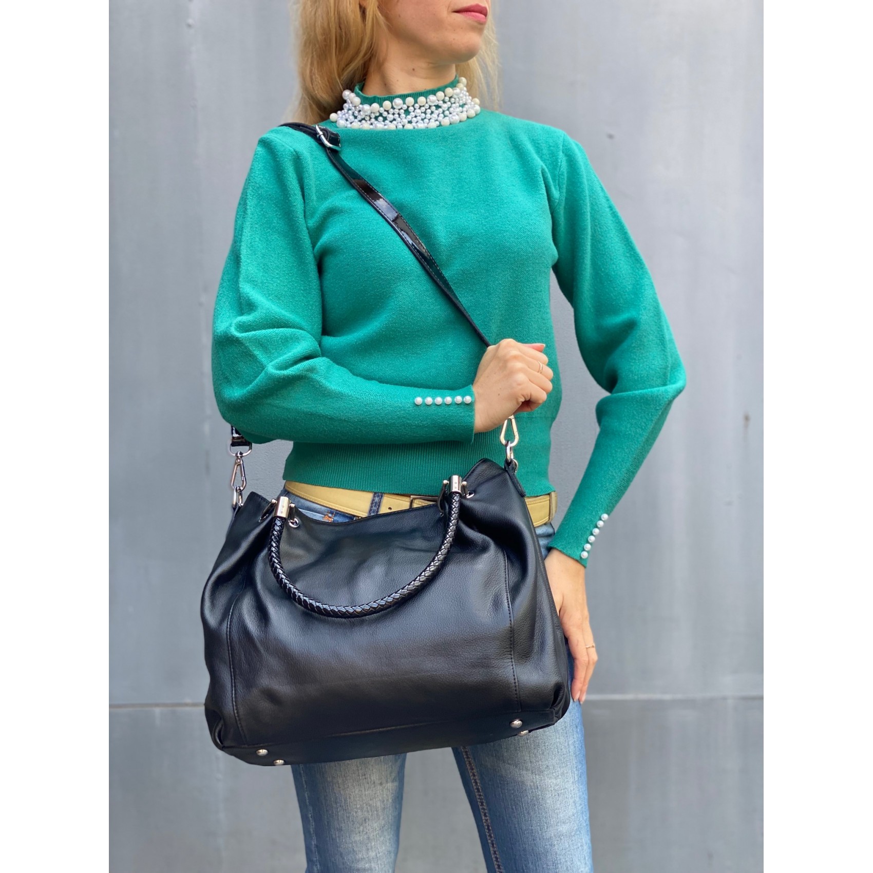 Чорна жіноча шкіряна сумка Brenda, що надихає, - це неперевершене поєднання елегантності та зручності.