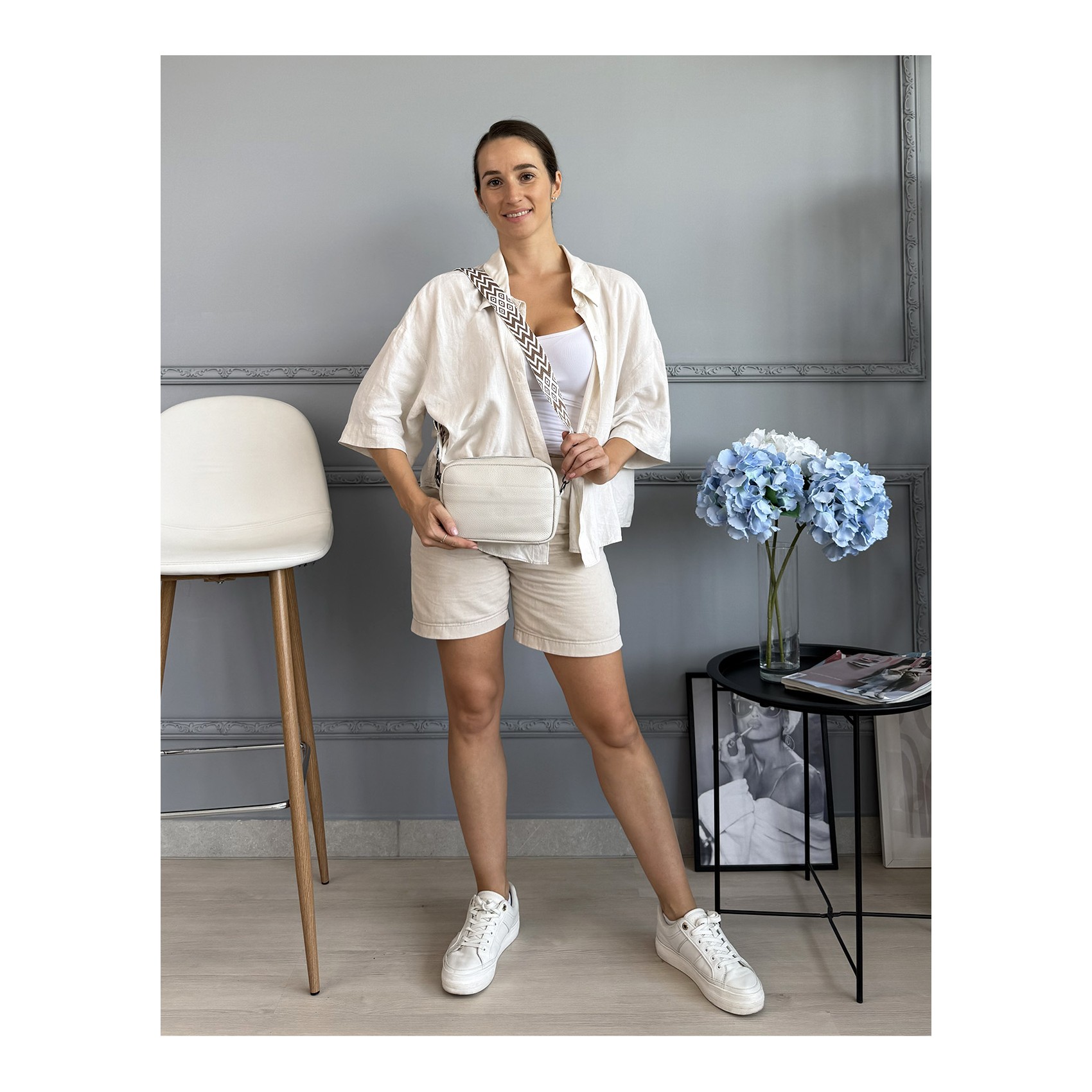 Жіноча шкіряна сумка крос-боді Marilyn у білому кольорі — це втілення елегантності та практичності. Цю сумку відрізняє мінімалістичний дизайн з ретельно продуманими деталями, які роблять її ідеальним аксесуаром на кожен день. Основне відділення на блискавці забезпечує безпеку ваших речей, а внутрішні кишені дозволяють зручно розмістити всі необхідні дрібниці. Кишеня на кнопці спереду додає стильного акценту і надає легкий доступ до найнеобхідніших речей. Задня кишеня на блискавці — додатковий рівень функціональності для організації ваших речей. Знімний регульований плечовий ремінець дозволяє вам носити сумку так, як вам зручно, надаючи вашому образу ще більше комфорту та універсальності. Сумка Marilyn — це ідеальне поєднання класичного білого кольору та сучасного дизайну, яке стане невід'ємною частиною вашого гардероба.