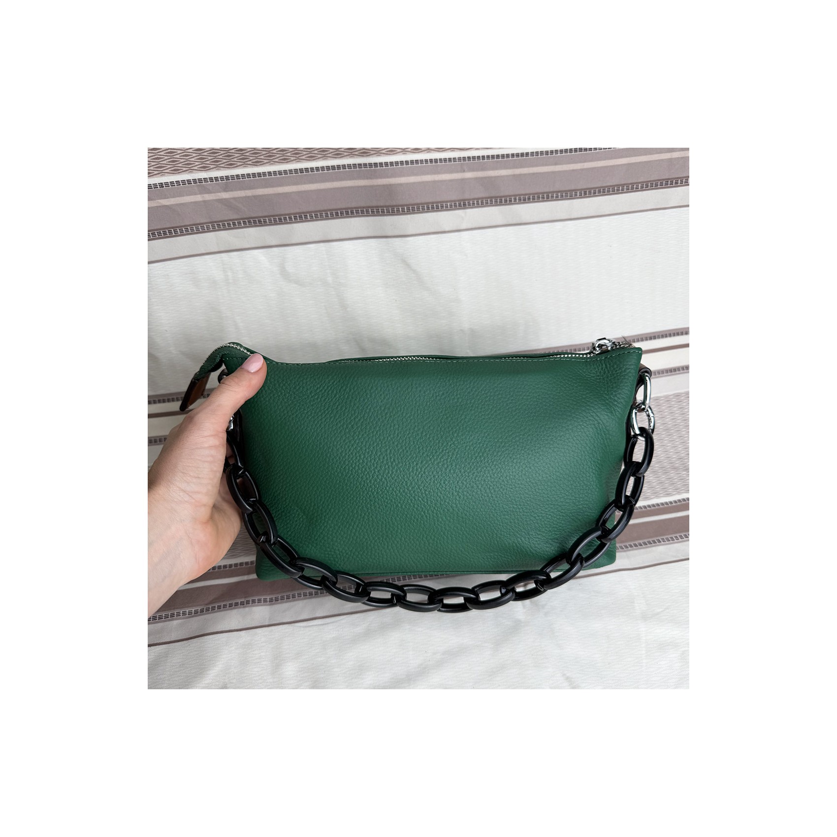Дозволь собі огорнутися теплом та вишуканістю сумки Molly. Це справжній шедевр серед жіночих шкіряних сумок через плече, що поєднує в собі практичність та елегантність. Відтінок зеленого додасть нотки вишуканості та стриманості, наголосивши на твоєму вишуканому стилі.