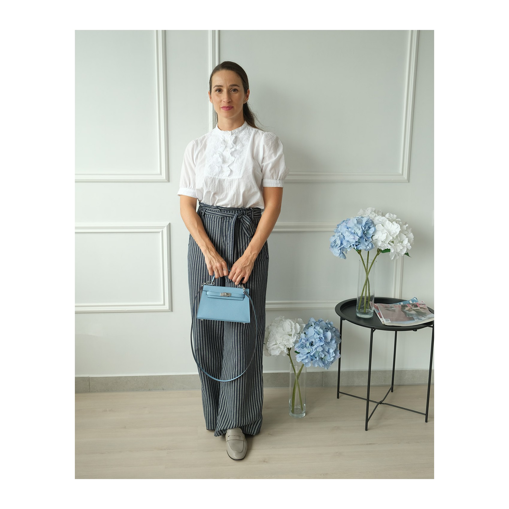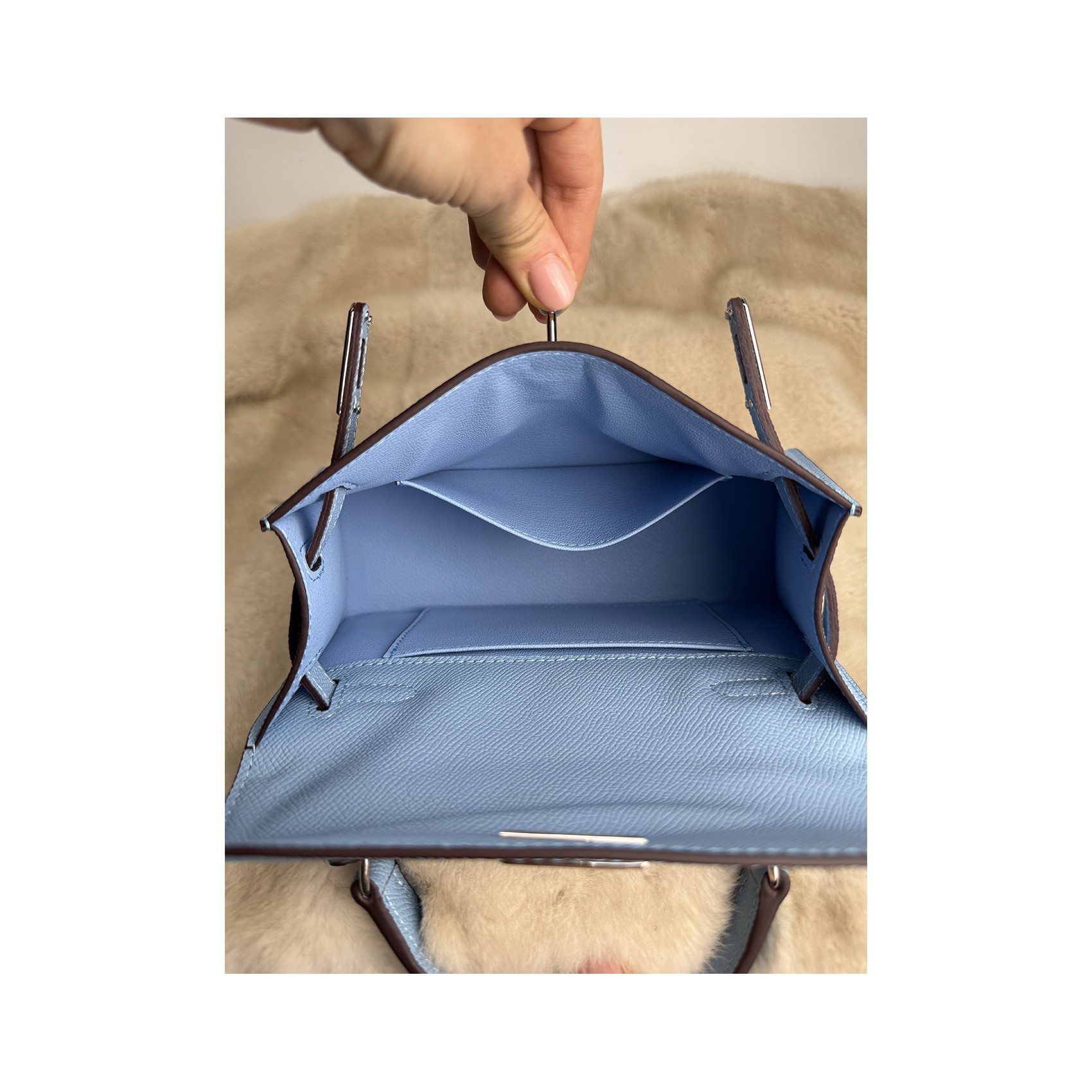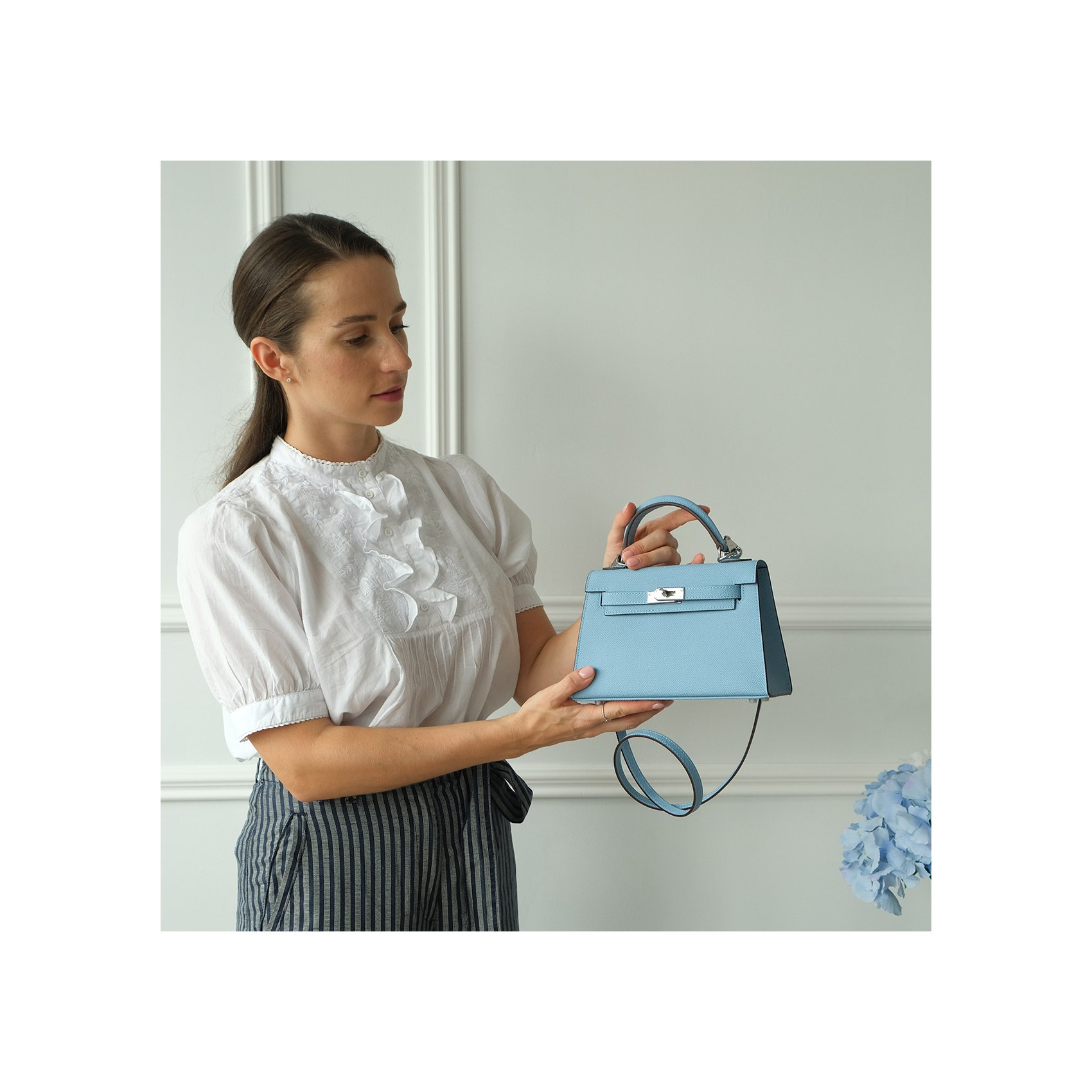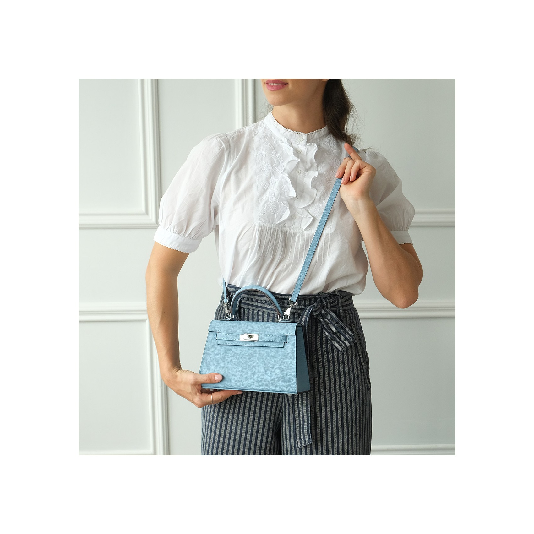 Жіноча шкіряна сумка Kelly блакитна (22 x 8 x 16)