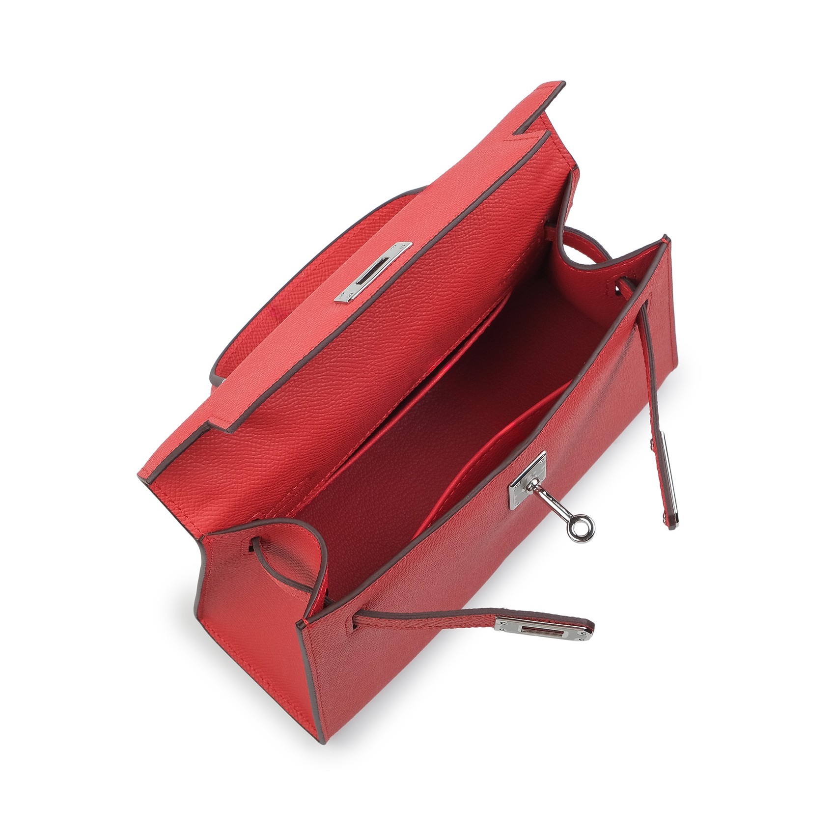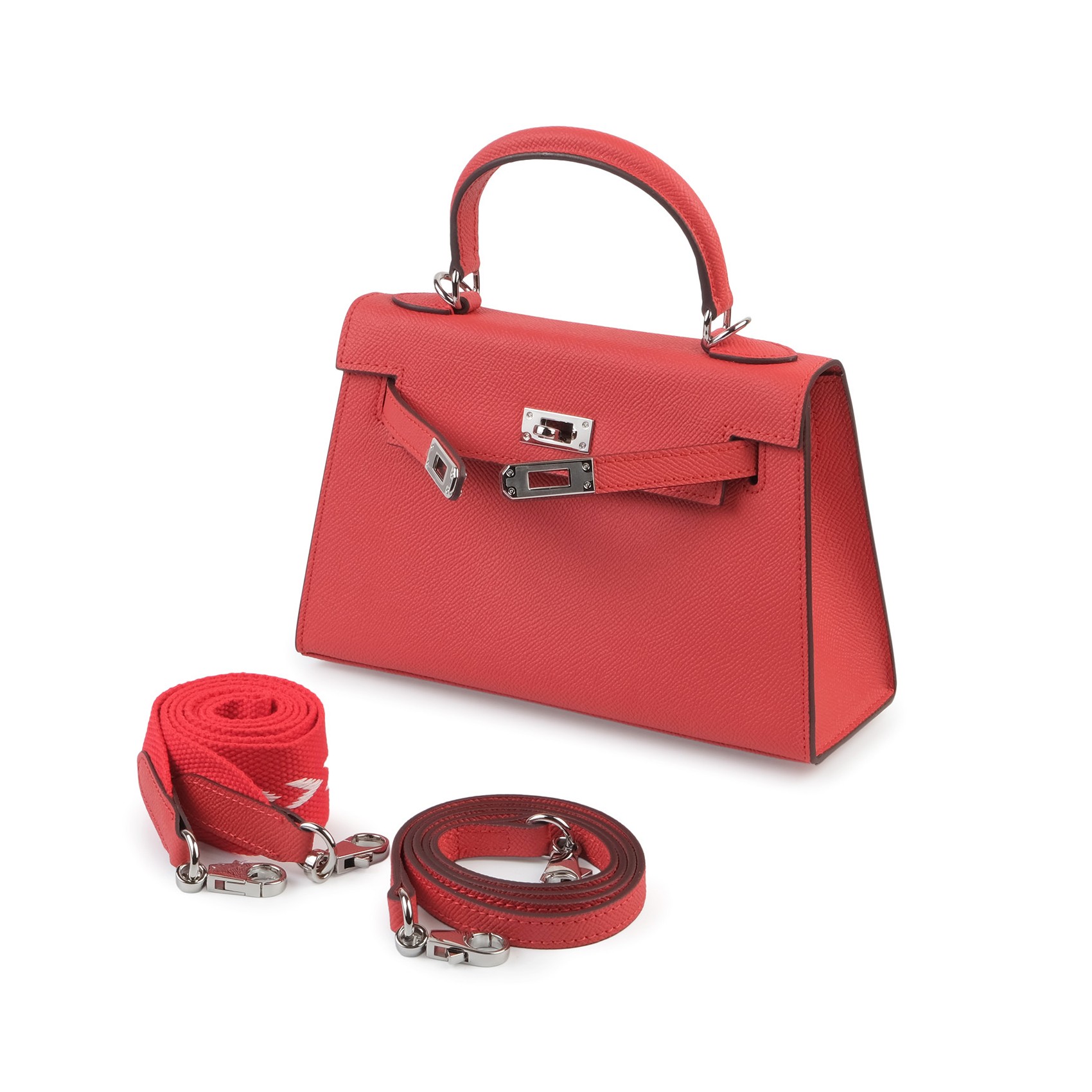 Жіноча сумка Kelly червоного кольору виготовлена з натуральної шкіри з матовою текстурою та охайною обробкою. Модель доповнена сріблястою фурнітурою та замком-застібкою, що забезпечує надійне закривання. Усередині розміщено дві зручні кишені для зберігання дрібних речей - ключів, карток, навушників. У комплект входять два знімні плечові ремінці - широкий та вузький, що дозволяє змінювати стиль носіння залежно від образу чи ситуації. Червоний колір додає аксесуару яскравості та індивідуальності, роблячи його доречним як для повсякденних прогулянок, так і для офісу чи вечірнього виходу.