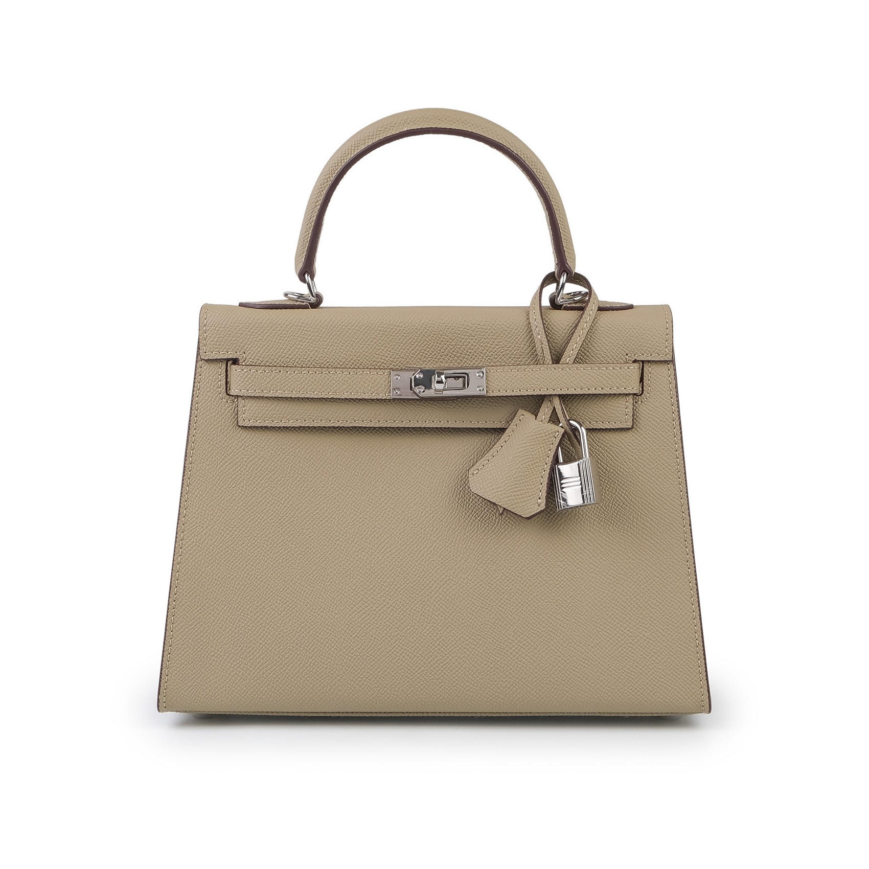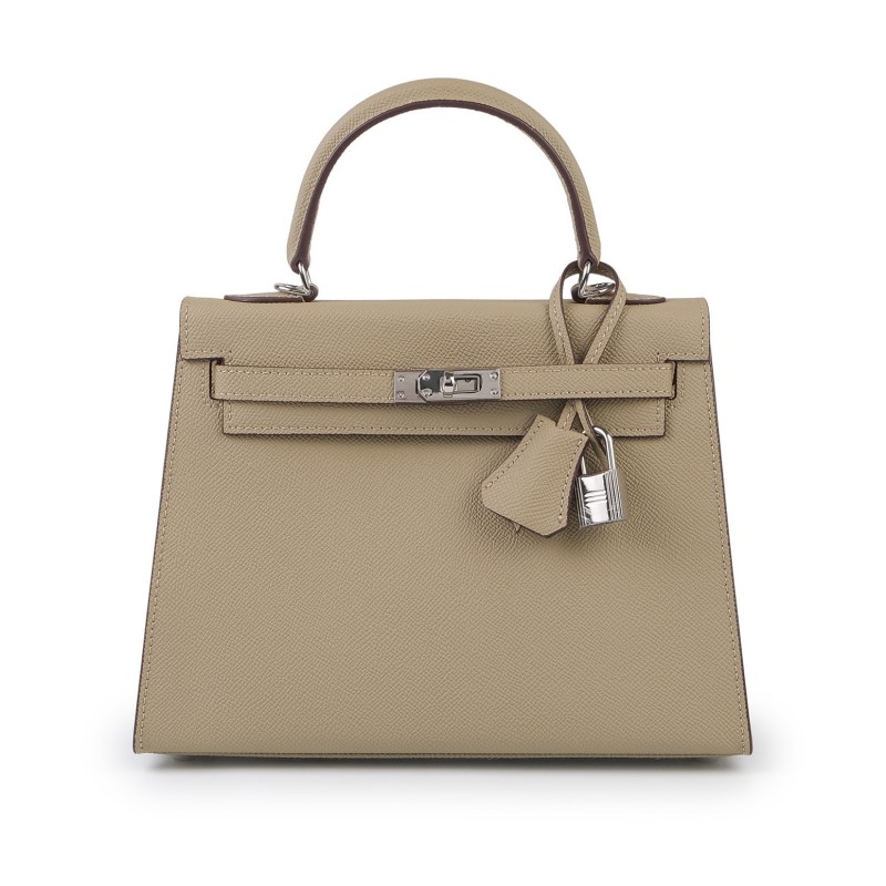 Жіноча сумка Kelly бежевого кольору виготовлена з натуральної шкіри з гладкою текстурою та відзначається якісним оздобленням. Елегантна модель доповнена срібною фурнітурою, включаючи декоративний замок, який надійно фіксує клапан. Компактні розміри дозволяють зручно розмістити повсякденні речі, а внутрішні кишені забезпечують комфортну організацію зберігання, зокрема потаємну кишеню на блискавці для документів і дрібниць. Сумка оснащена знімним ремінцем, що робить її універсальною: її можна носити в руці або на плечі. Цей аксесуар гармонійно доповнить як діловий, так і повсякденний образ, підкреслюючи смак і стиль власниці.