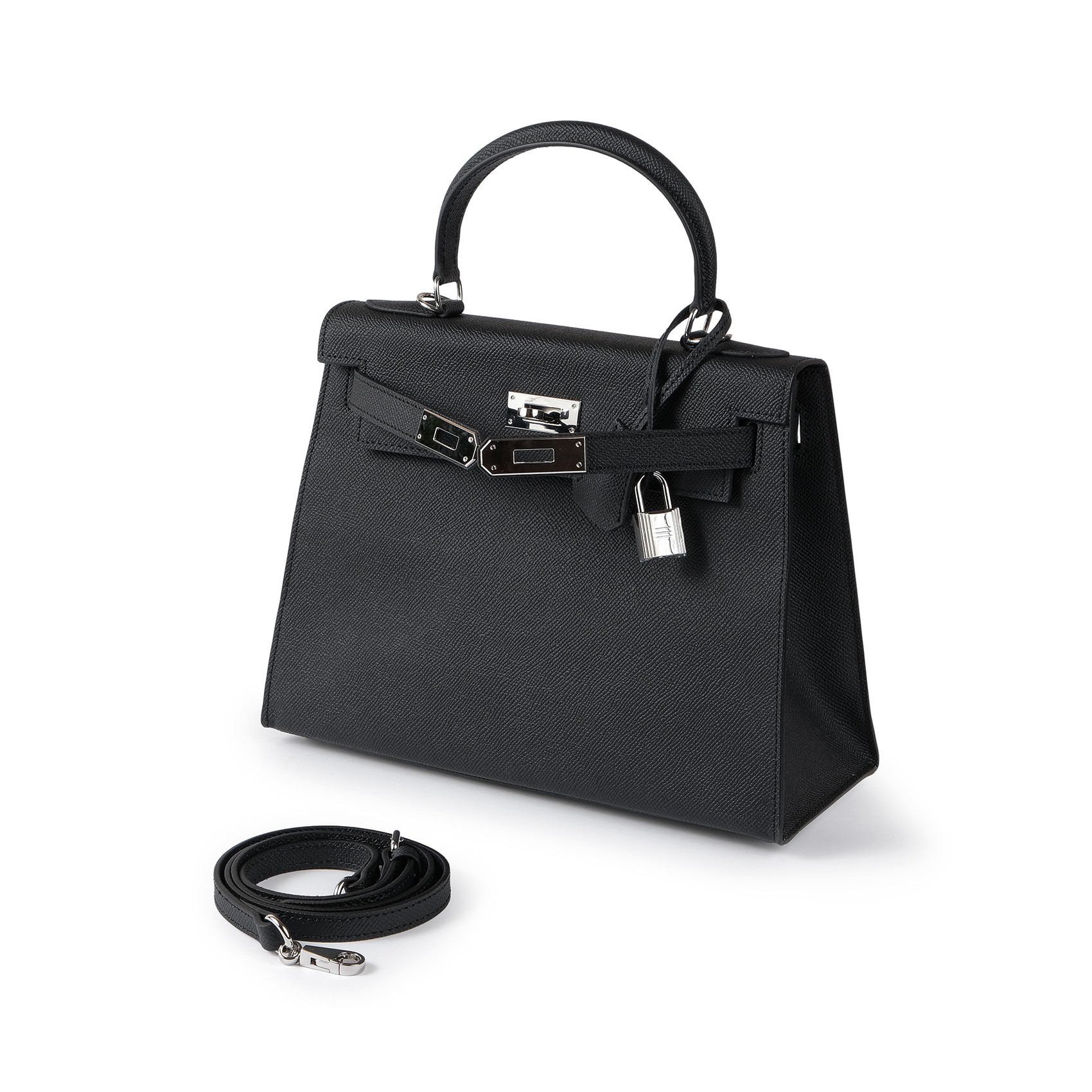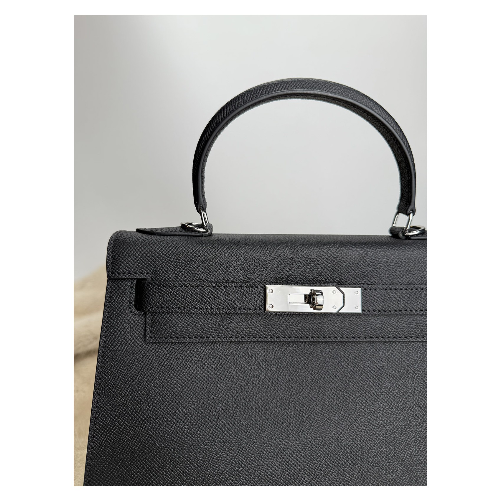Жіноча сумка Kelly чорного кольору виготовлена з натуральної шкіри з гладкою текстурою та відзначається якісним оздобленням. Елегантна модель доповнена срібною фурнітурою, включаючи декоративний замок, який надійно фіксує клапан. Компактні розміри дозволяють зручно розмістити повсякденні речі, а внутрішні кишені забезпечують комфортну організацію зберігання, зокрема потаємну кишеню на блискавці для документів і дрібниць. Сумка оснащена знімним ремінцем, що робить її універсальною: її можна носити в руці або на плечі. Цей аксесуар гармонійно доповнить як діловий, так і повсякденний образ, підкреслюючи смак і стиль власниці.