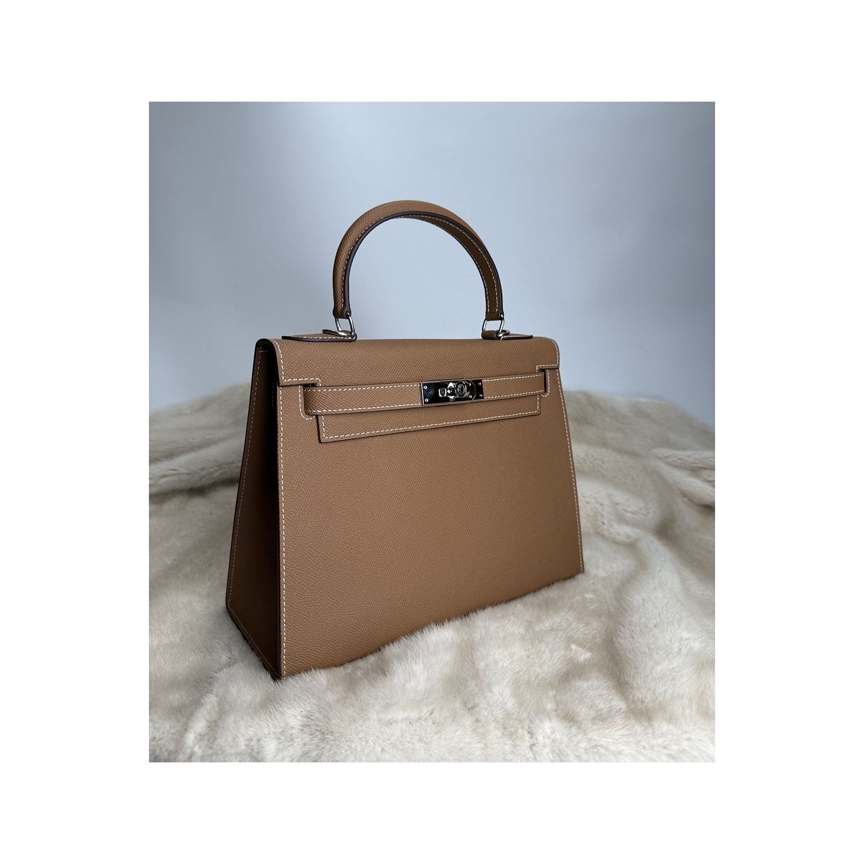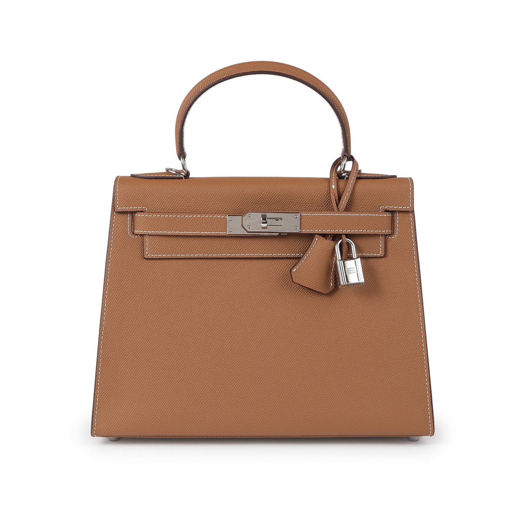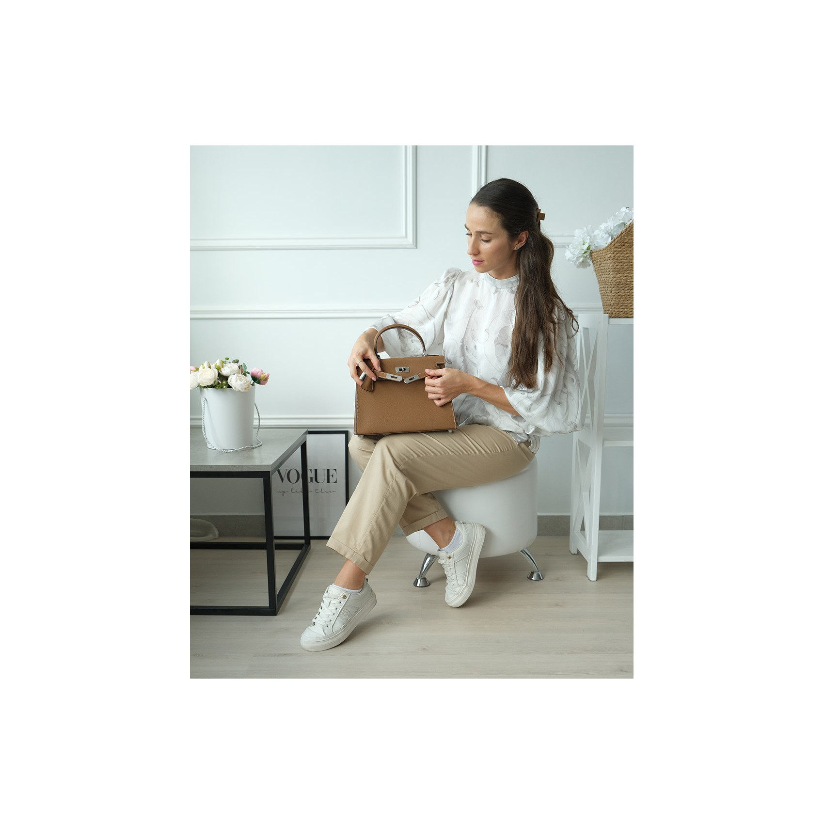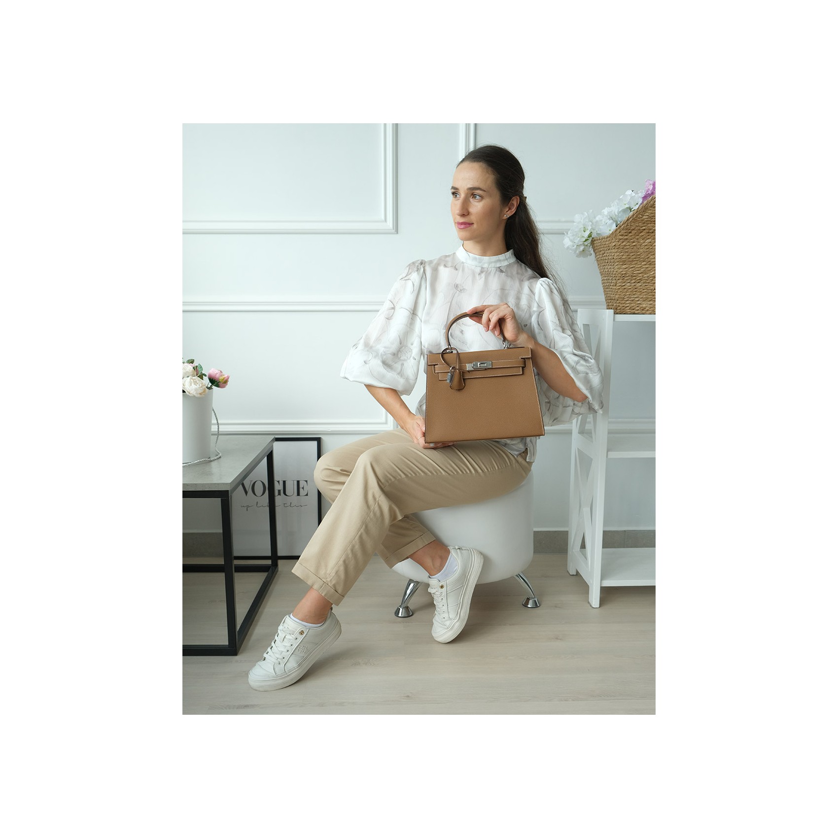 Жіноча сумка Kelly коричневого кольору виготовлена з натуральної шкіри з гладкою текстурою та відзначається якісним оздобленням. Елегантна модель доповнена срібною фурнітурою, включаючи декоративний замок, який надійно фіксує клапан. Компактні розміри дозволяють зручно розмістити повсякденні речі, а внутрішні кишені забезпечують комфортну організацію зберігання, зокрема потаємну кишеню на блискавці для документів і дрібниць. Сумка оснащена знімним ремінцем, що робить її універсальною: її можна носити в руці або на плечі. Цей аксесуар гармонійно доповнить як діловий, так і повсякденний образ, підкреслюючи смак і стиль власниці.