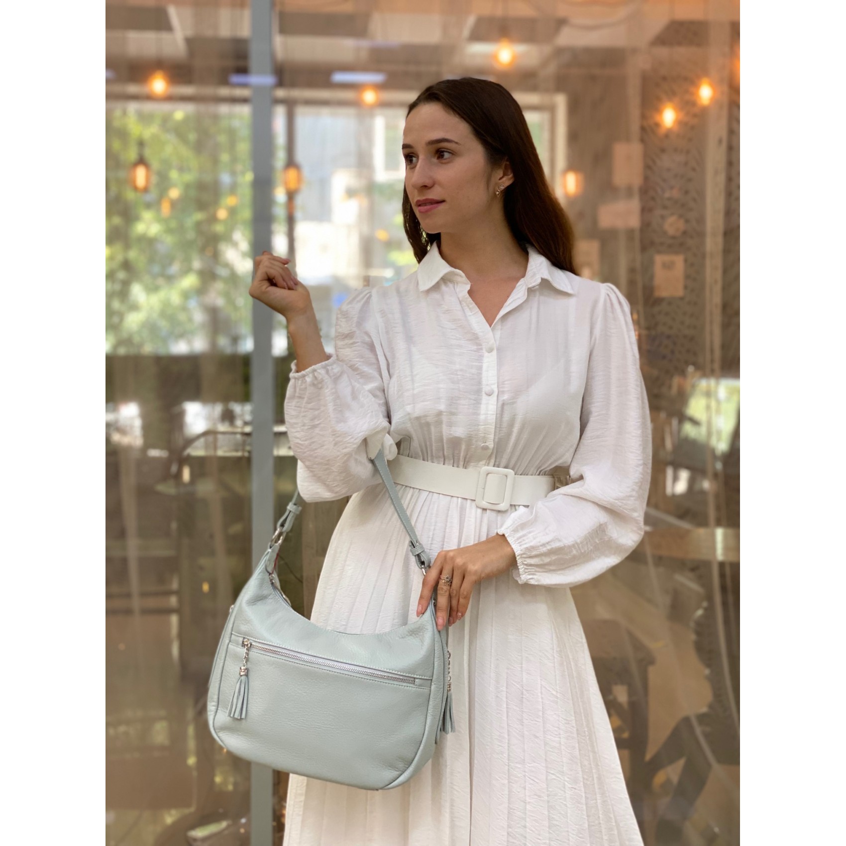 Жіноча шкіряна сумка-хобо Linda у м'ятному кольорі подарує вашому образу невимушену розкіш та стиль.