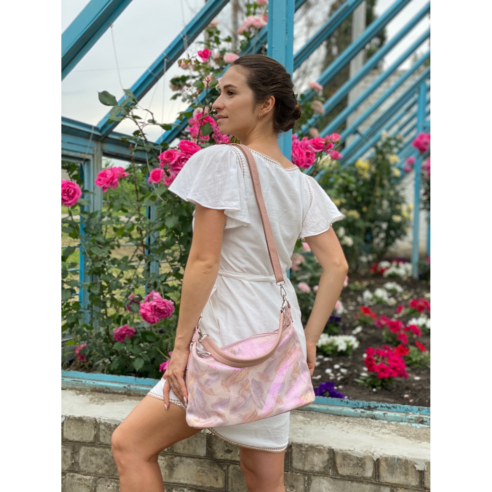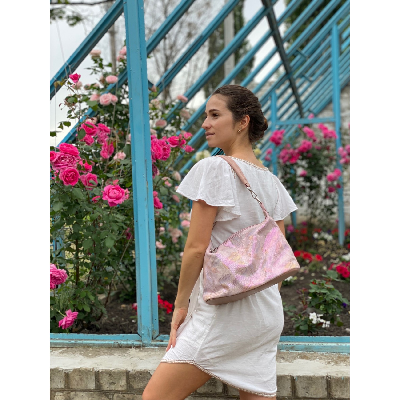 Жіноча шкіряна сумка хобо Veronica лазерка світло-рожева