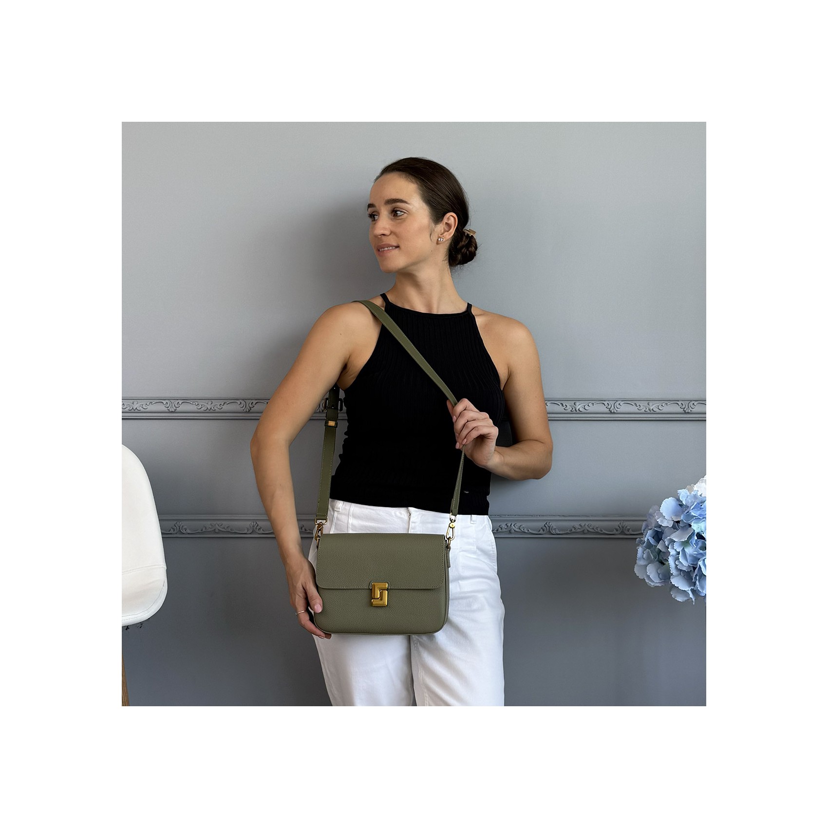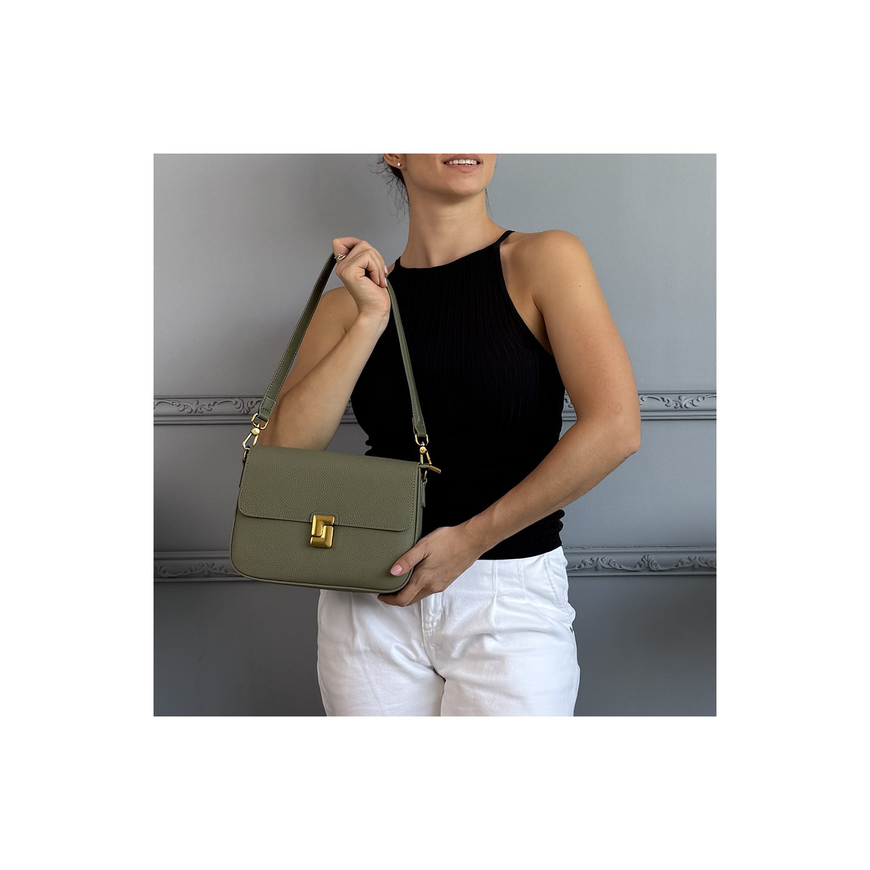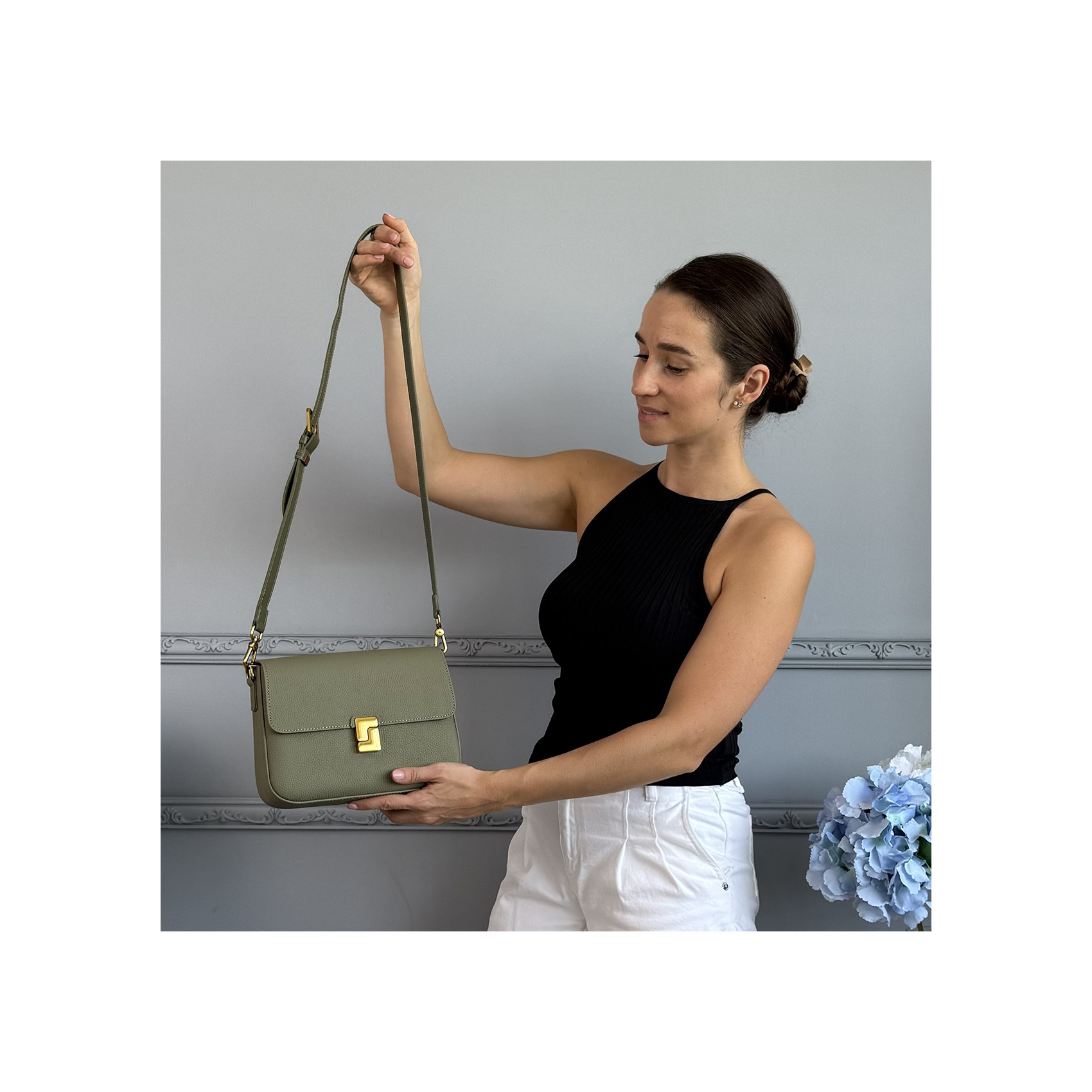 Жіноча шкіряна сумка месенджер Claire фісташкова