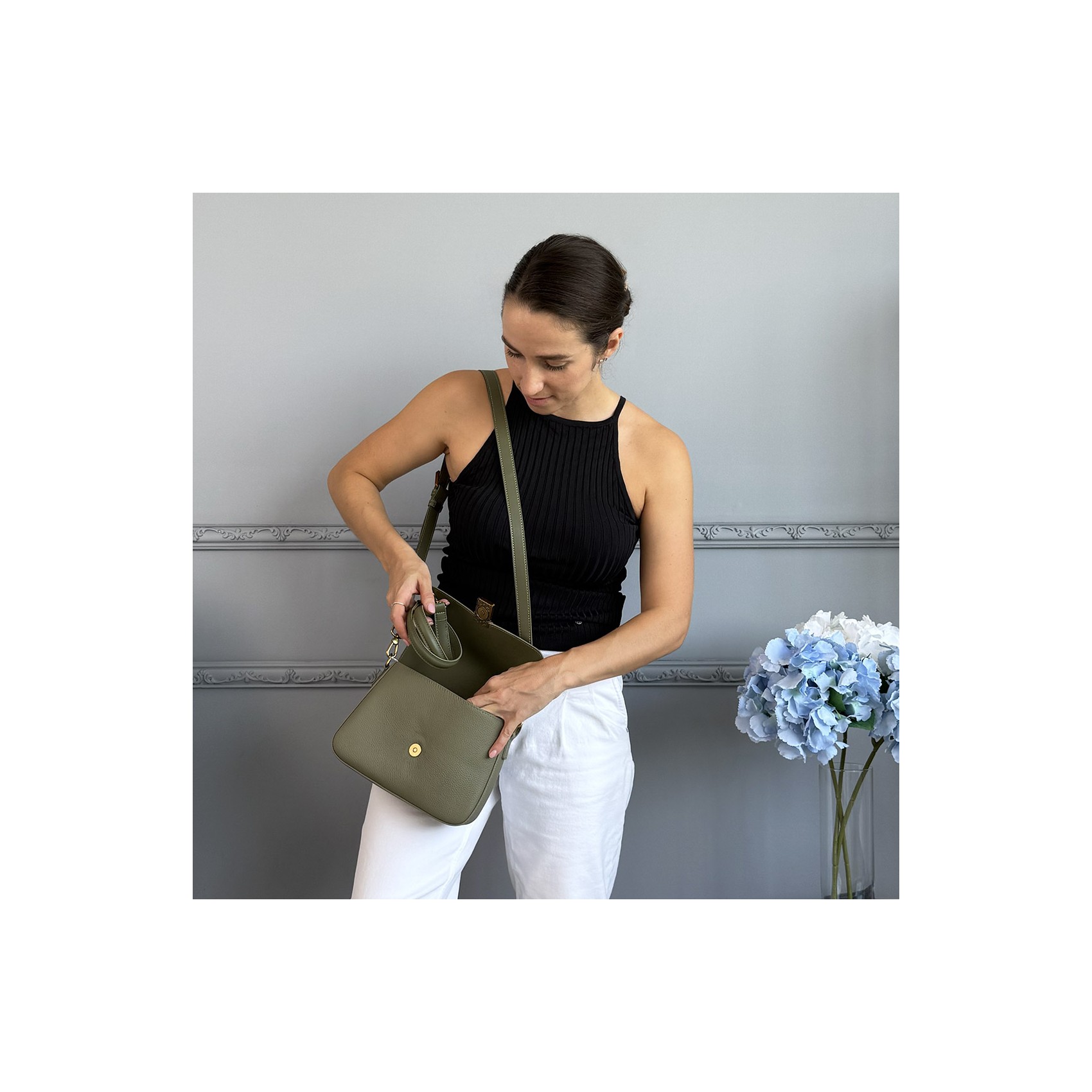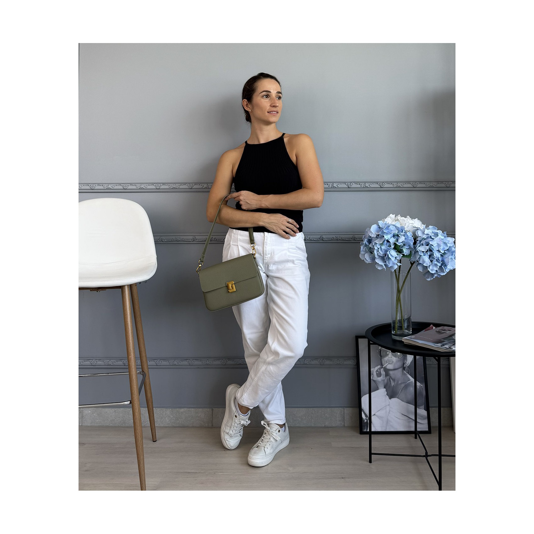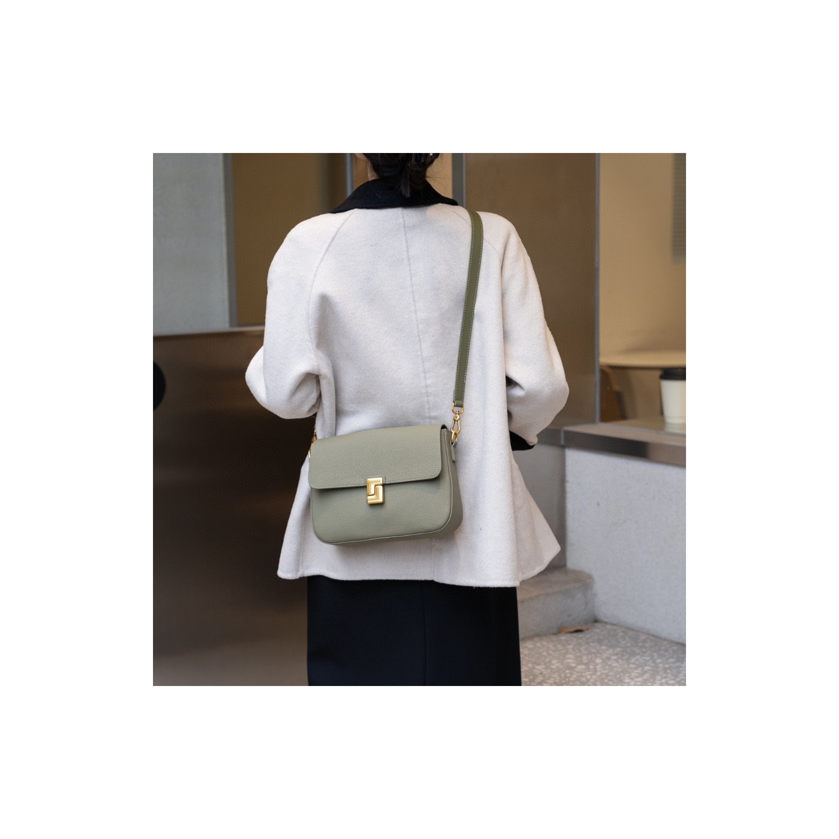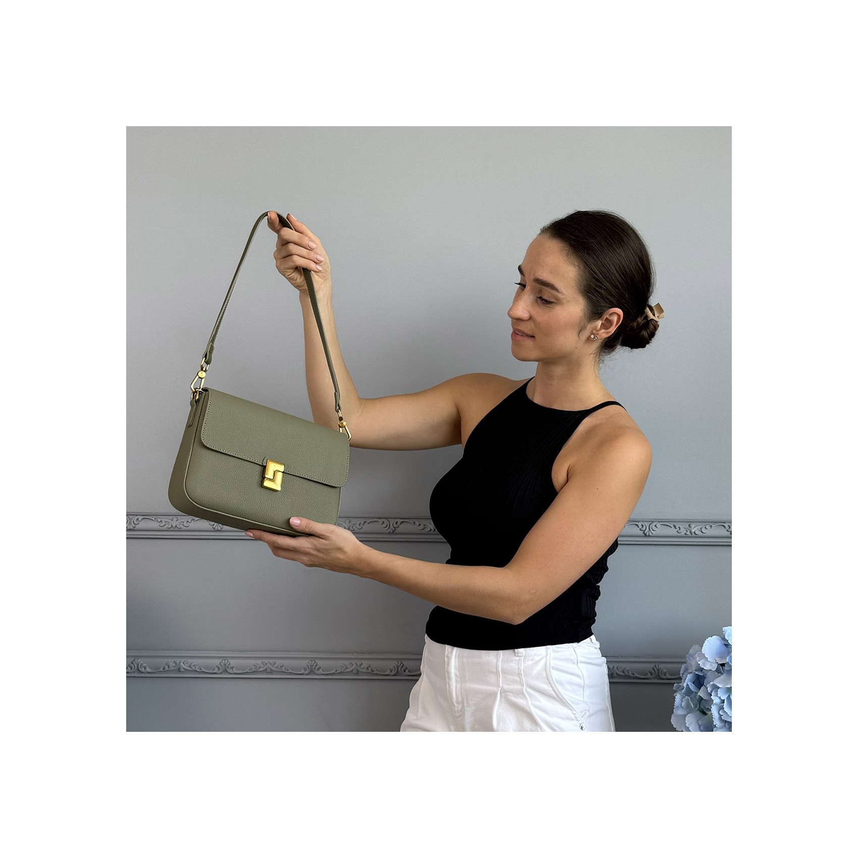 Жіноча шкіряна сумка месенджер Claire фісташкова