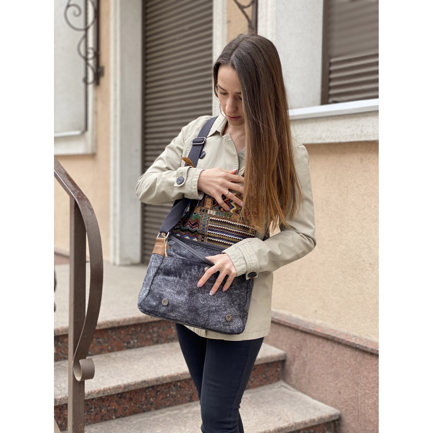 Сумка Aeon з орнаментом - уособлення стилю та практичності. Чудовий графітовий відтінок з ефектним декоративним візерунком та фальш ремінцями надають цій сумці особливий шарм. Закривається на надійні кнопки-магніти, що робить її простим і зручним. Усередині ви знайдете багато функціональних кишень для зберігання ваших речей. Надійні вставки з натуральної шкіри додають якості та довговічності. Вона готова підкреслити ваш стиль і стати вірним супутником у повсякденних справах.