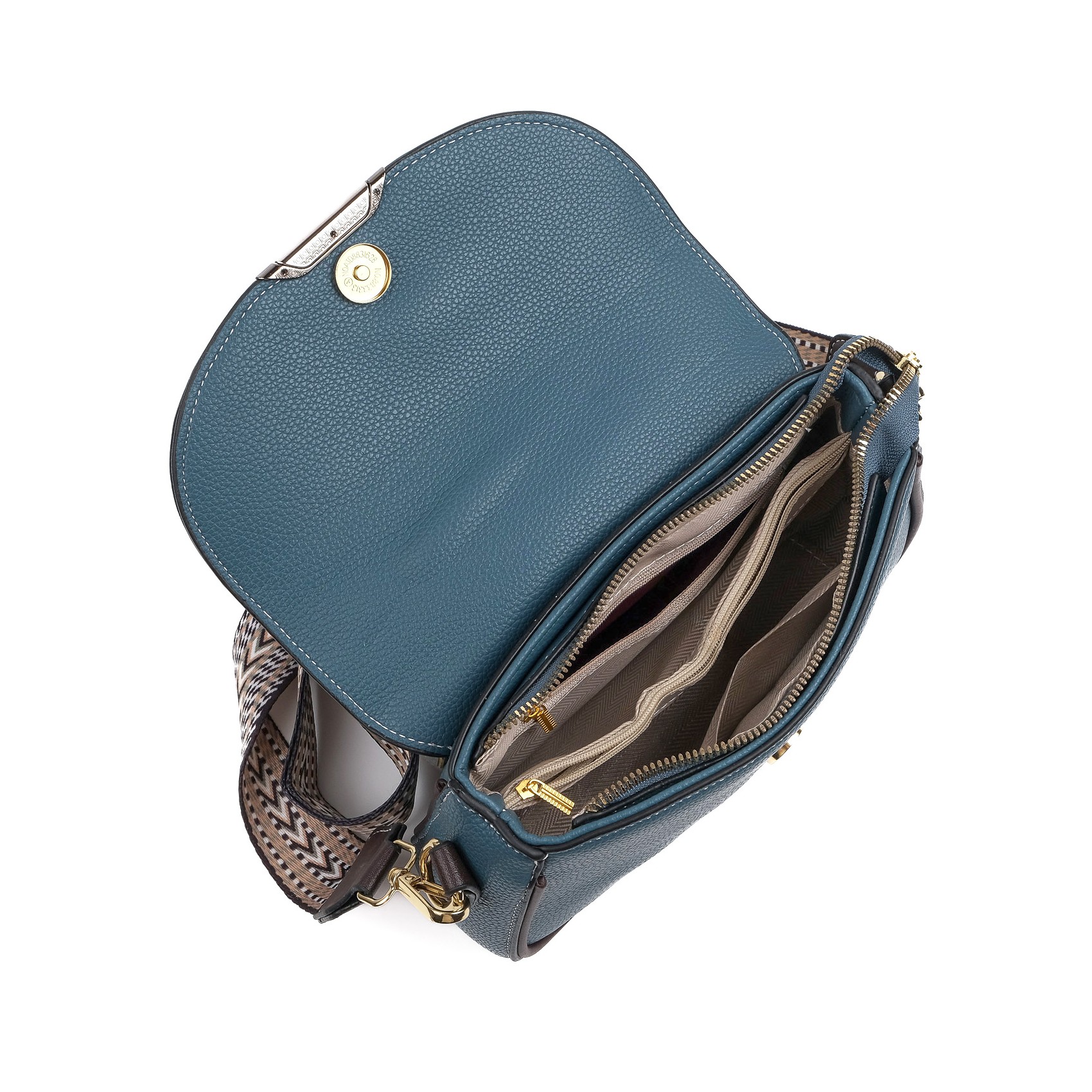Сумка-кросбоді Elodie — це елегантне поєднання стилю та функціональності в насиченому синьому кольорі. Верхня частина надійно фіксується на магнітні кнопки, а внутрішнє відділення зачиняється на блискавку, забезпечуючи збереження ваших речей. Усередині все продумано до дрібниць: містка кишеня на блискавці, перегородка-кишеня для зручної організації та окремий відсік для дрібниць.