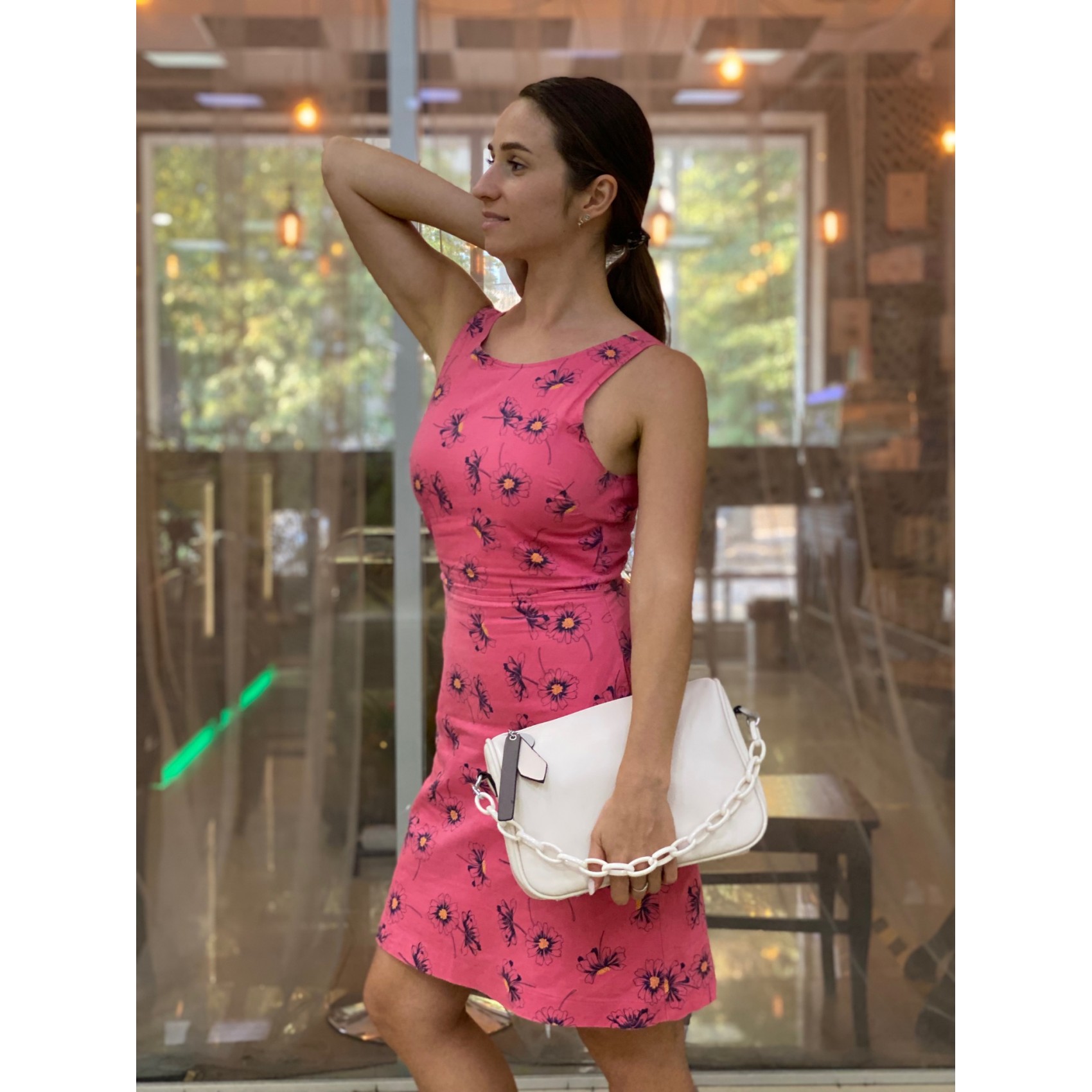 Вона відрізняється зручним головним відділенням на блискавці та функціональним внутрішнім простором з перегородкою-карманом, кишенею на блискавці і двома кишенями для дрібниць. Ззаду сумки є ще одна кишеня на блискавці для зручного зберігання речей, до яких ви можете мати швидкий доступ. Ви можете вибрати, як носити цю сумку завдяки ланцюжку з пластику та широкому знімному ременю з тканини, які додають оригінальності вашому образу.Додатково в комплекті йде довгий ремінь з екошкіри.