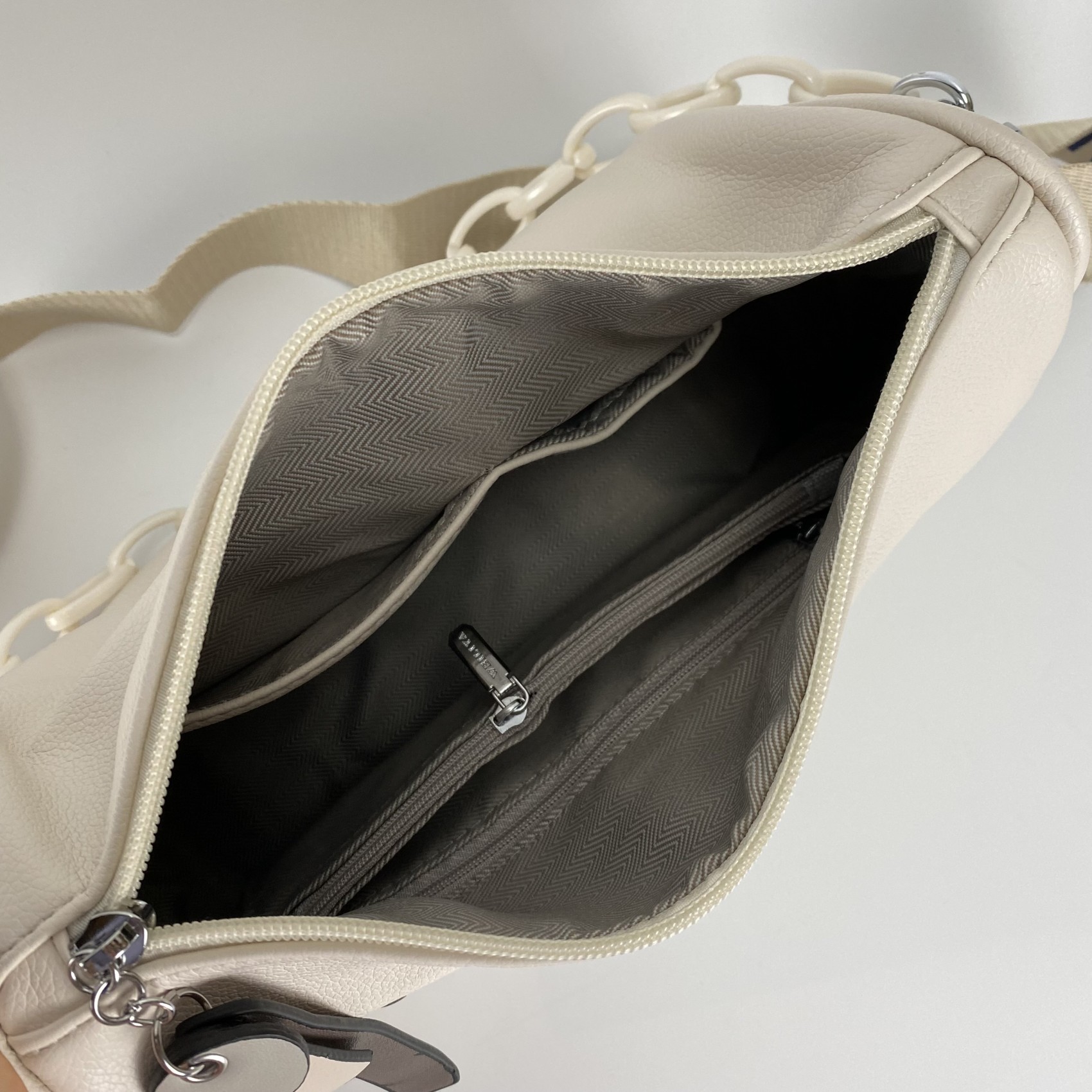 Створіть свій неповторний образ з жіночою сумкою Pamela. Ця кремова крос-боді сумка, виготовлена з екокожи, стане вашим стильним спутником.