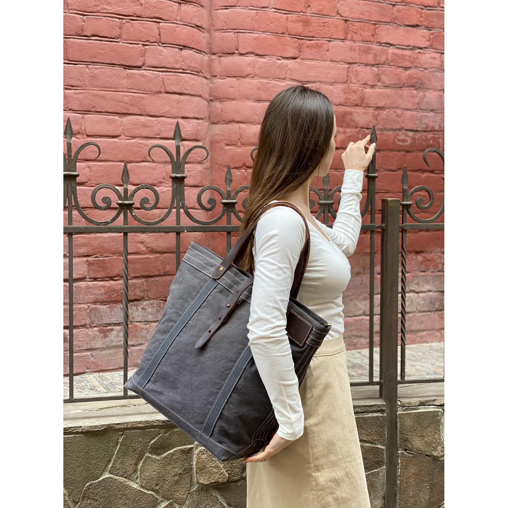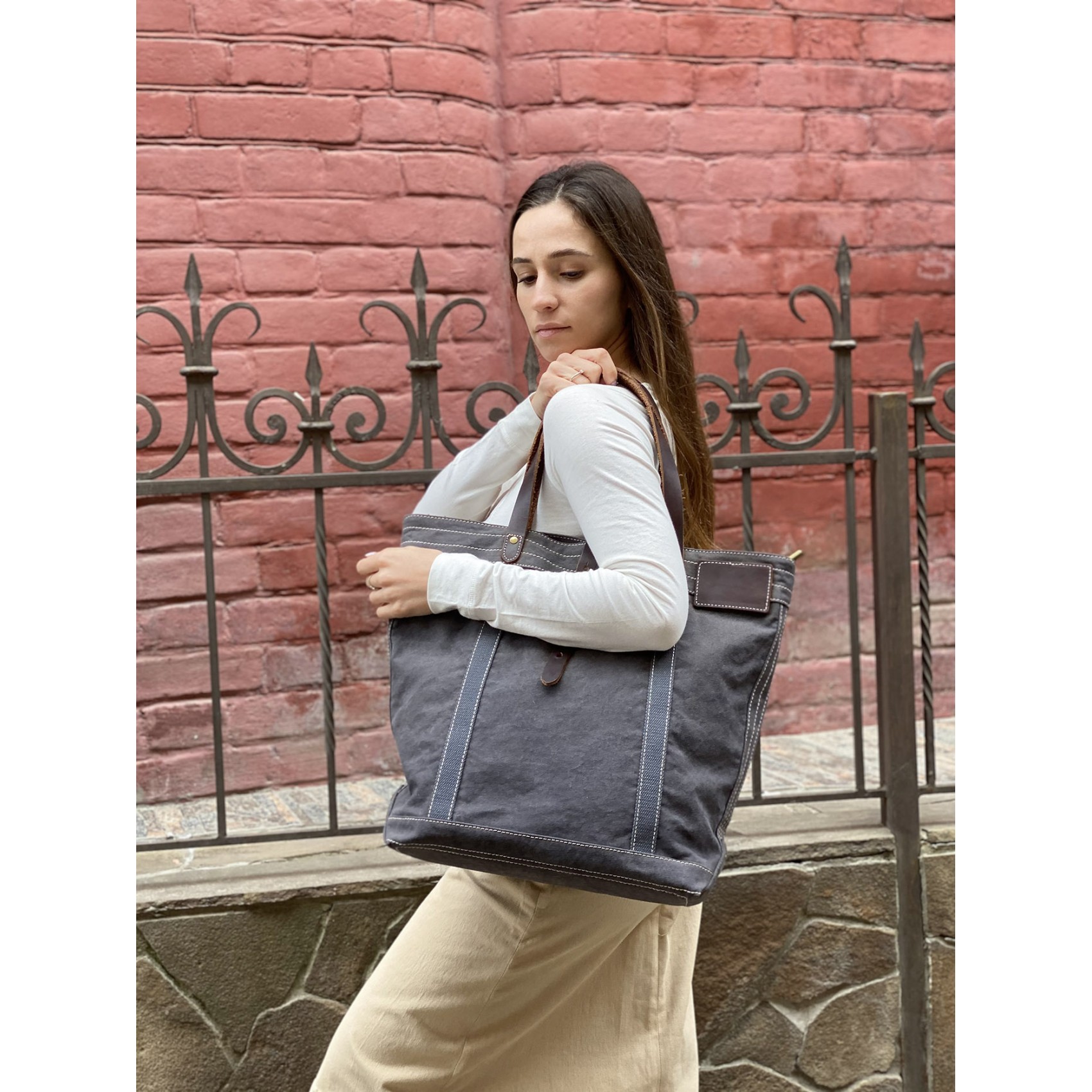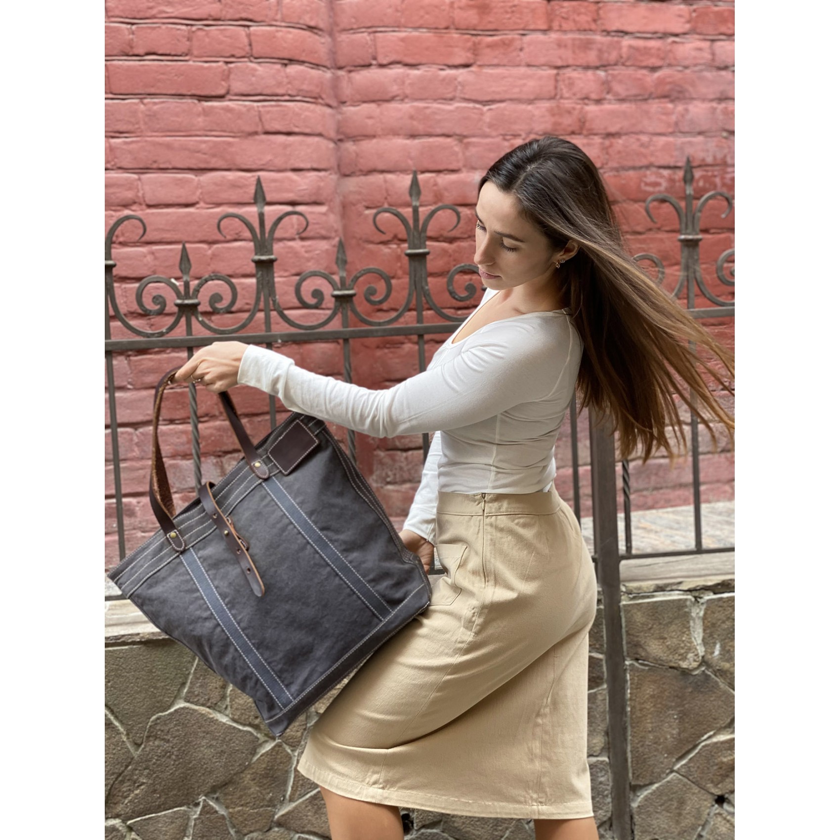 Сумка-тоут Weekend – ідеальне поєднання стильного дизайну та зручної практичності. Її графітовий колір надає особливого шарму, дозволяючи підкреслити ваш індивідуальний стиль. Містке основне відділення та внутрішні кишені забезпечать порядок у вашому повсякденному образі. А ручки з натуральної щільної вінтажної шкіри чудово доповнюють загальний вигляд і роблять перенесення зручним. Ця сумка - відмінний вибір для активних та модних жінок, які цінують комфорт та елегантність.