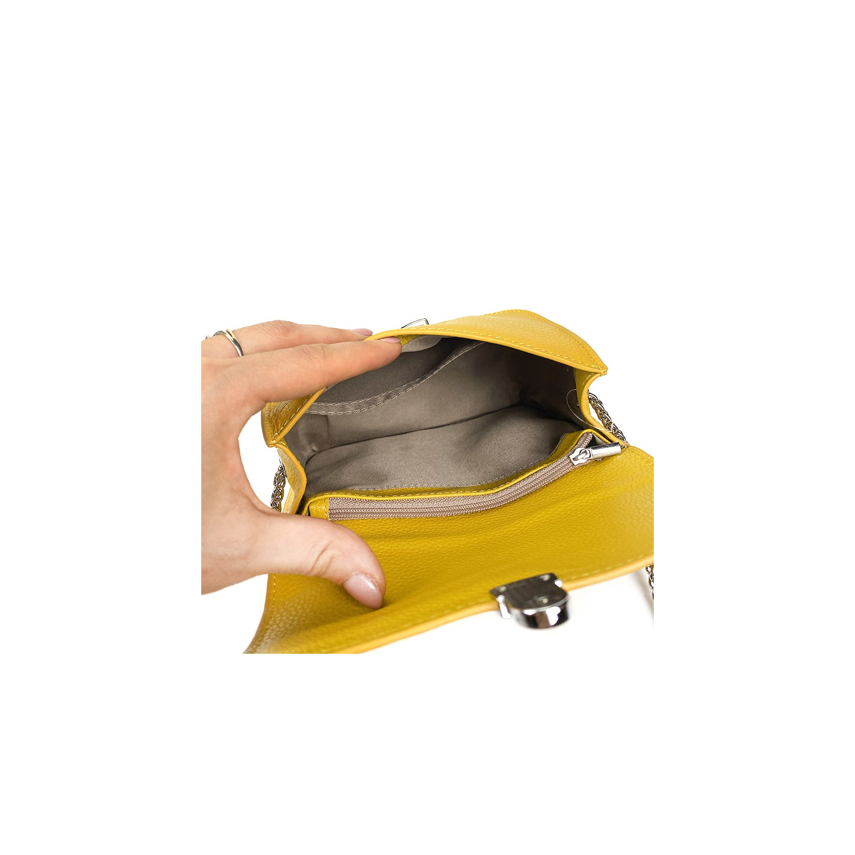 Изысканная женская кожаная сумка-клатч Erin желтого цвета восхищает своей элегантностью и неповторимым стилем. Изготовлена из высококачественной кожи, она придает ощущение гармонии и роскоши.