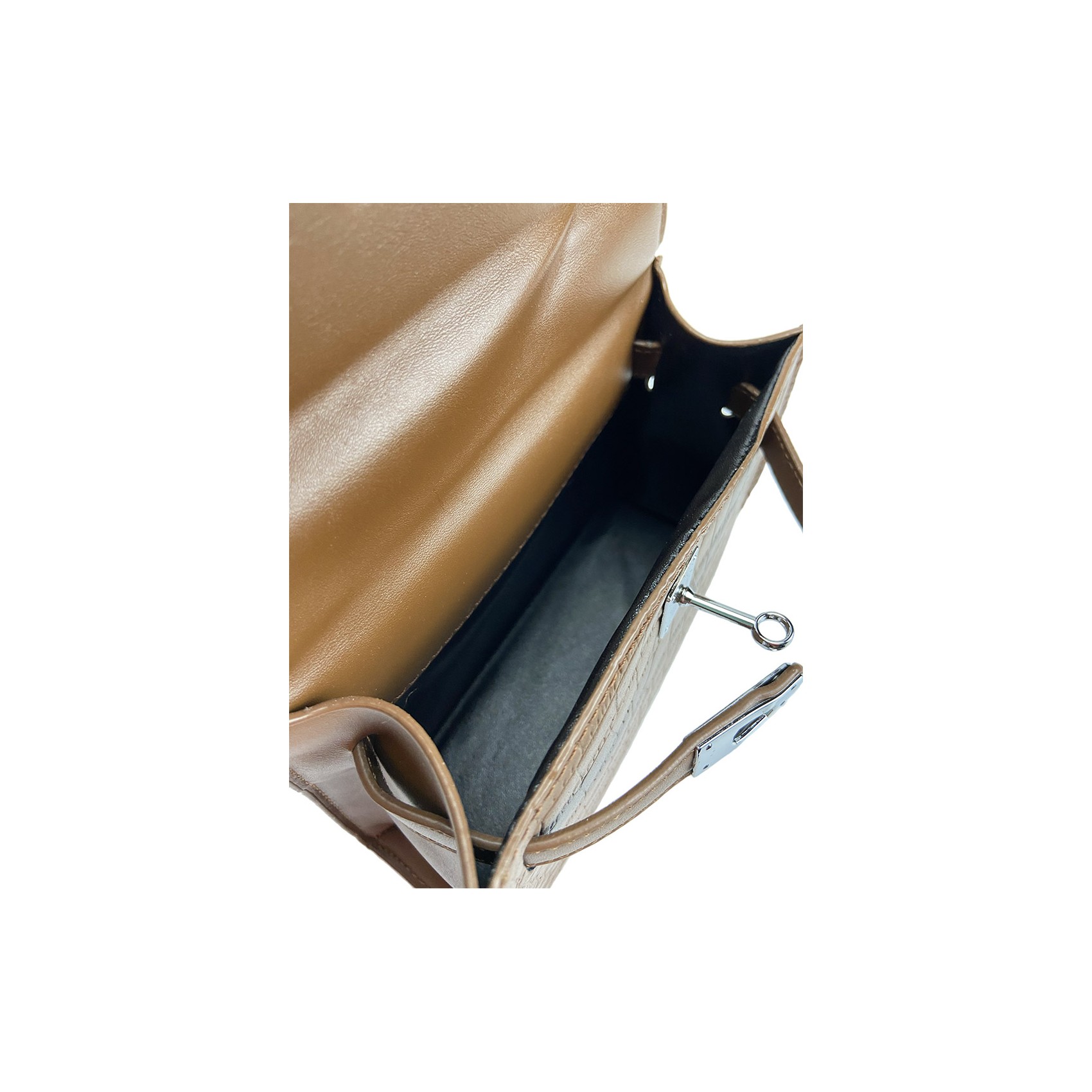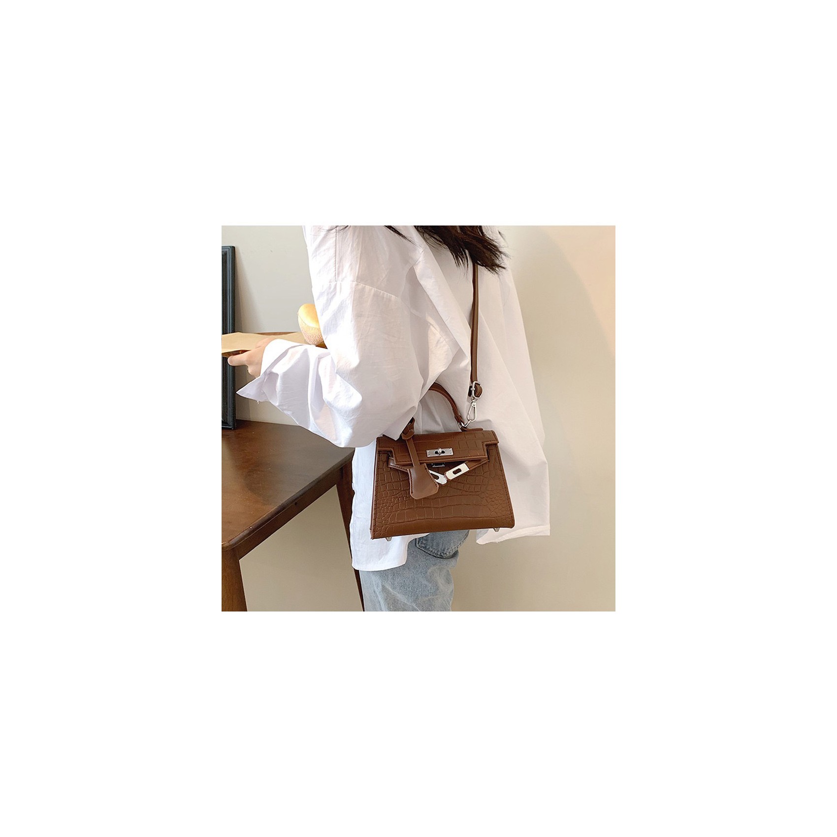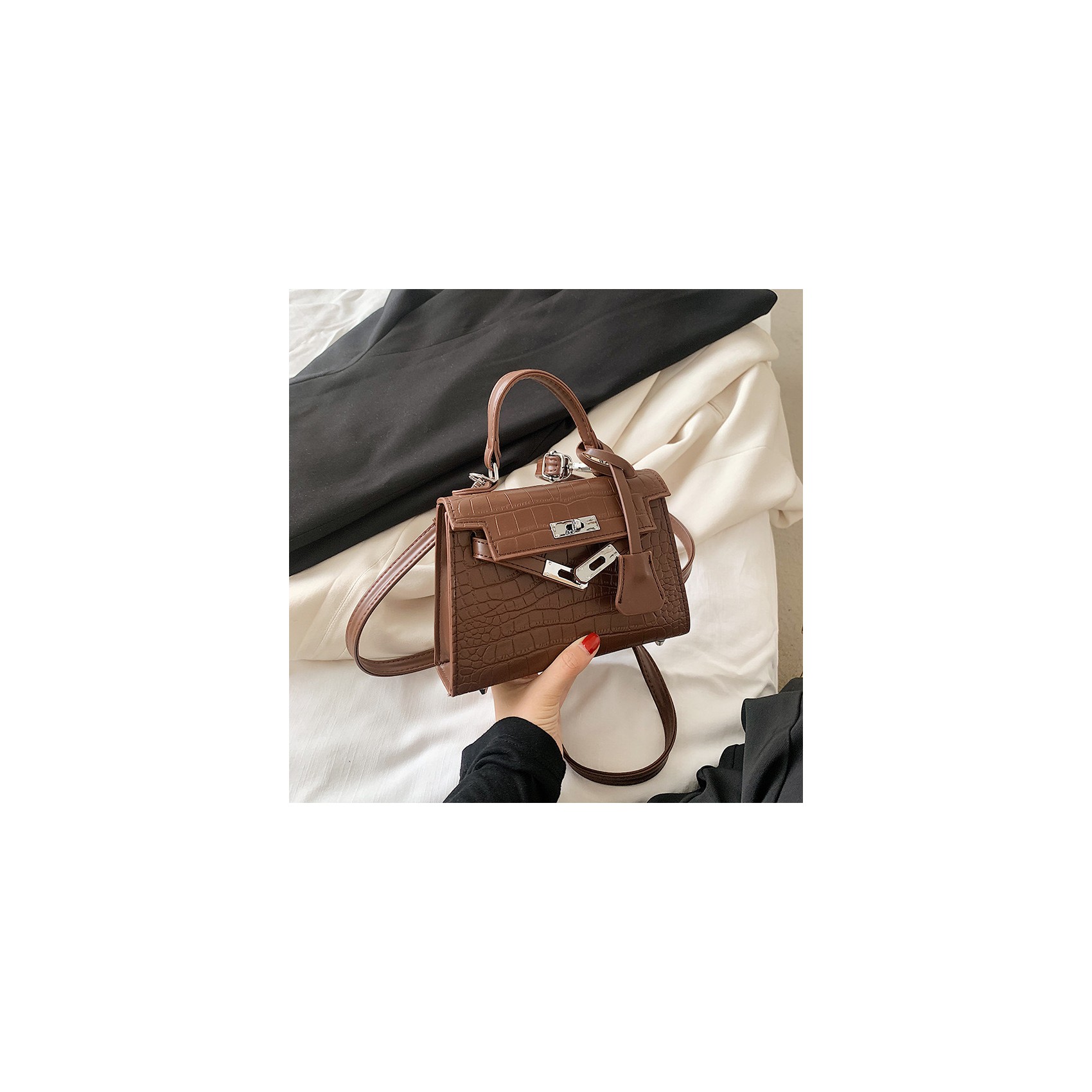 Сумка Cristal в коричневом цвете — это воплощение элегантности и минимализма. Ее центральный замок не только обеспечивает надежность, но и придает аксессуару стильный акцент. Внутреннее отделение идеально подойдет для хранения самых необходимых вещей, а съемный регулируемый ремешок позволит вам носить сумку так, как вам удобно — через плечо или в руках, используя изящную верхнюю ручку. Коричневый цвет добавляет универсальности, делая сумку Cristal идеальным выбором как для повседневного образа, так и для вечернего выхода.