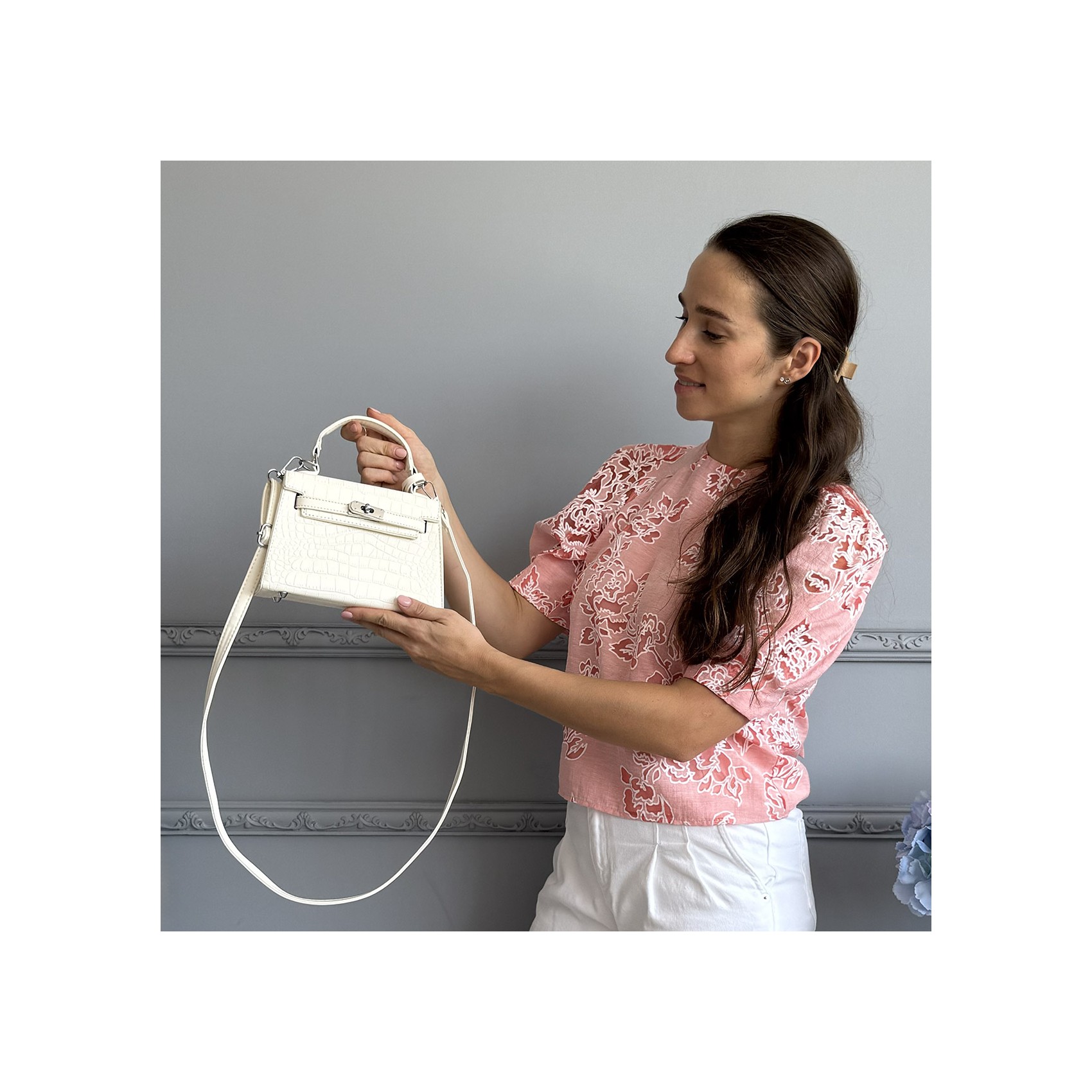 Сумка Cristal в молочном цвете — это воплощение элегантности и минимализма. Ее центральный замок не только обеспечивает надежность, но и придает аксессуару стильный акцент. Внутреннее отделение идеально подойдет для хранения самых необходимых вещей, а съемный регулируемый ремешок позволит вам носить сумку так, как вам удобно — через плечо или в руках, используя изящную верхнюю ручку. Кремовый цвет добавляет универсальности, делая сумку Cristal идеальным выбором как для повседневного образа, так и для вечернего выхода.