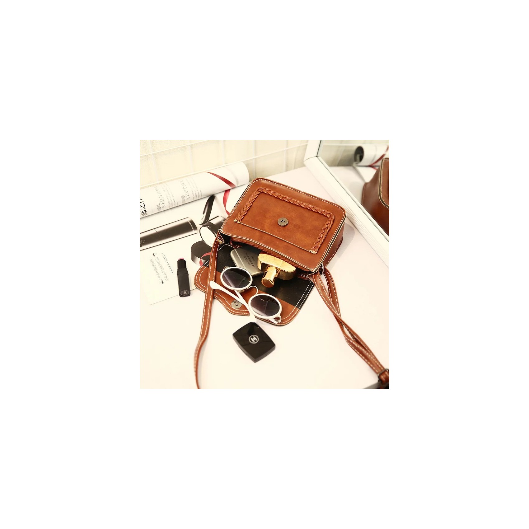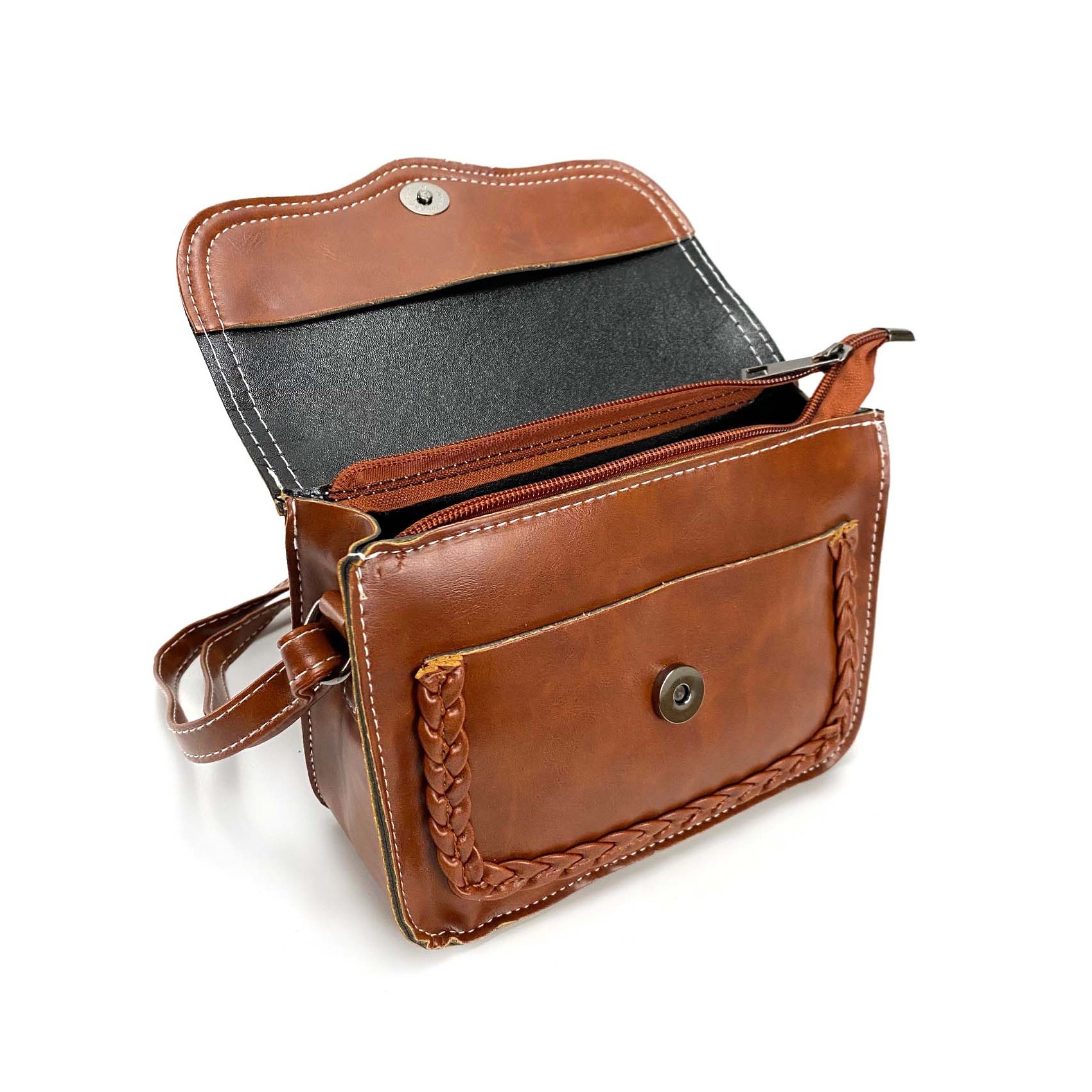 Откидной верх с секретной кнопкой-магнитом защитит содержимое сумки, а внутренняя застежка на молнии обеспечит дополнительную безопасность. Внутри вы найдете просторное основное отделение, а спереди есть небольшой карман для удобного размещения мелочей.
