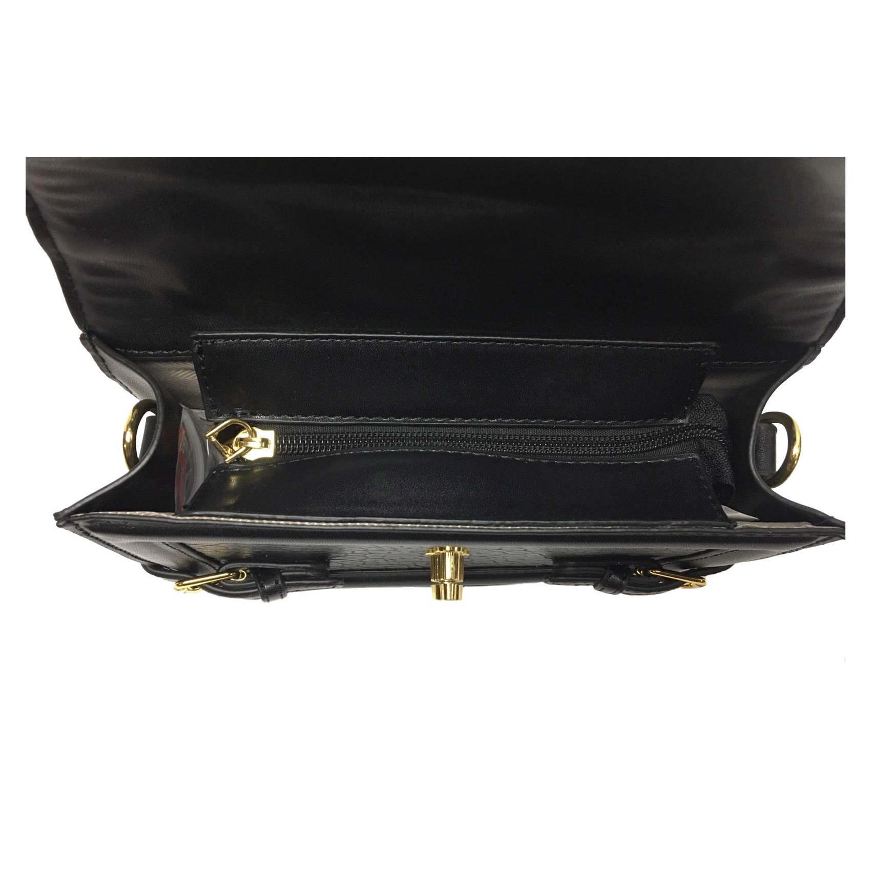 Женская сумка кросс-боди Krystal в изысканном черном цвете — это идеальное сочетание элегантности и функциональности. Ее центральный замок обеспечивает надежную защиту ваших вещей, а одно просторное отделение внутри позволяет легко разместить все необходимые предметы. Съемный регулируемый ремешок дарит вам свободу выбора: носите сумку на плече или в руках, благодаря удобной верхней ручке. Декоративные застежки по бокам добавляют изюминку, подчеркивая утонченный дизайн сумки Krystal. Этот аксессуар станет идеальным дополнением как к повседневному, так и к более изысканному образу.
