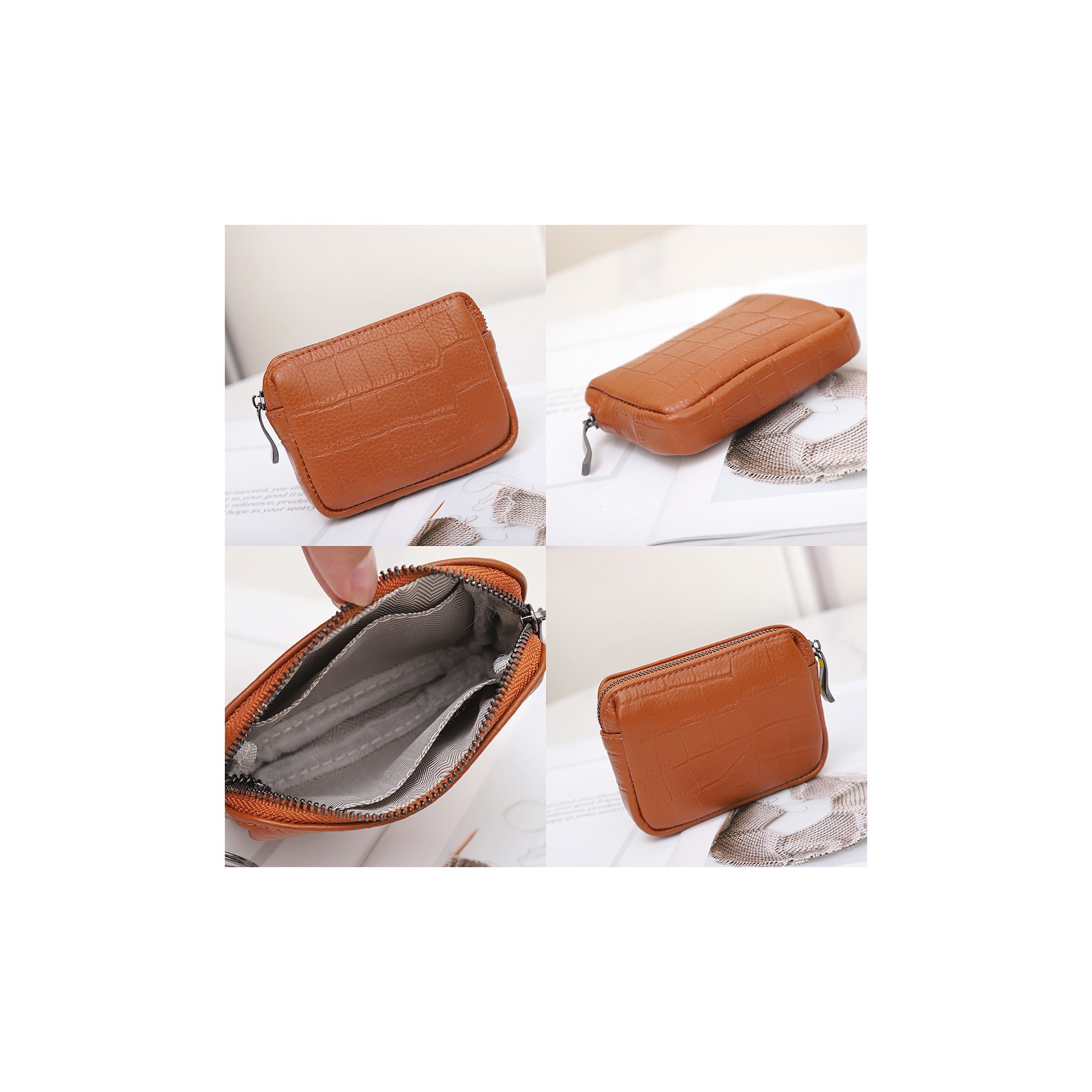 Стильный и компактный женский кошелек из натуральной кожи – элегантное решение для хранения мелочей. Закрывается на надежную молнию, внутри два удобных кармана для купюр и карт. Дополнен изящным колечком-брелоком на цепочке. Классический коричневый цвет делает аксессуар универсальным и подходящим к любому образу.