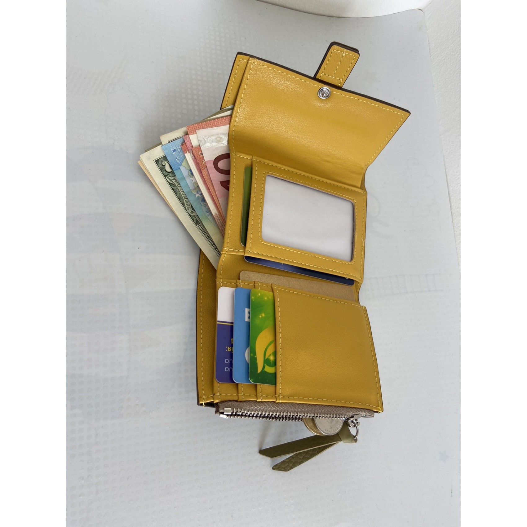 Закрывается на кнопку, обеспечивая безопасность хранения ваших ценностей. Его фисташковый внешний вид придает нотку стильности, а внутреннее желтое отделение создает приятный контраст и добавляет утонченности. В кошельке имеется отделение для банкнот, позволяющее организовать ваши деньги. Отделение для монет на молнии обеспечивает сохранность мелочи и предотвращает ее потерю. Дополнительно имеется 5 отделений для карточек, чтобы вы могли удобно разместить свои пластиковые карты, а прозрачное отделение для ID обеспечивает легкий доступ к вашему удостоверению личности.