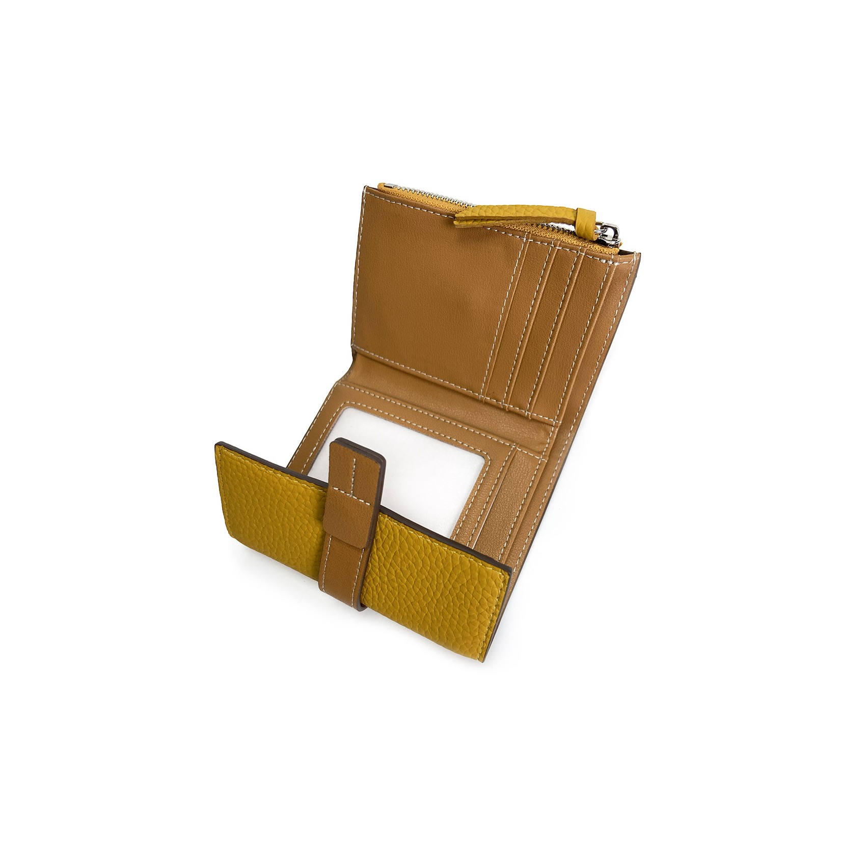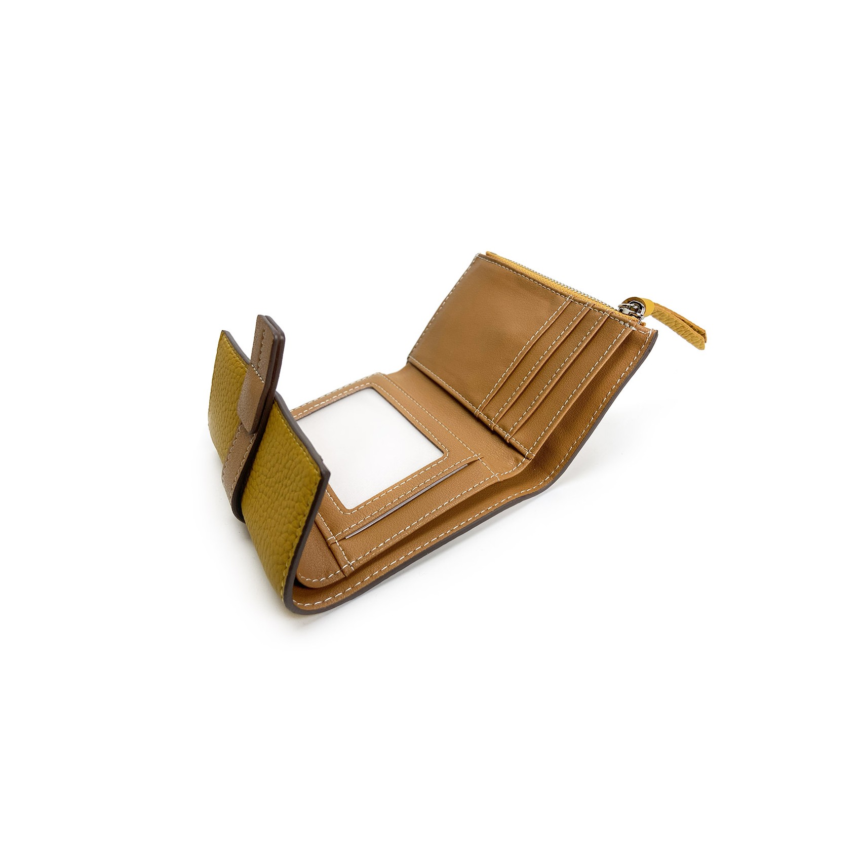 Изысканный и практичный женский кожаный кошелек Rachel в горчичном цвете станет прекрасным дополнением вашего стиля. Выполненный из мягкой кожи, он приятен на ощупь и воплощает элегантность и качество.