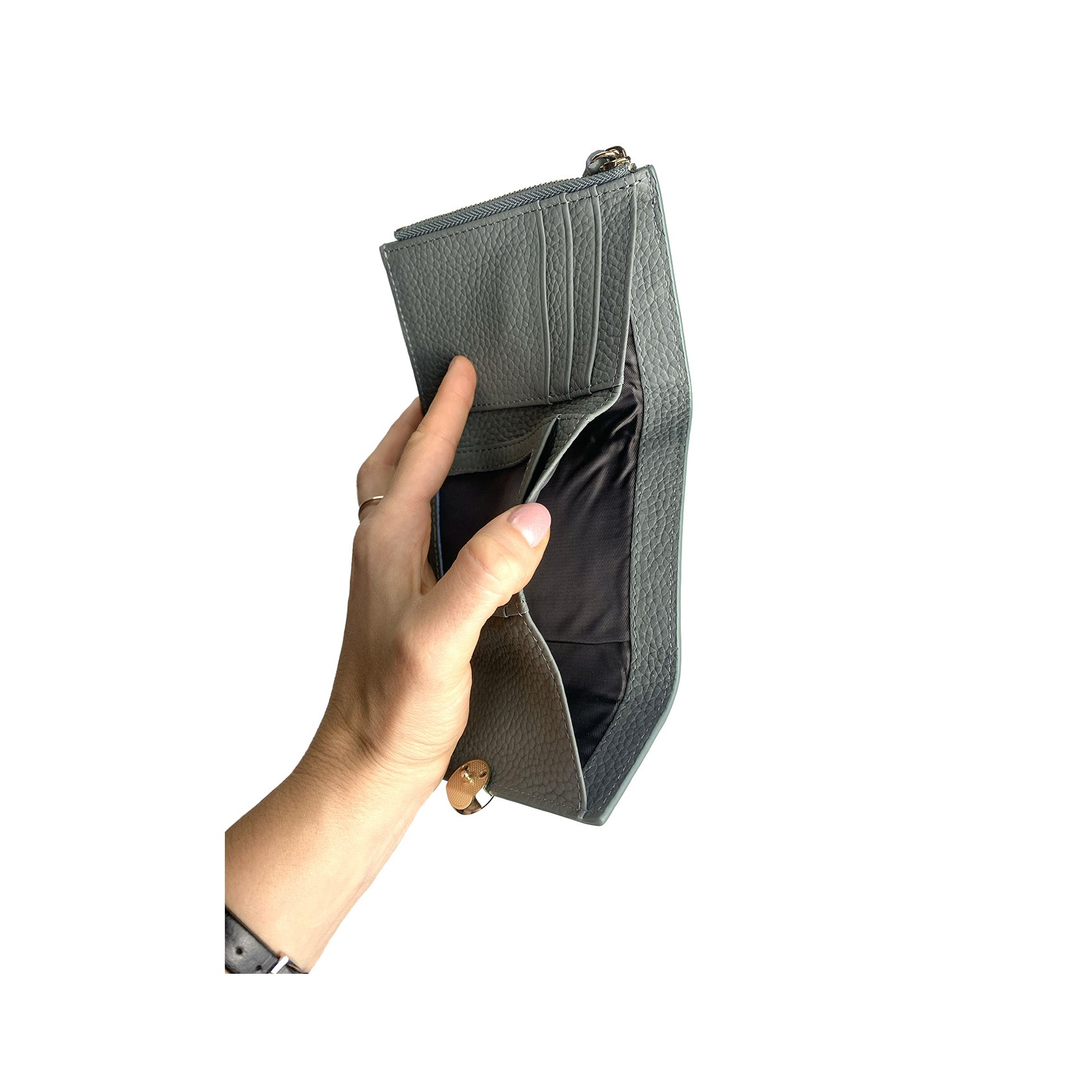 Неотразимый дизайн и функциональность объединены в женском кожаном кошельке Whitney в серо-зеленом цвете, чтобы подчеркнуть вашу неповторимость и элегантность.