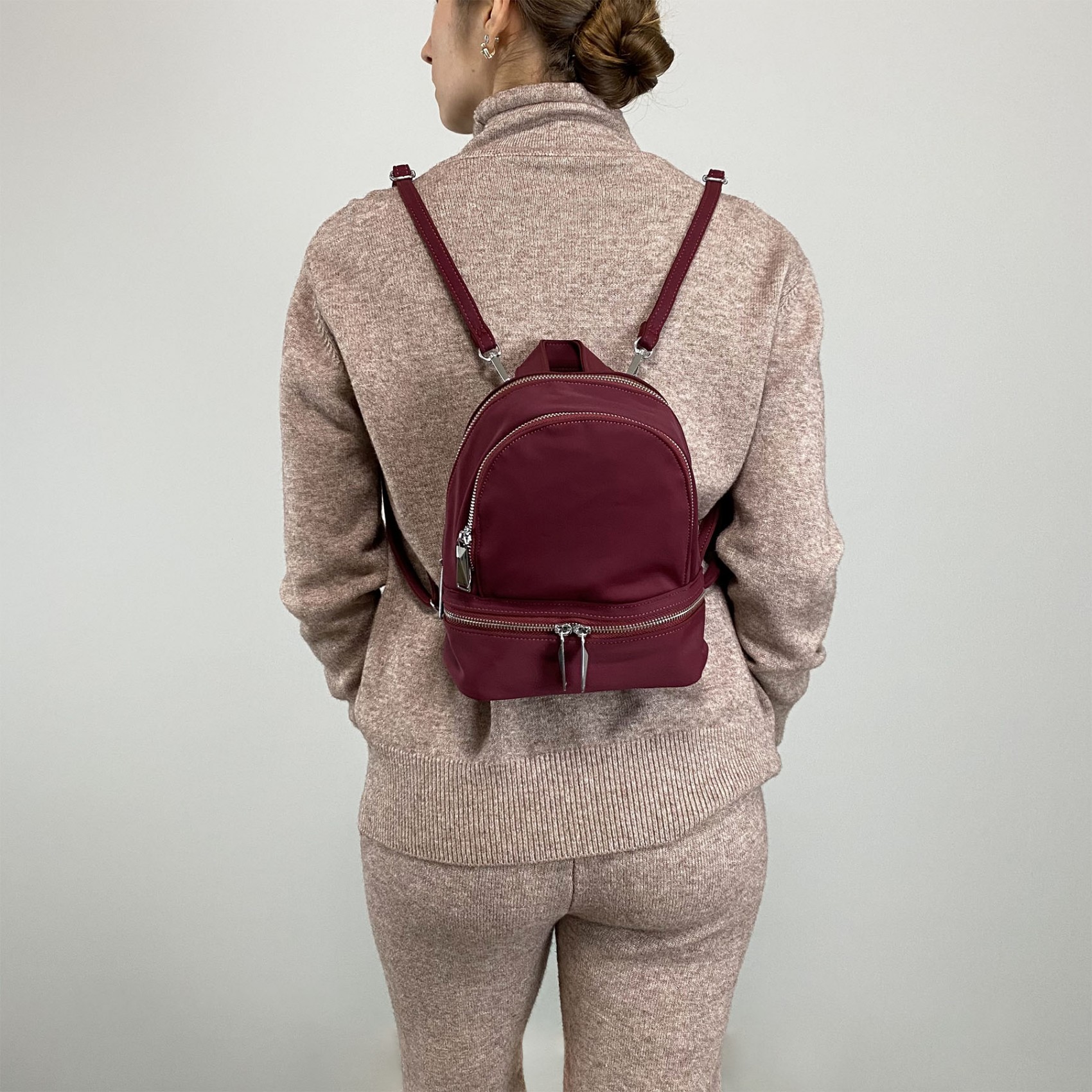 Женский рюкзак Eva восхищает своим бордовым оттенком, который придаёт ему роскошный и изысканный вид. Украшение в виде горизонтальной молнии с двумя бегунками на нижней части рюкзака добавляет особый шарм и оригинальность.