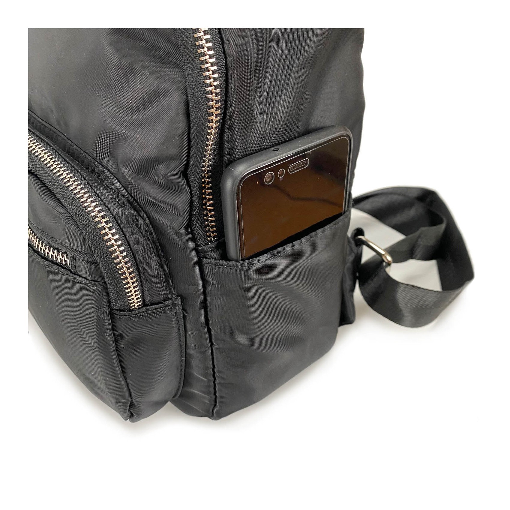 Рюкзак имеет два кармана на молнии спереди и просторное основное отделение внутри, включая карман на молнии и два больших кармана для удобной организации ваших вещей. Также имеются боковые карманы и карман на молнии с обратной стороны.