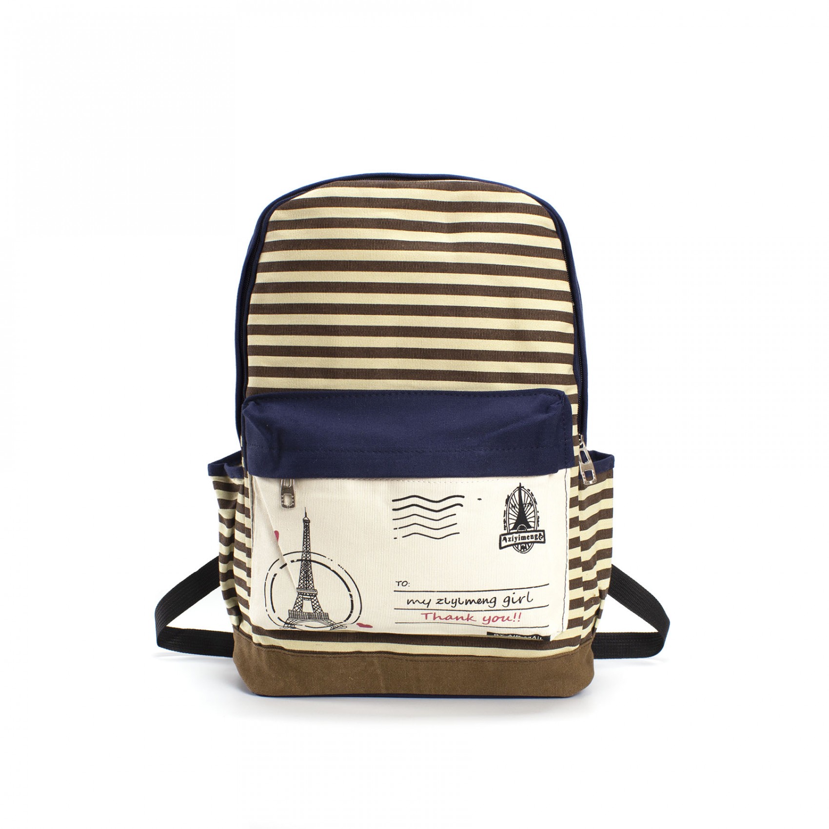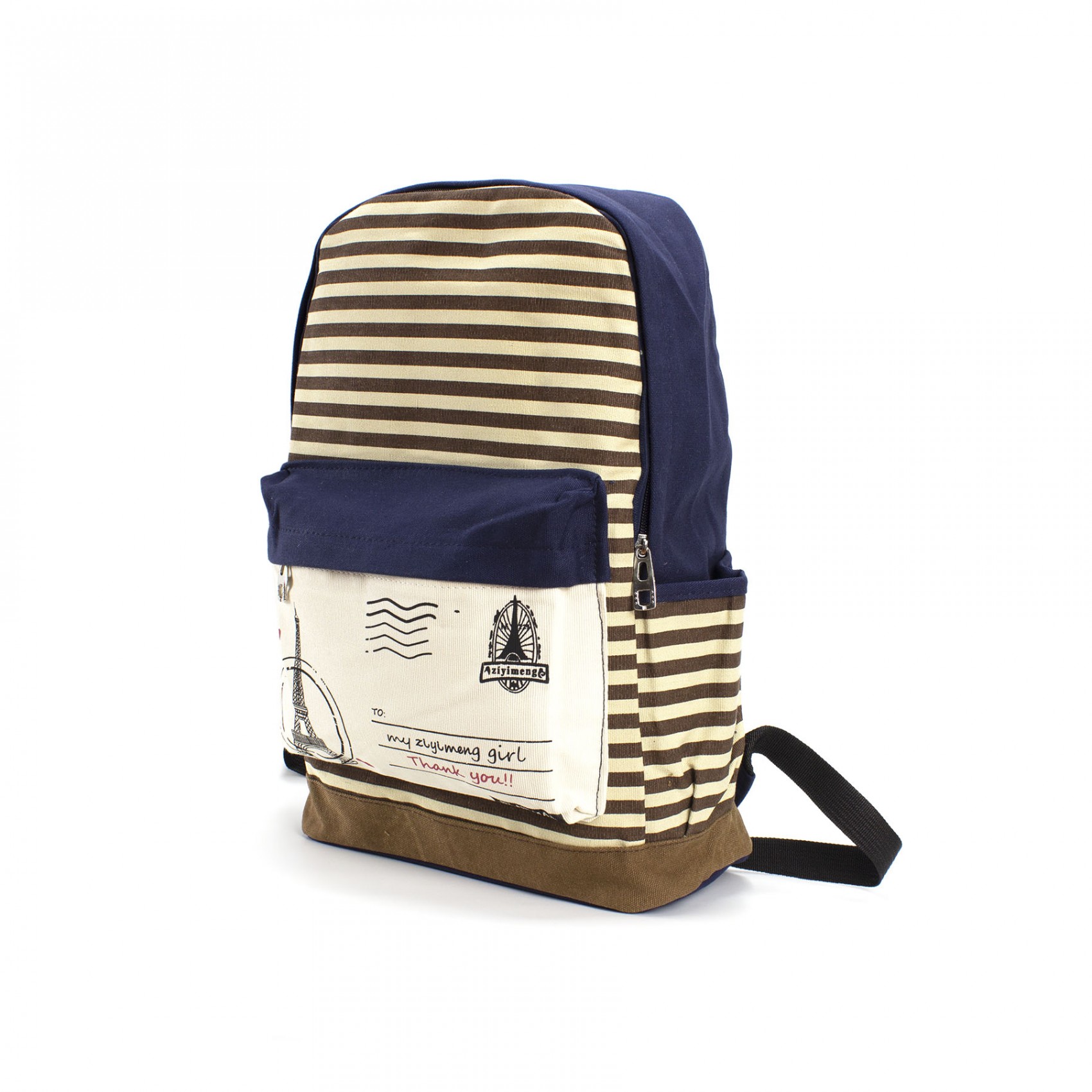 Рюкзак Paris синего цвета с коричневыми полосками — идеальное сочетание функциональности и стиля.