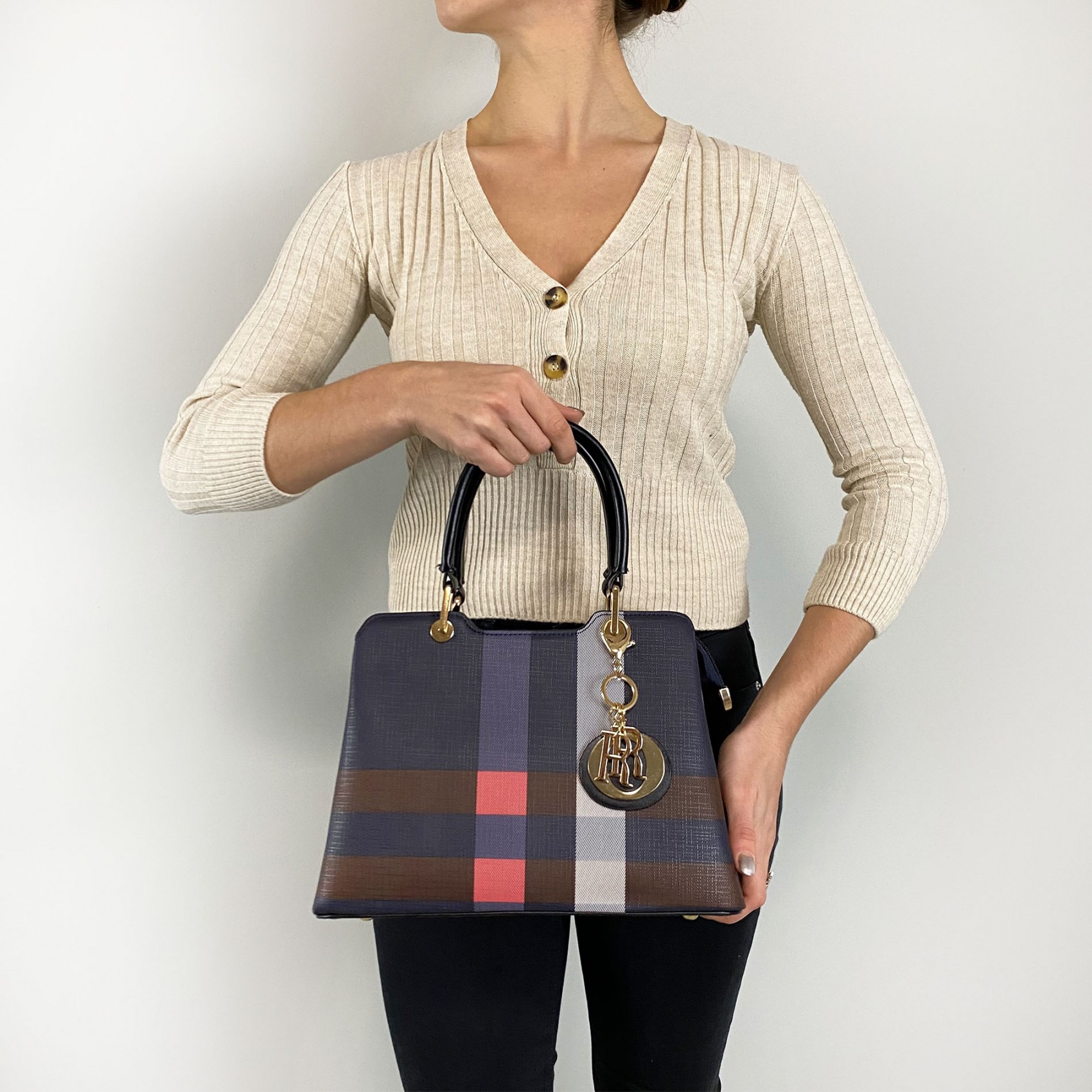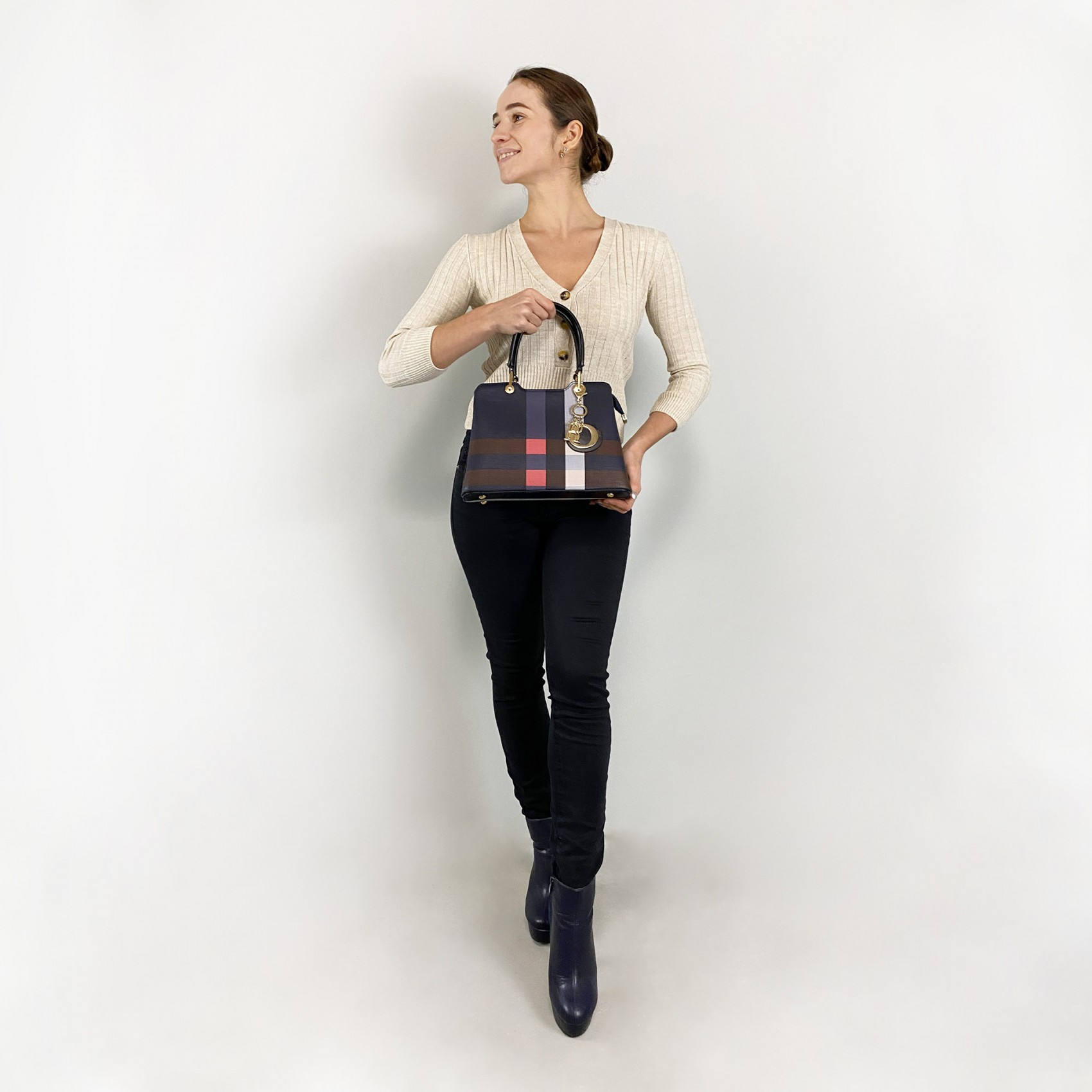 Выберите один из трех вариантов ручек — бежевый, красный или черный — чтобы подчеркнуть свой индивидуальный стиль. Обратите внимание, что рисунок полосок на сумках может незначительно отличаться, придавая каждой сумке уникальность.