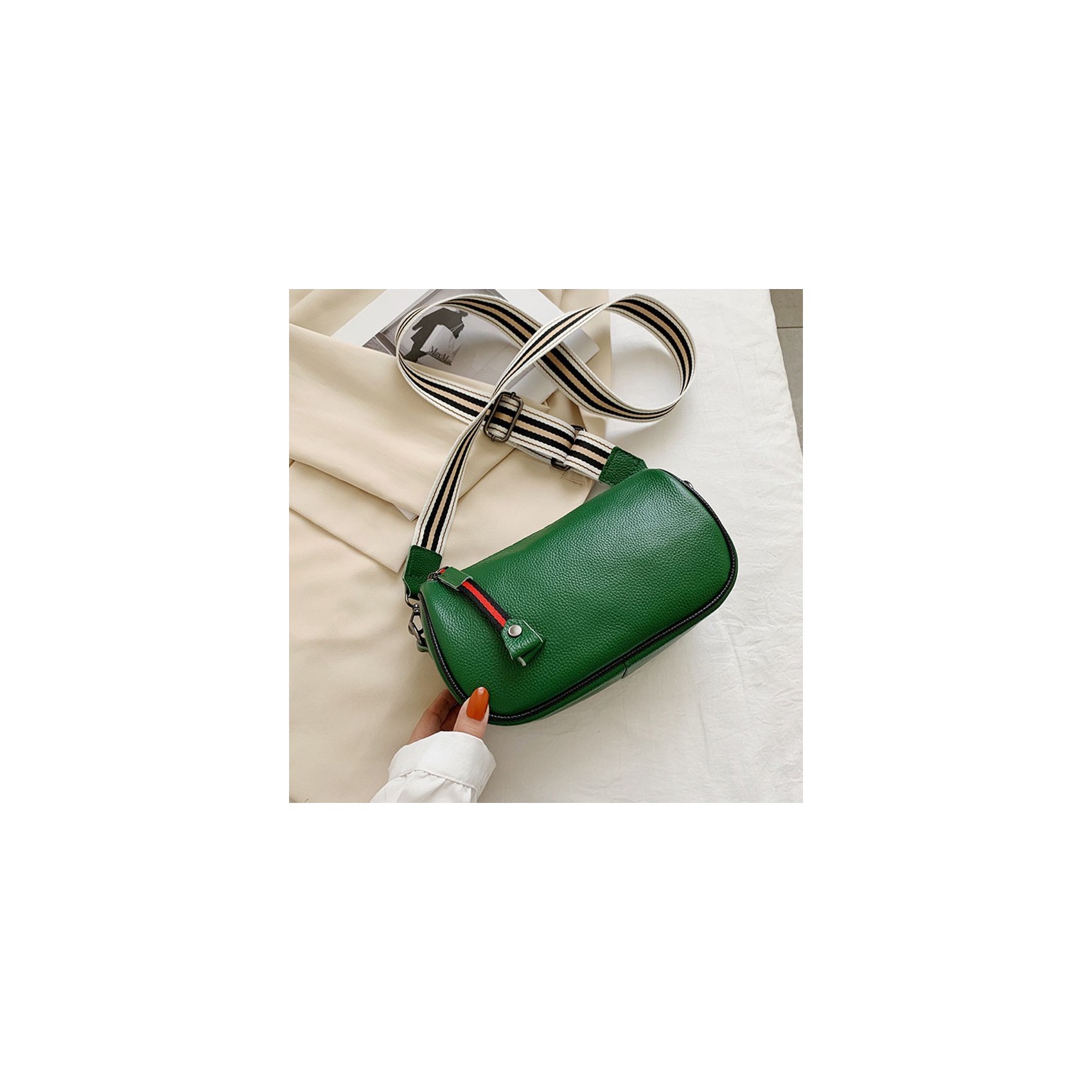 Погрузитесь в мир утонченной элегантности с зеленой женской кожаной сумкой "Alice". Оттенок зеленого придает ей нежность и свежесть, а стильный дизайн привлекает восхищенные взгляды. Внутри сумки удобно расположены карманы для хранения ценных вещей и мелочей, а съемный широкий плечевой ремешок добавляет удобства при носке. Будьте на высоте моды и функциональности с сумкой "Alice"