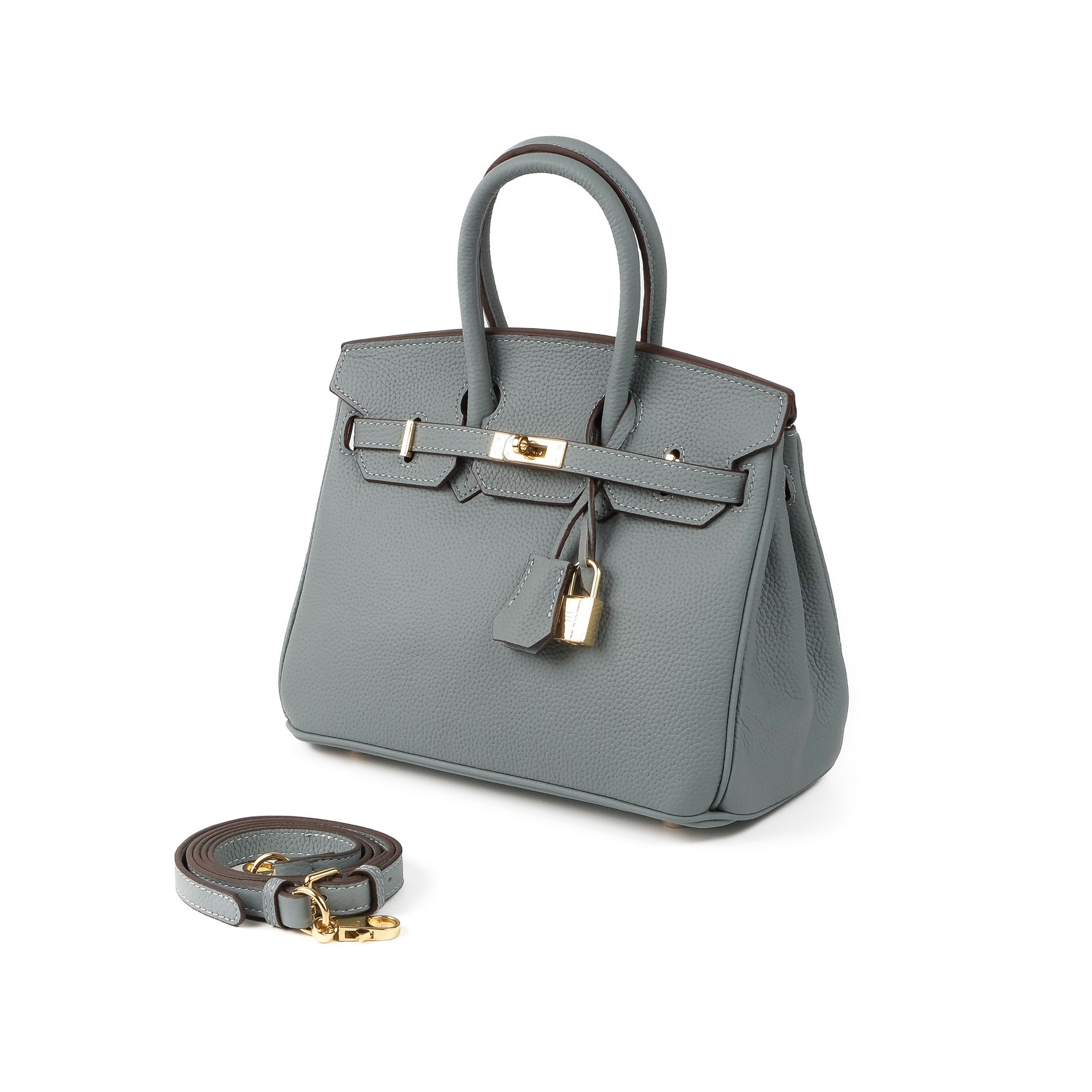 Женская кожаная сумка Brigitte 25 серо-голубая