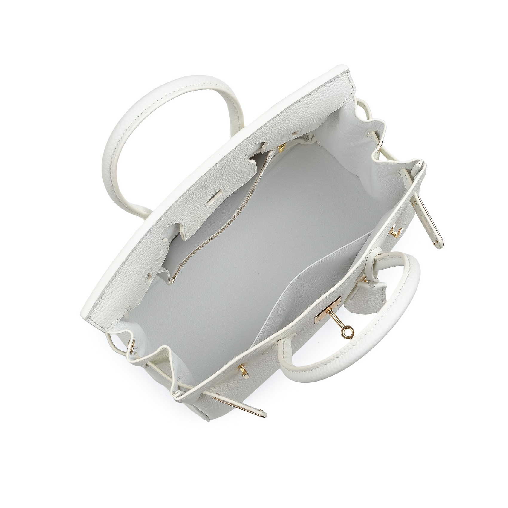 Элегантная женская кожаная сумка Brigitte в роскошном белом цвете — это сочетание стиля и практичности, которое подчеркивает ваш безупречный вкус. Изготовленная из высококачественной натуральной кожи, сумка отличается своей прочностью и элегантным внешним видом. Удобное закрытие на замочек обеспечивает безопасность ваших вещей, а продуманный внутренний дизайн включает карман на молнии и отдельный карман для мелочей, чтобы все необходимое было всегда под рукой.