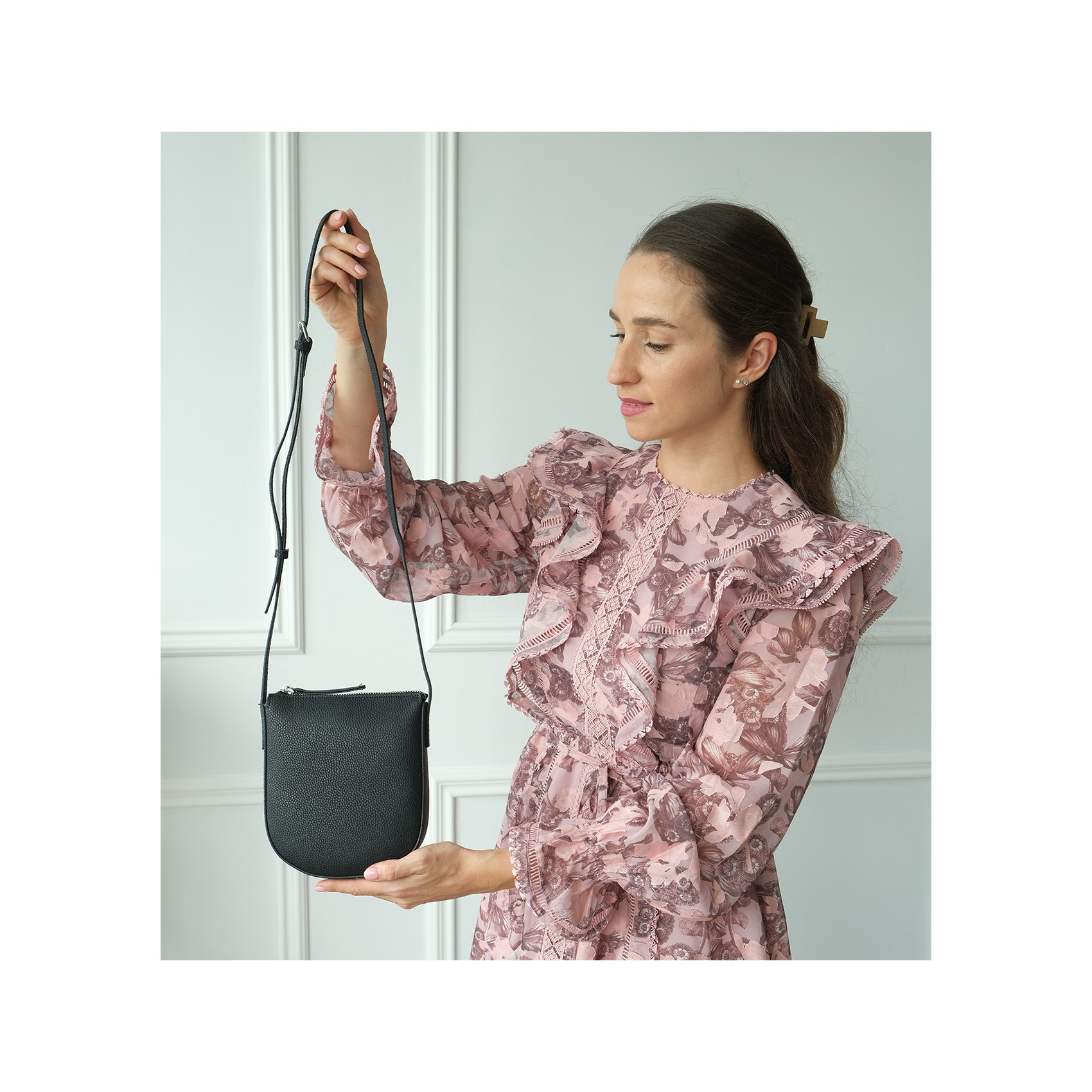 Эта элегантная кожаная сумка кросс-боди Cheryl — воплощение утончённого стиля и продуманного комфорта. Её нежный чорный оттенок придаёт образу мягкость и свежесть, легко сочетаясь с как повседневной, так и более нарядной одеждой. Натуральная кожа подчёркивает статус и безупречный вкус, а благодаря регулируемому плечевому ремешку сумку можно носить так, как удобно именно вам.