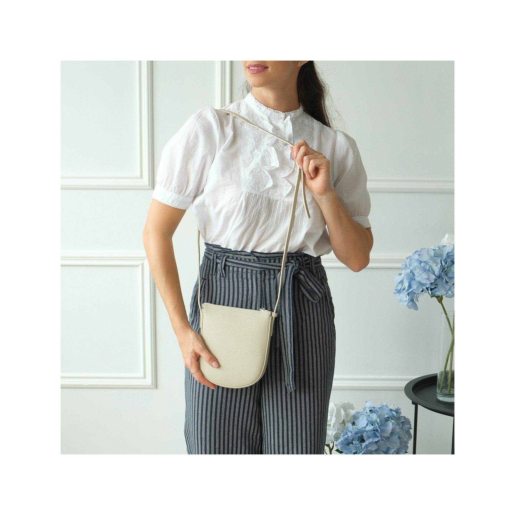 Эта элегантная кожаная сумка кросс-боди Cheryl — воплощение утончённого стиля и продуманного комфорта. Её нежный молочный оттенок придаёт образу мягкость и свежесть, легко сочетаясь с как повседневной, так и более нарядной одеждой. Натуральная кожа подчёркивает статус и безупречный вкус, а благодаря регулируемому плечевому ремешку сумку можно носить так, как удобно именно вам.