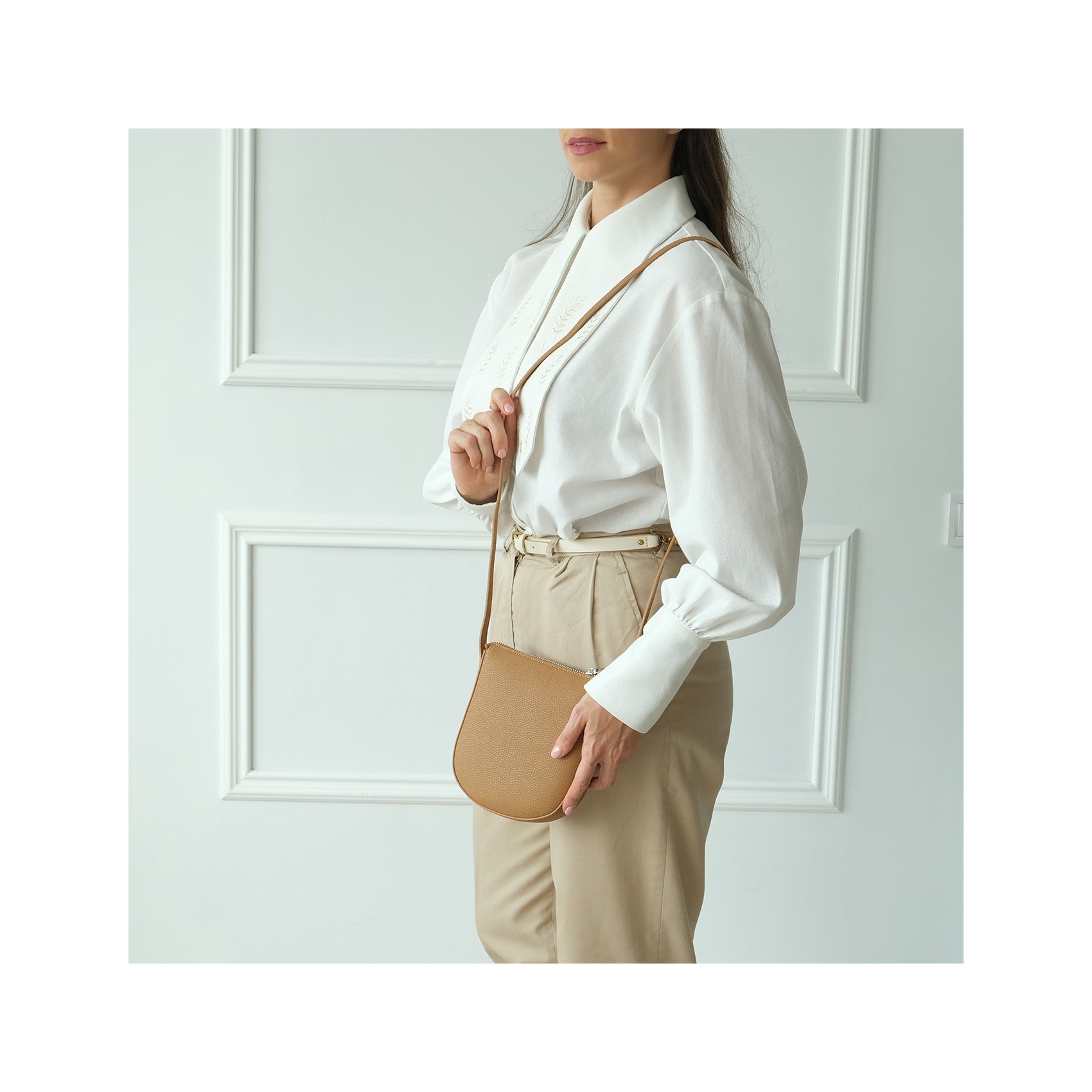 Эта элегантная кожаная сумка кросс-боди Cheryl — воплощение утончённого стиля и продуманного комфорта. Её нежный светло-коричневый оттенок придаёт образу мягкость и свежесть, легко сочетаясь с как повседневной, так и более нарядной одеждой. Натуральная кожа подчёркивает статус и безупречный вкус, а благодаря регулируемому плечевому ремешку сумку можно носить так, как удобно именно вам.
