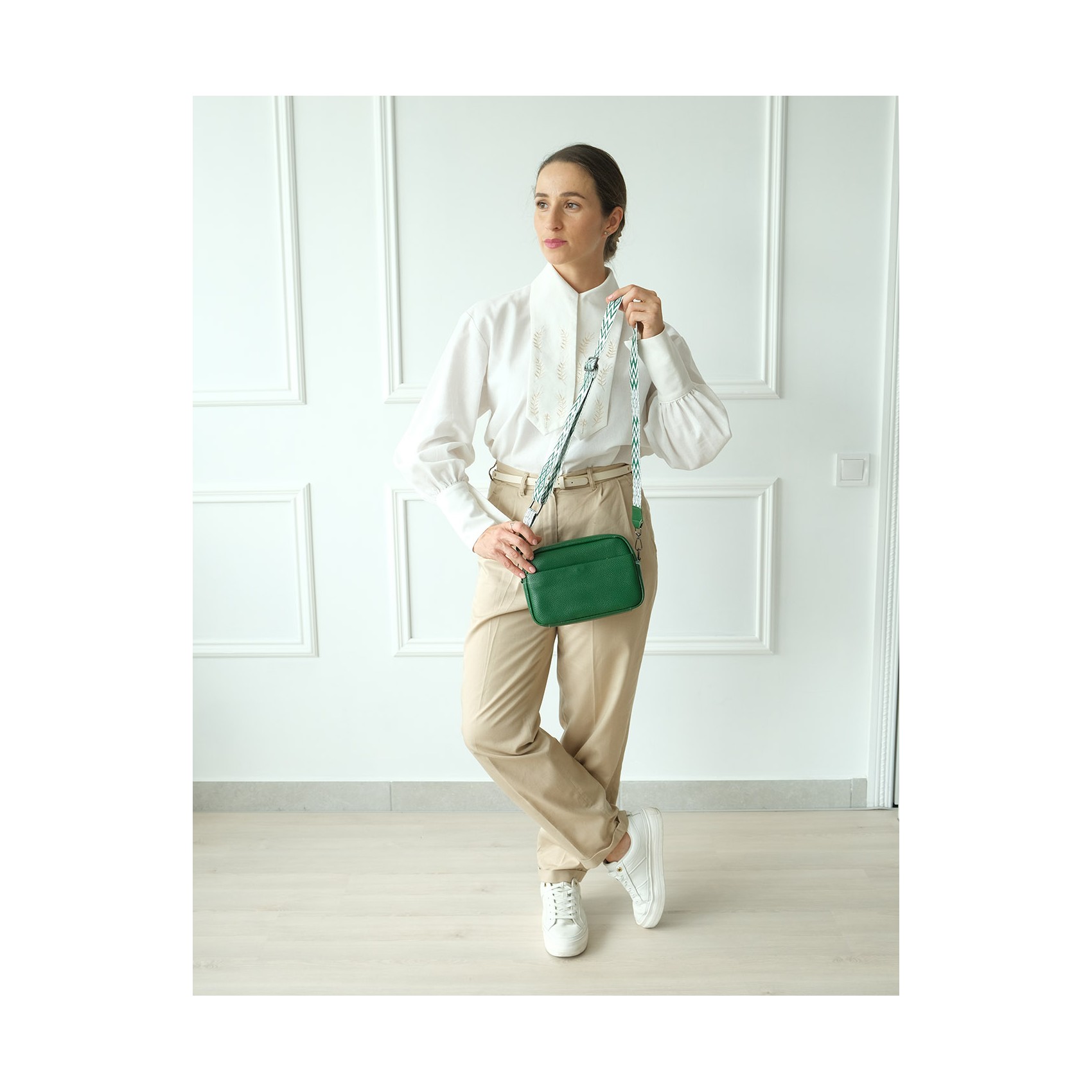 Сумка кросс-боди Marilyn в зеленом цвете — это воплощение элегантности и функциональности. Изготовленная из высококачественной кожи, она станет стильным акцентом в вашем образе. Застежка на молнию надежно защищает ваши вещи, а внутренние карманы помогают организовать все необходимое, от мелочей до важных документов. Передний карман на кнопке добавляет удобства, позволяя легко достать то, что нужно, а задний карман на молнии — идеальное место для безопасного хранения ценных предметов. Съемный регулируемый плечевой ремешок позволяет носить сумку так, как вам удобно. Зеленый цвет придает сумке яркость и свежесть, делая ее незаменимой деталью вашего гардероба.