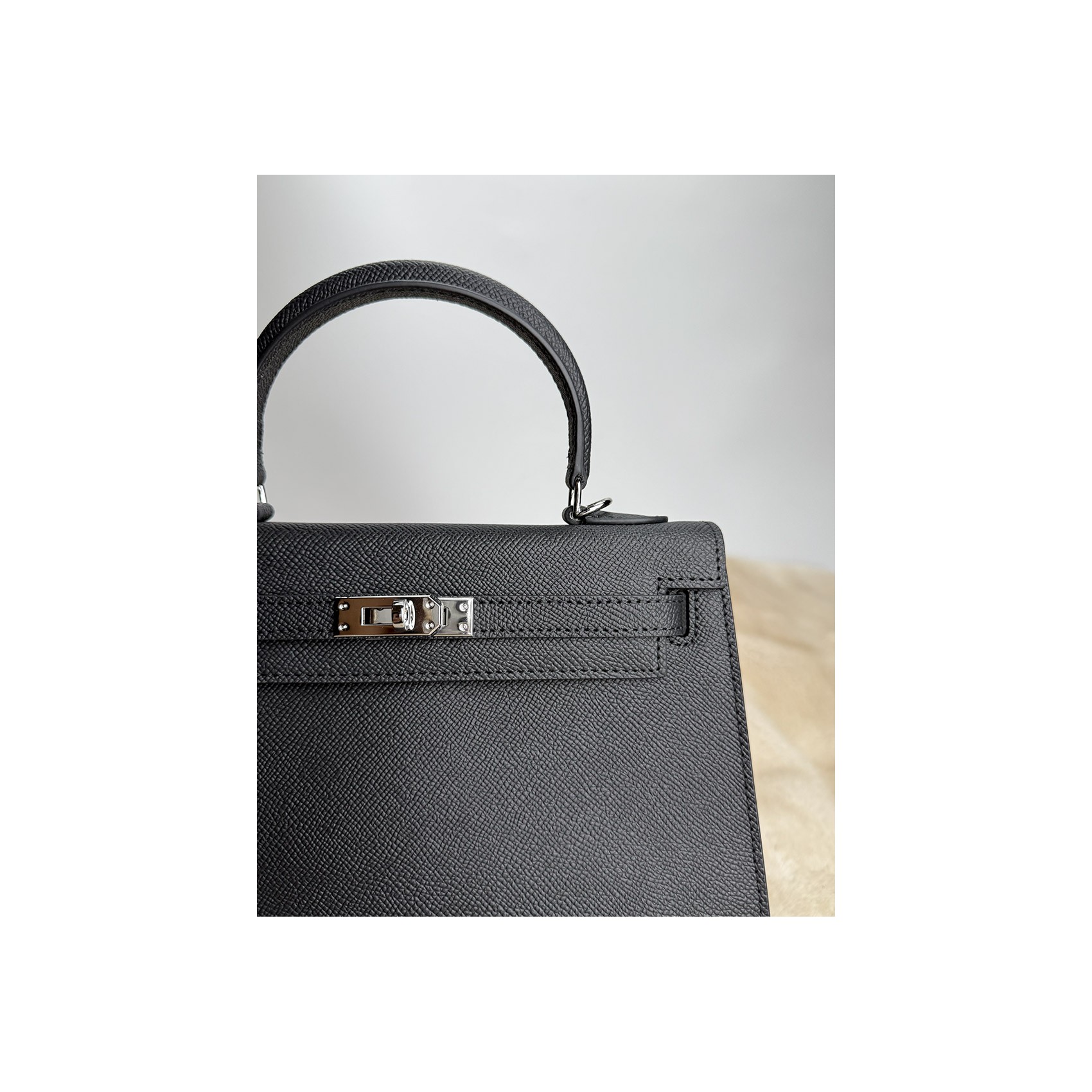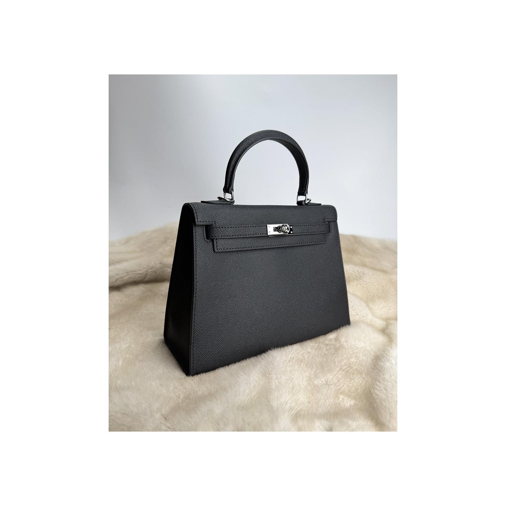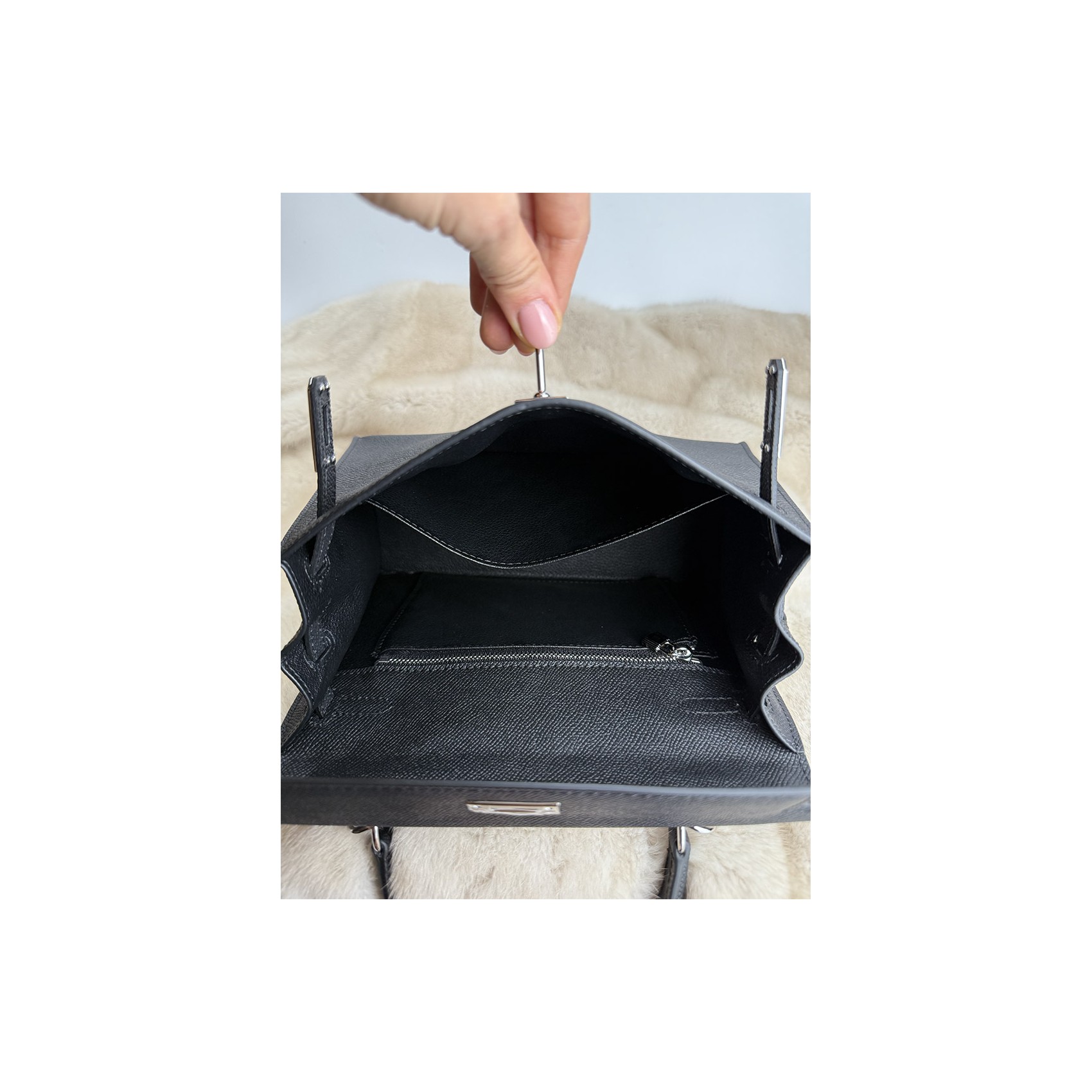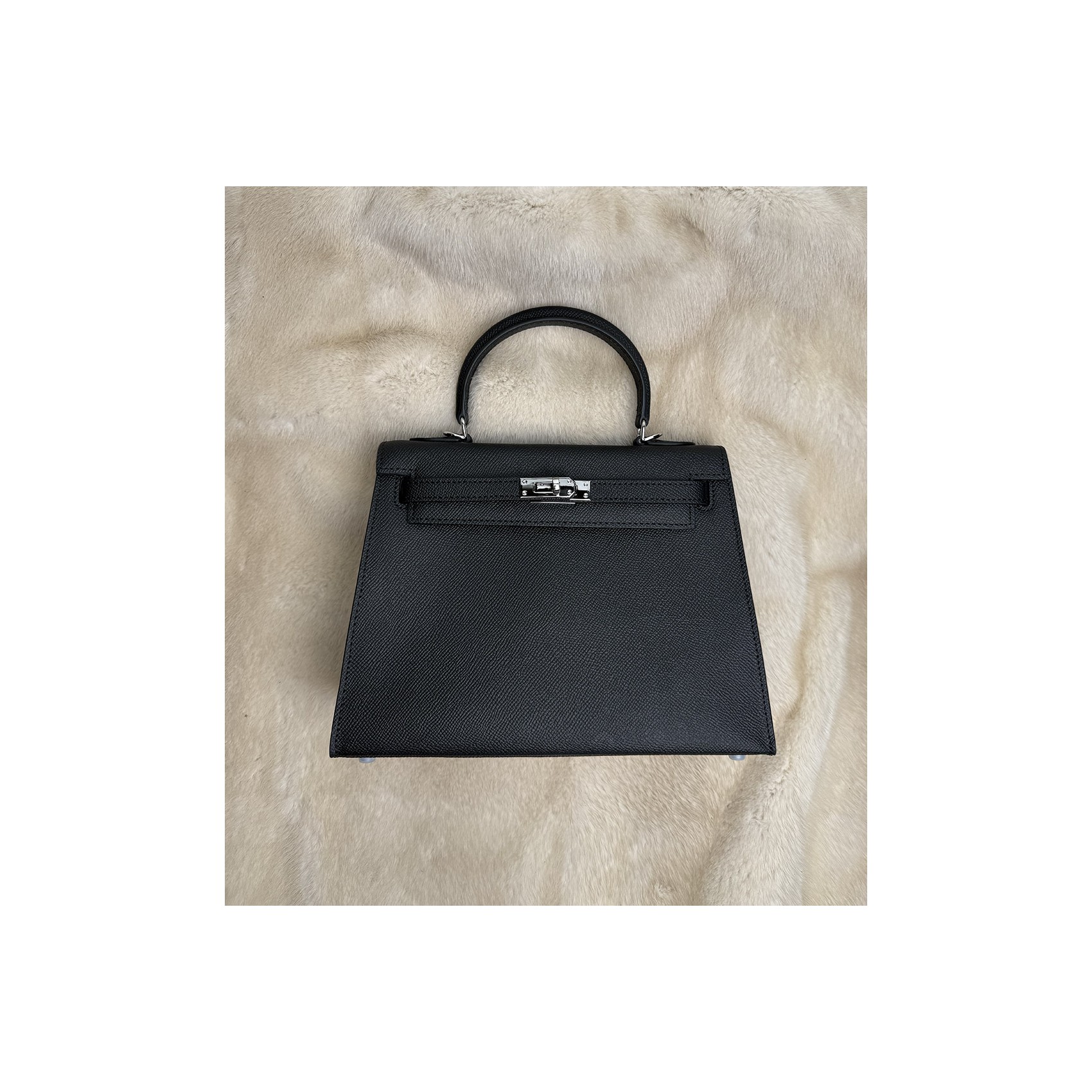 Женская сумка Kelly черного цвета выполнена из натуральной кожи с гладкой текстурой и отличается качественной отделкой. Элегантная модель дополнена серебряной фурнитурой, включая декоративный замок, который надёжно фиксирует клапан. Компактные размеры позволяют удобно разместить повседневные вещи, а внутренние карманы обеспечивают удобную организацию хранения, включая потайной карман на молнии для документов и мелочей. Сумка оснащена съёмным ремешком, что делает её универсальной: её можно носить в руке или на плече. Этот аксессуар гармонично впишется как в деловой, так и в повседневный образ, подчёркивая вкус и стиль владелицы.