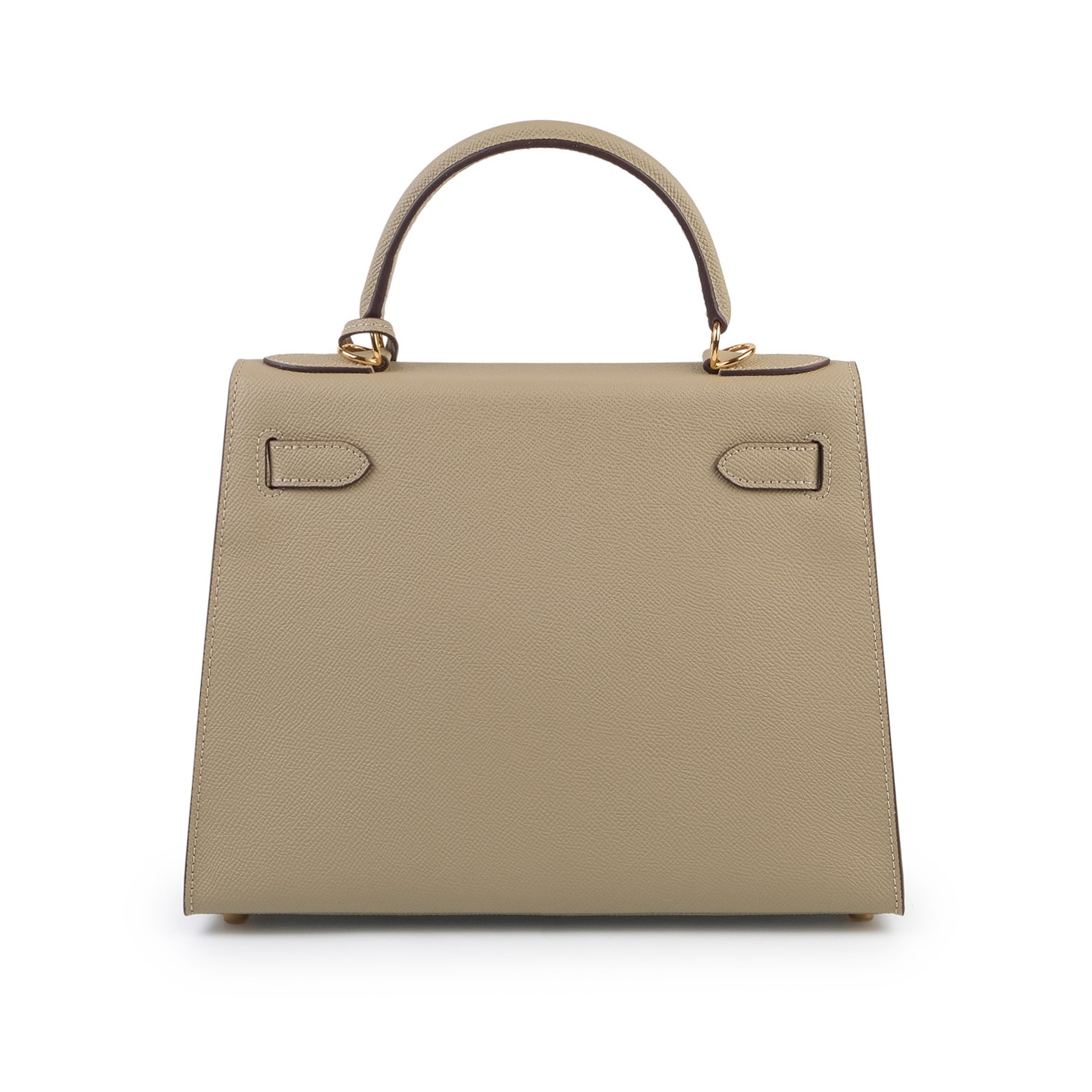 Женская сумка Kelly бежевого цвета выполнена из натуральной кожи с гладкой текстурой и отличается качественной отделкой. Элегантная модель дополнена золотистой фурнитурой, включая декоративный замок, который надёжно фиксирует клапан. Компактные размеры позволяют удобно разместить повседневные вещи, а внутренние карманы обеспечивают удобную организацию хранения, включая потайной карман на молнии для документов и мелочей. Сумка оснащена съёмным ремешком, что делает её универсальной: её можно носить в руке или на плече. Этот аксессуар гармонично впишется как в деловой, так и в повседневный образ, подчёркивая вкус и стиль владелицы.