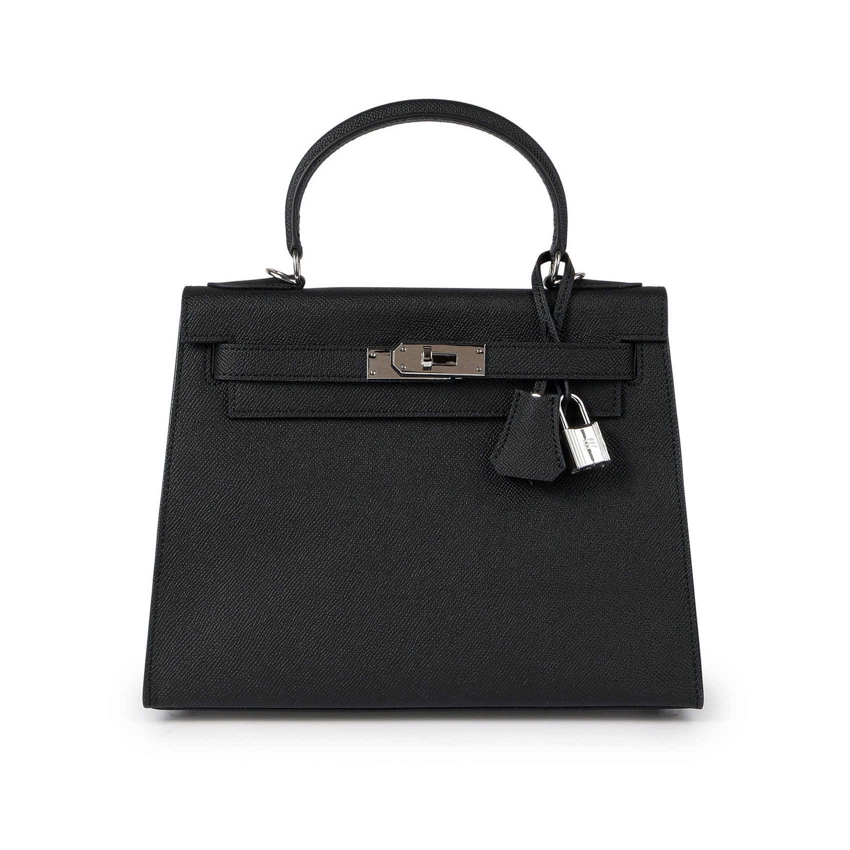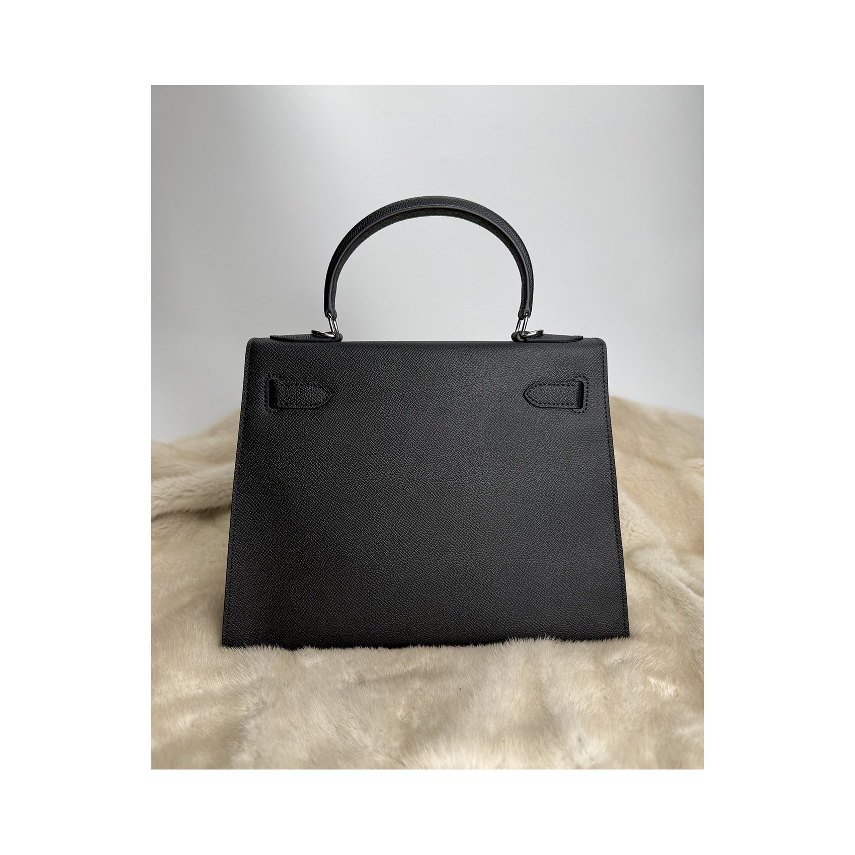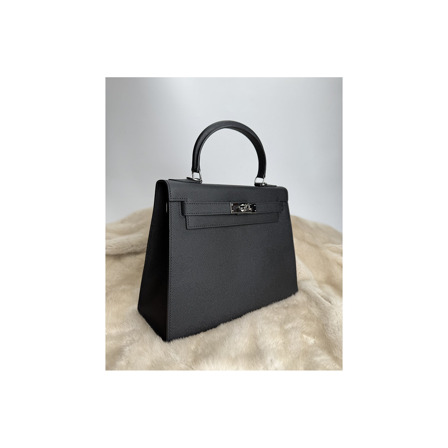 Женская сумка Kelly черного цвета выполнена из натуральной кожи с гладкой текстурой и отличается качественной отделкой. Элегантная модель дополнена серебряной фурнитурой, включая декоративный замок, который надёжно фиксирует клапан. Компактные размеры позволяют удобно разместить повседневные вещи, а внутренние карманы обеспечивают удобную организацию хранения, включая потайной карман на молнии для документов и мелочей. Сумка оснащена съёмным ремешком, что делает её универсальной: её можно носить в руке или на плече. Этот аксессуар гармонично впишется как в деловой, так и в повседневный образ, подчёркивая вкус и стиль владелицы.